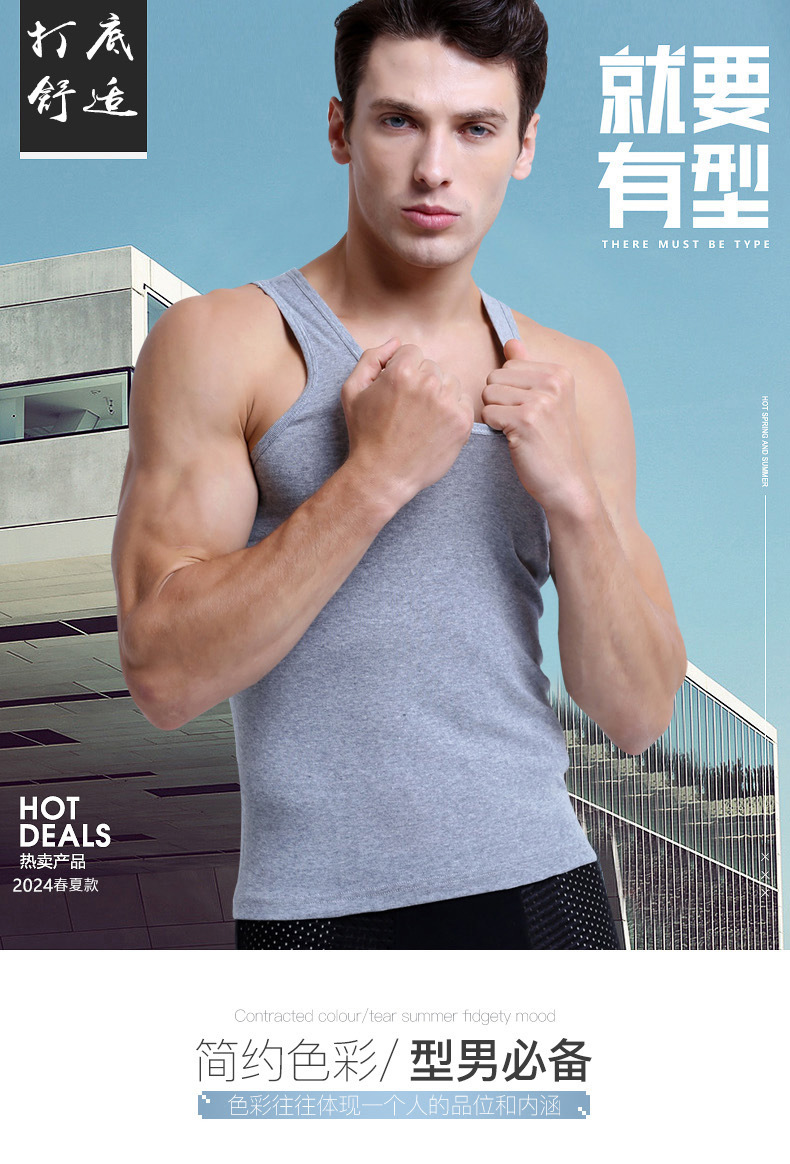 남성 순수 코튼 조끼 2024 여름 청소년 양복 조끼 러닝 피트니스 스포츠 민소매 티셔츠 남성 바닥 셔츠 국경스토어 가기