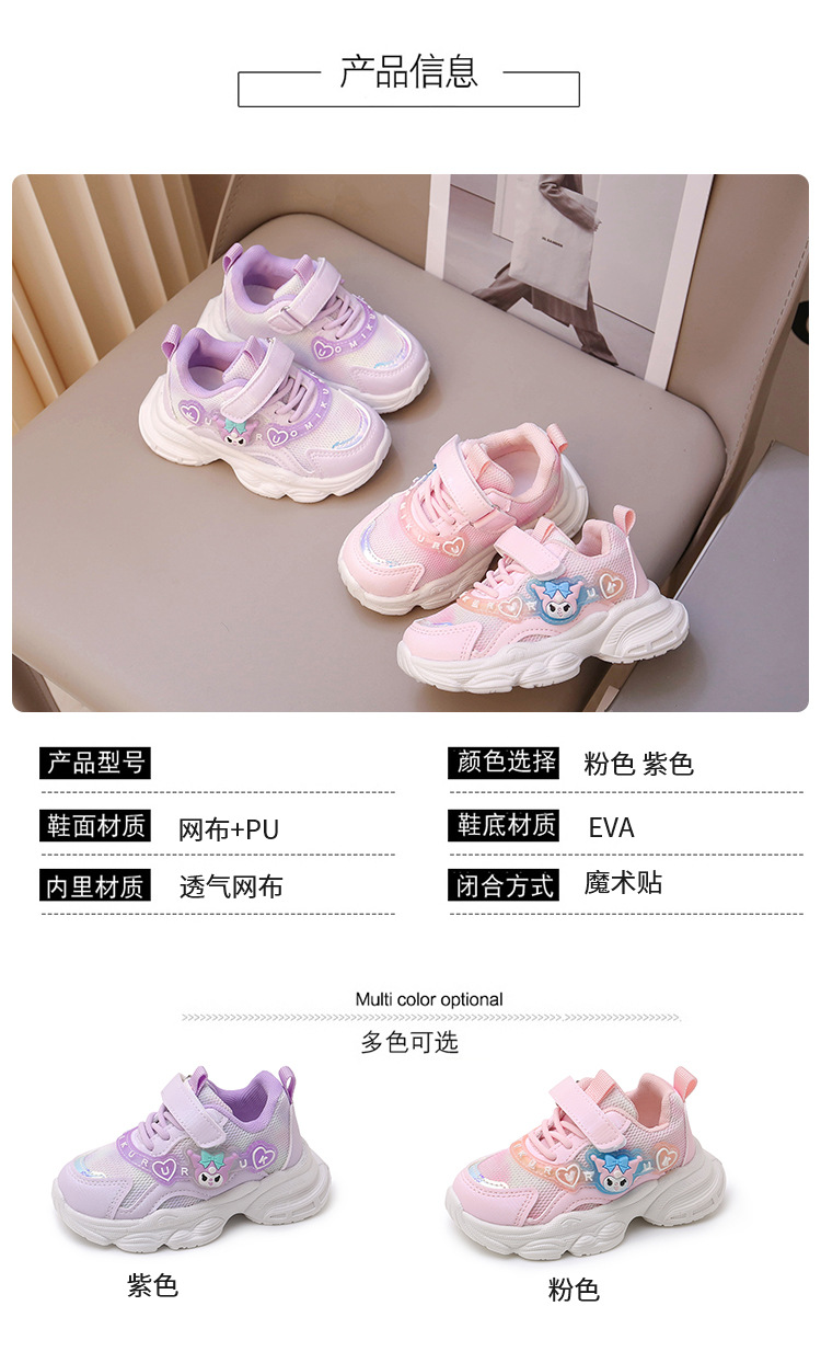 2024 봄과 가을 새로운 공주 신발 소녀 슈퍼 소프트 운동화 어린이 메쉬 신발 서양식 밝은 빛 부드러운 바닥 운동화 패션스토어 가기