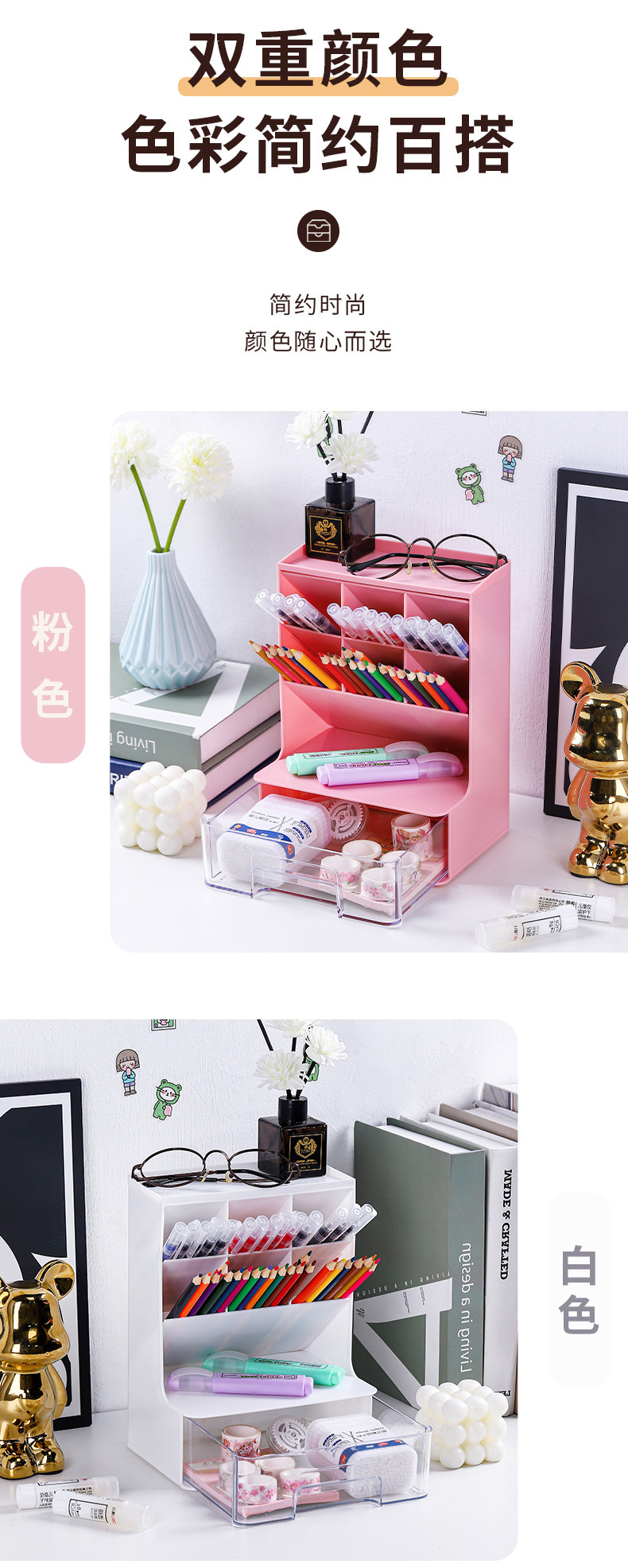 경사형 펜 홀더 데스크탑 잡화 책상 수납함 학생 및 어린이 문구류 수납함 기숙사 수납함