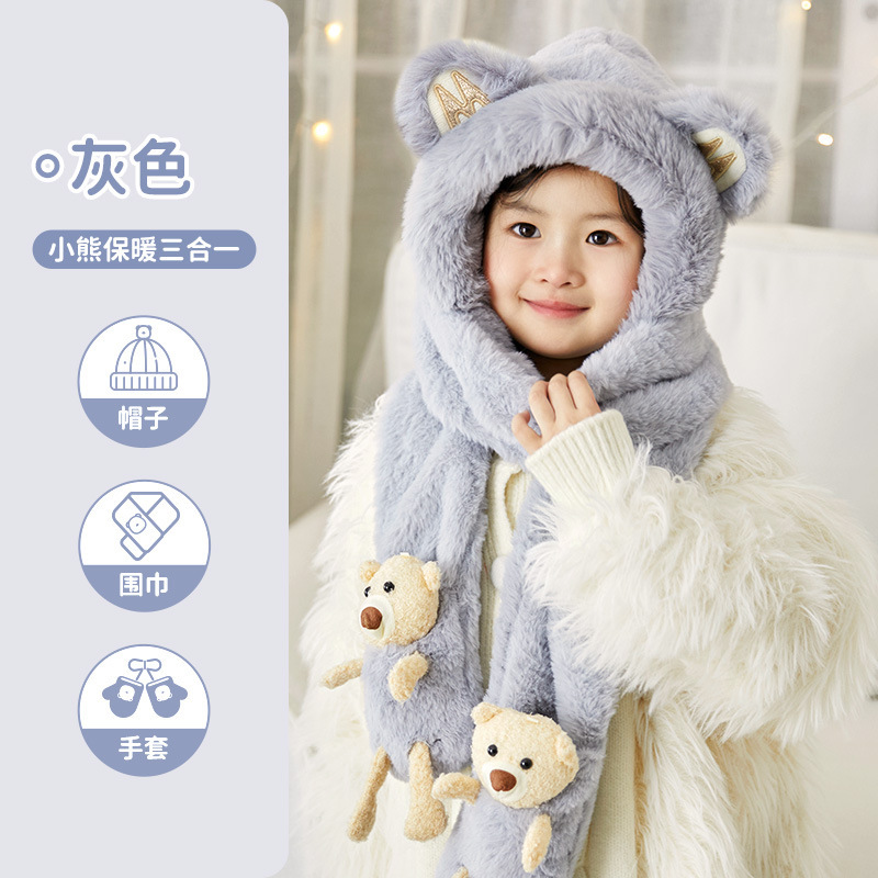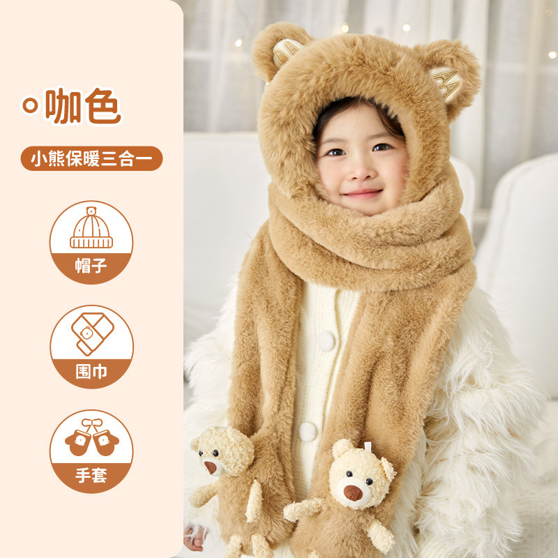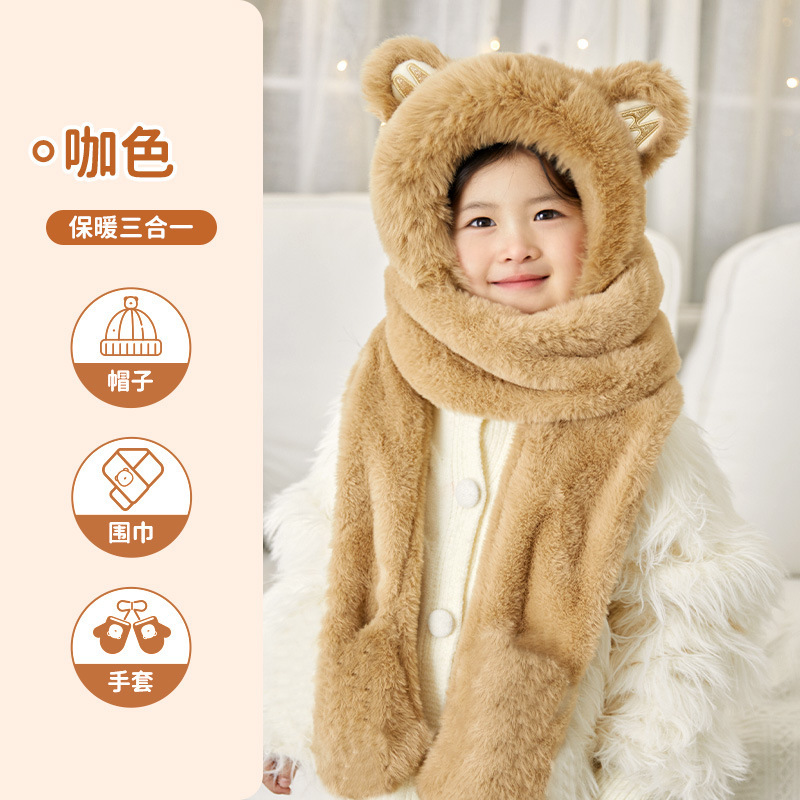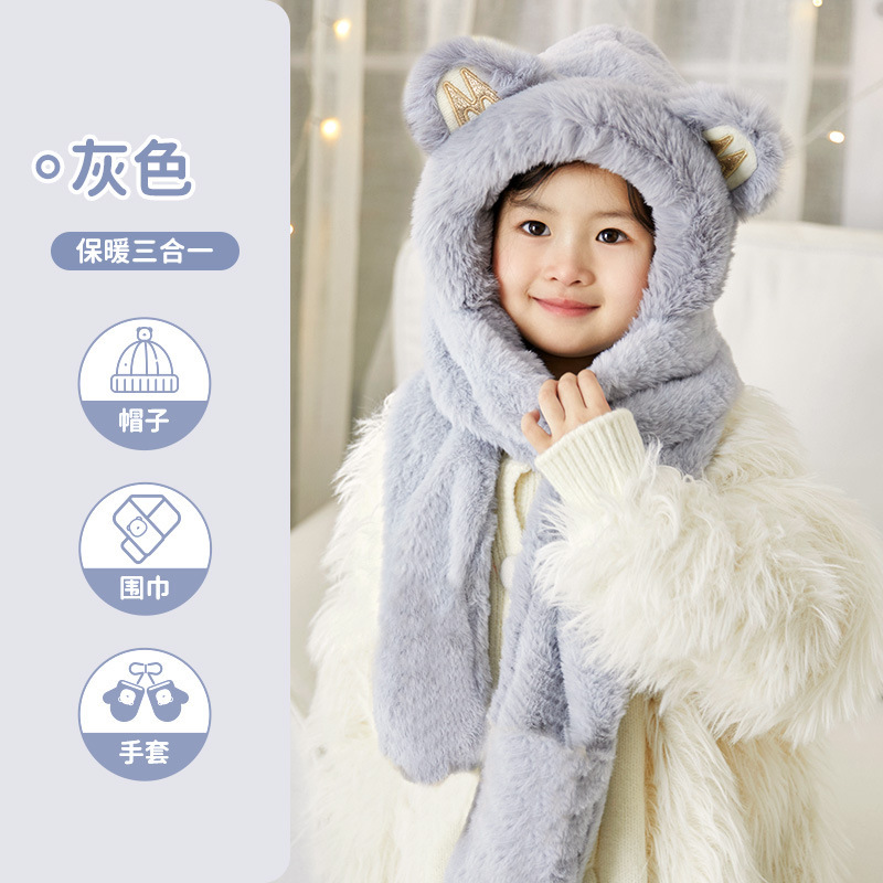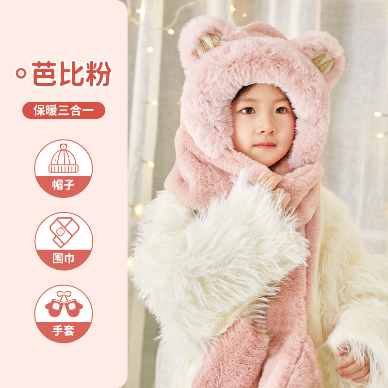 어린이 모자 가을과 겨울 봉제 장갑 스카프 3 인승 겨울 두껍게 한 소년 '과 소녀의 방풍 모자 3 피스 세트스토어 가기