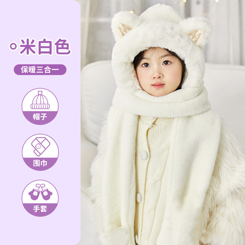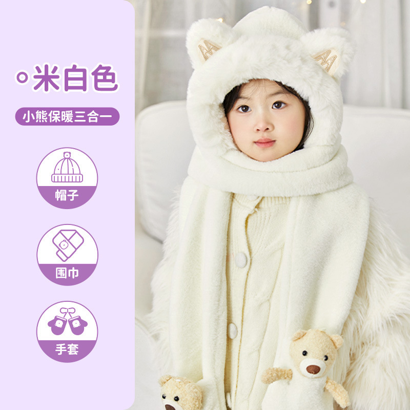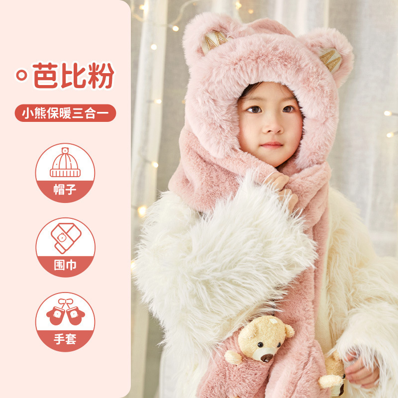 어린이 모자 가을과 겨울 봉제 장갑 스카프 3 인승 겨울 두껍게 한 소년 '과 소녀의 방풍 모자 3 피스 세트
