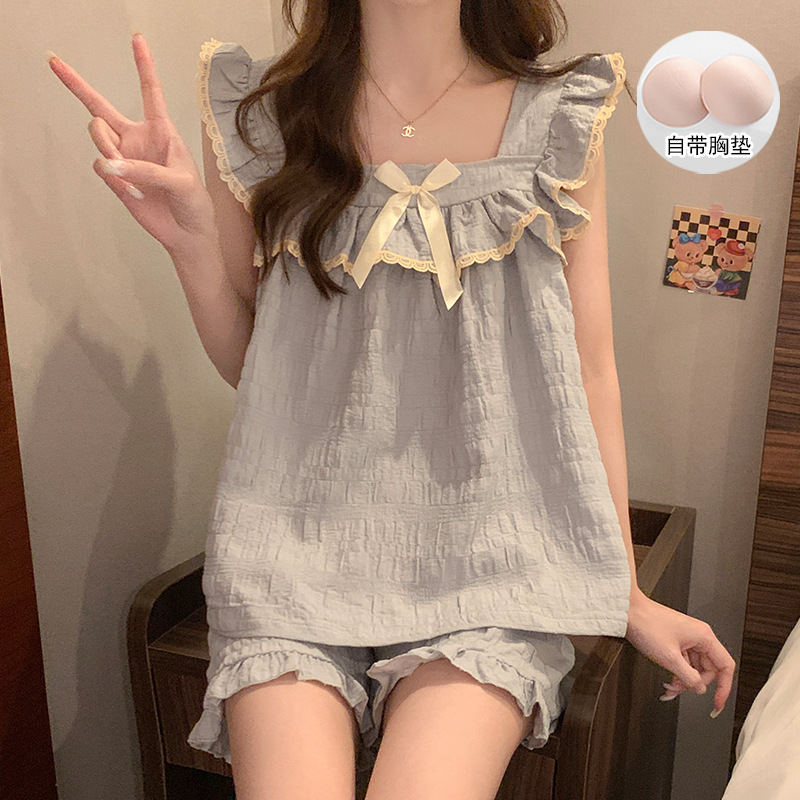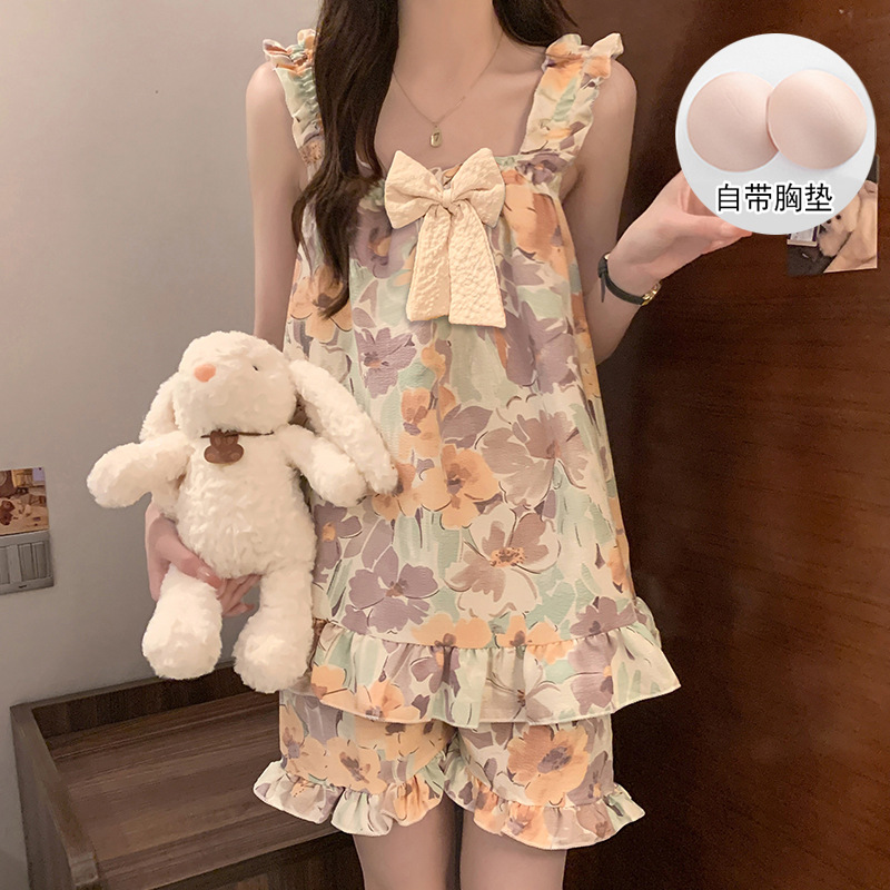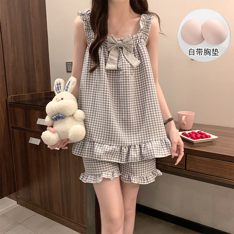 여자 여름 달콤하고 귀여운 슬링 가슴 패드 조끼 Nightdress 학생 얇은 바깥 옷을 입은 중간 길이의 원피스스토어 가기