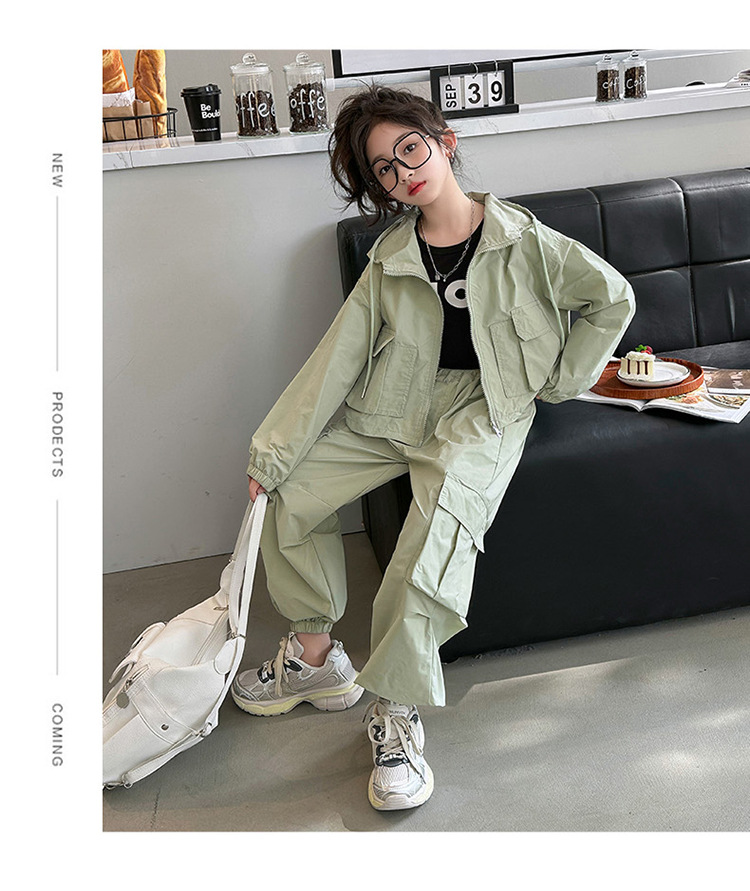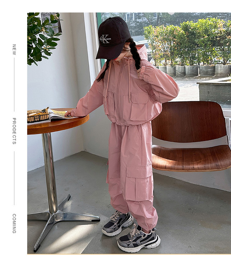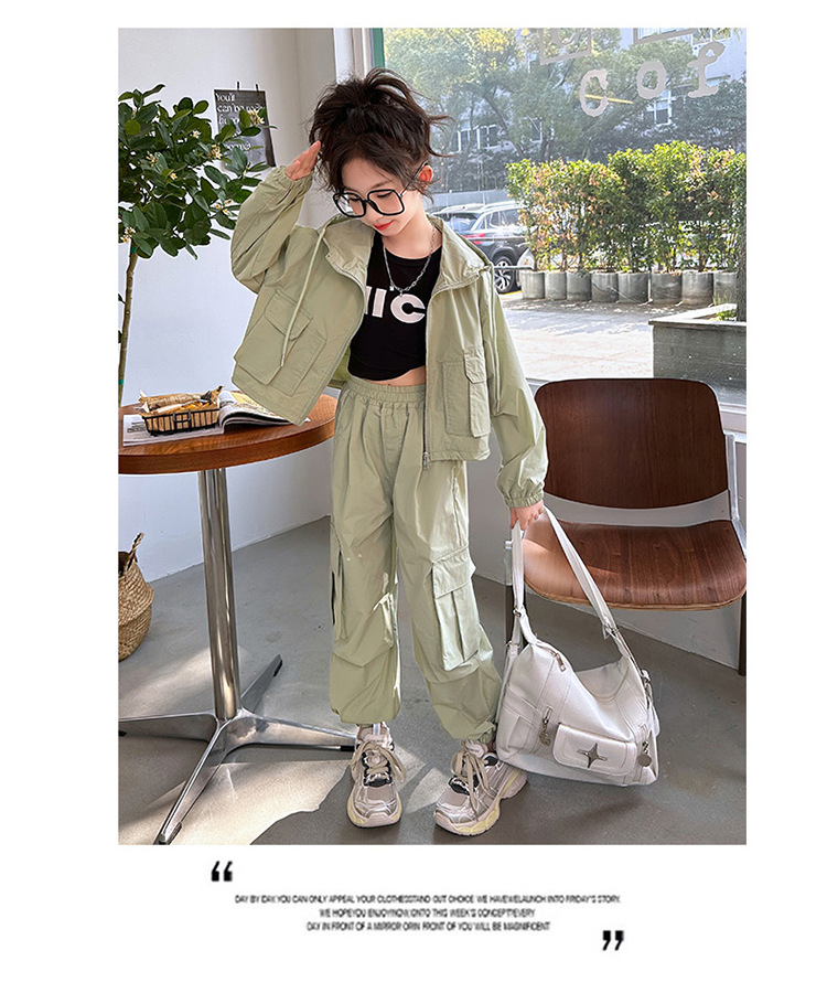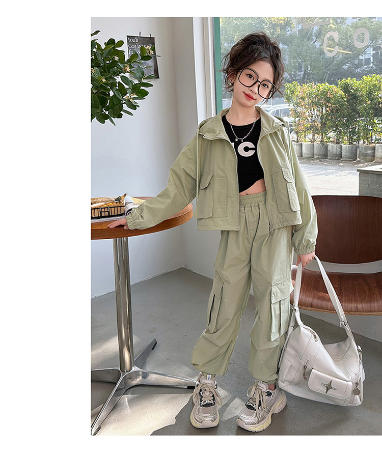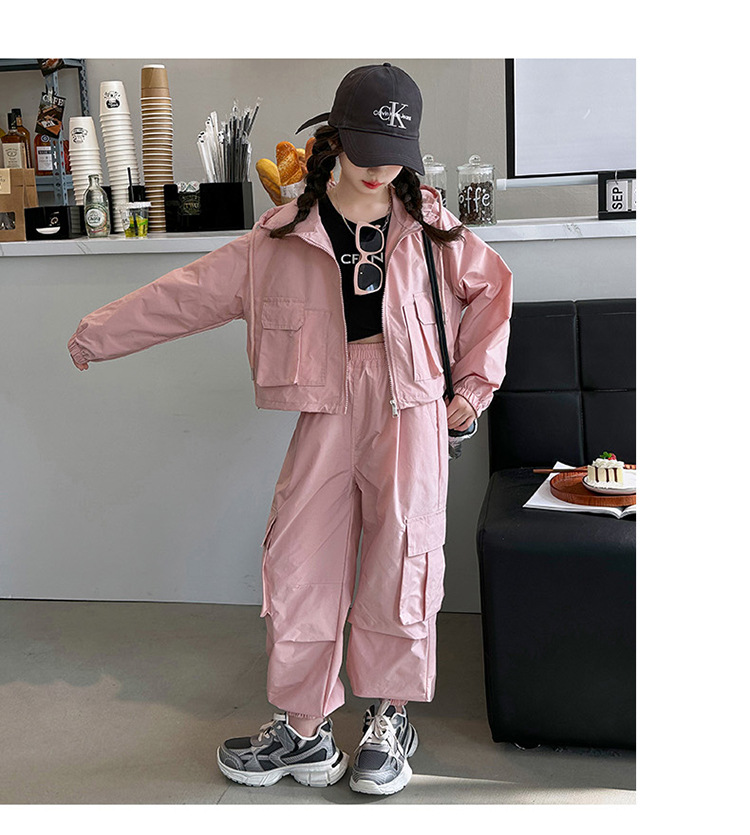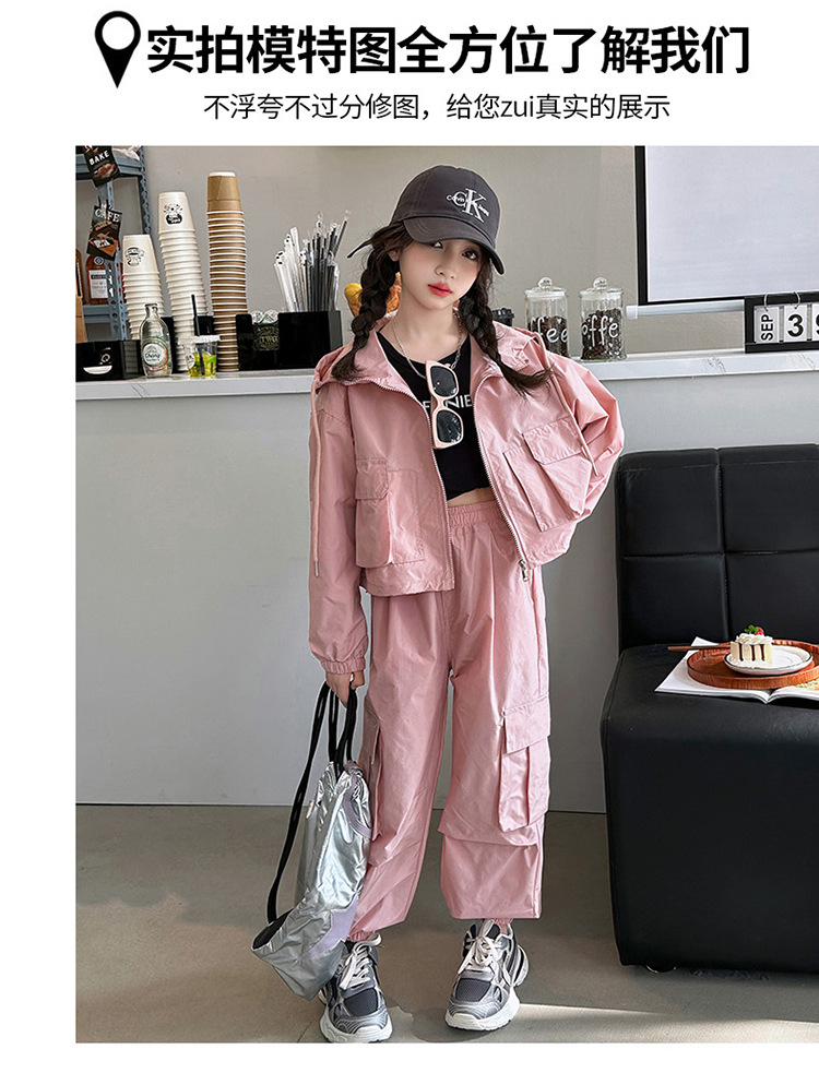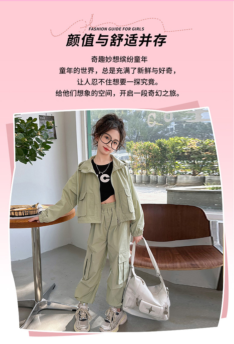 새로운 아이들의 세련된 봄 패션 코트 소녀의 봄 옷을 2024 봄과 가을 세트 소녀 바지스토어 가기