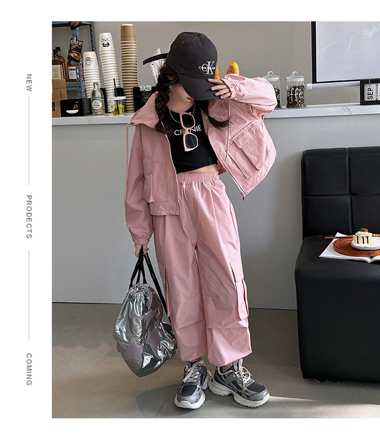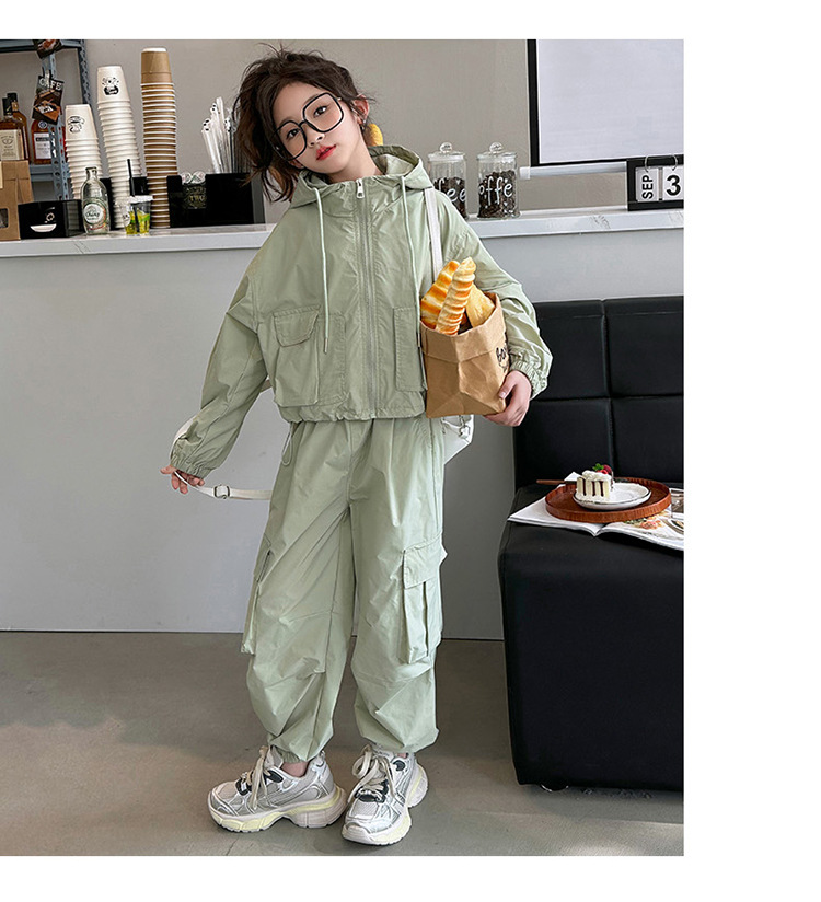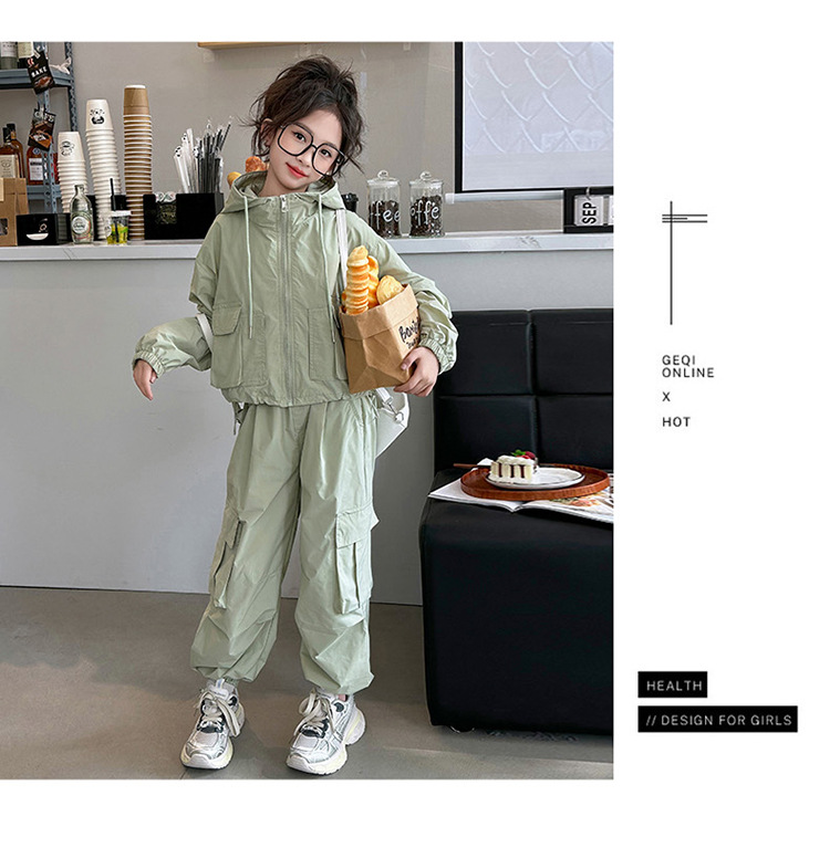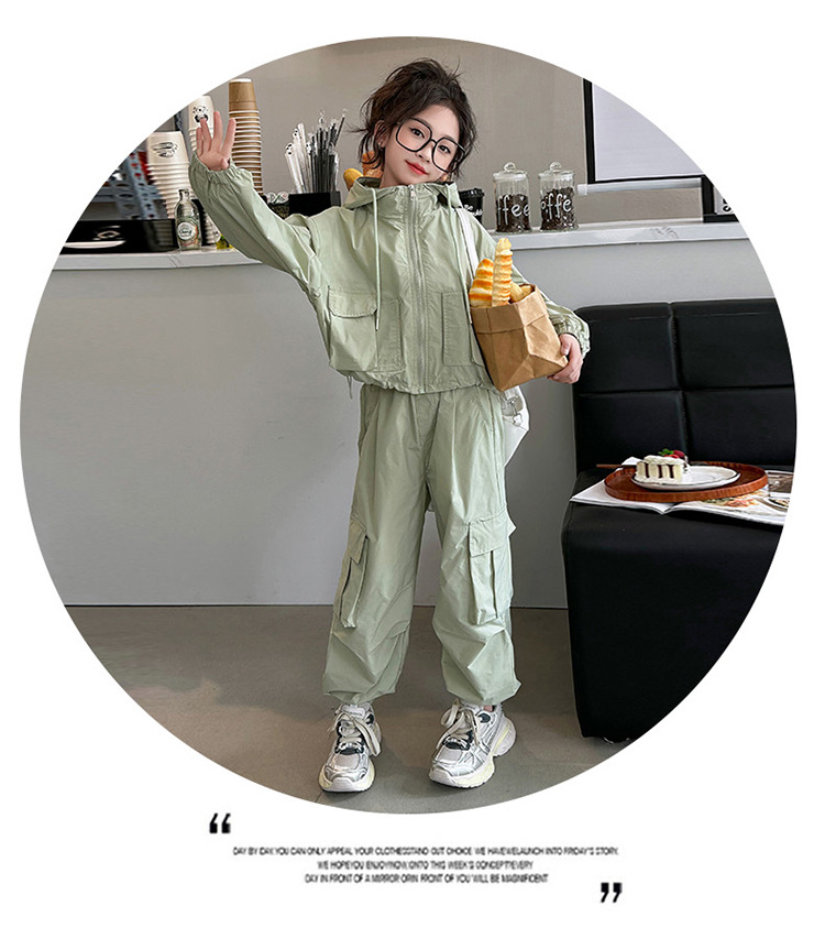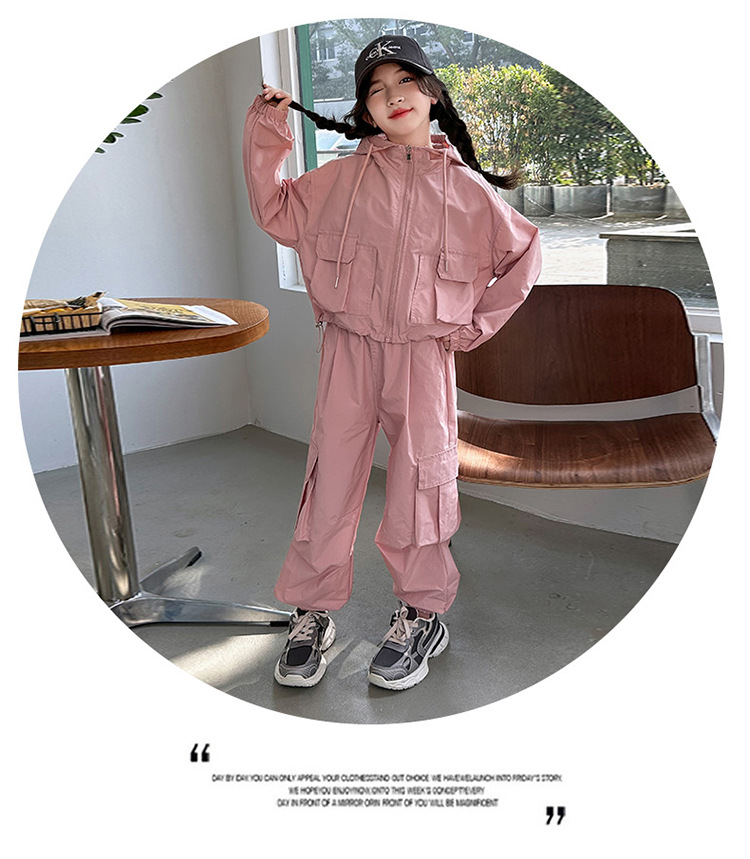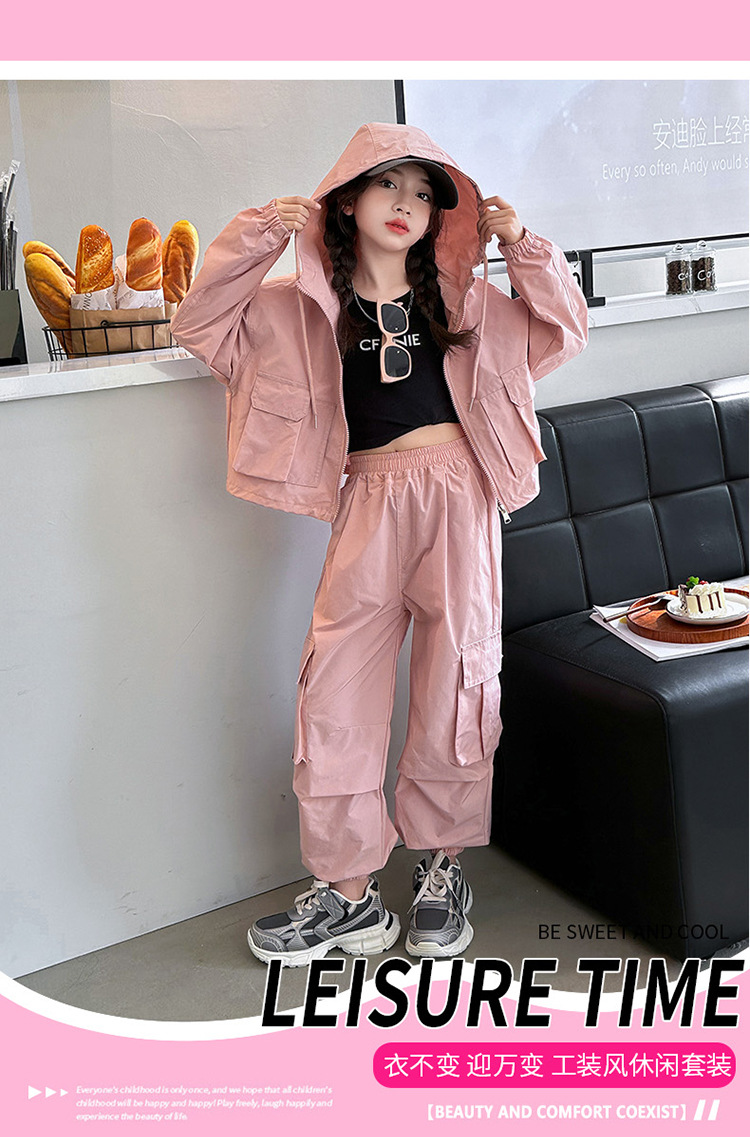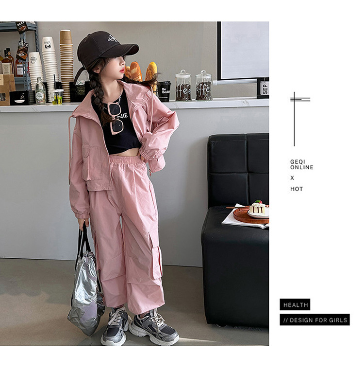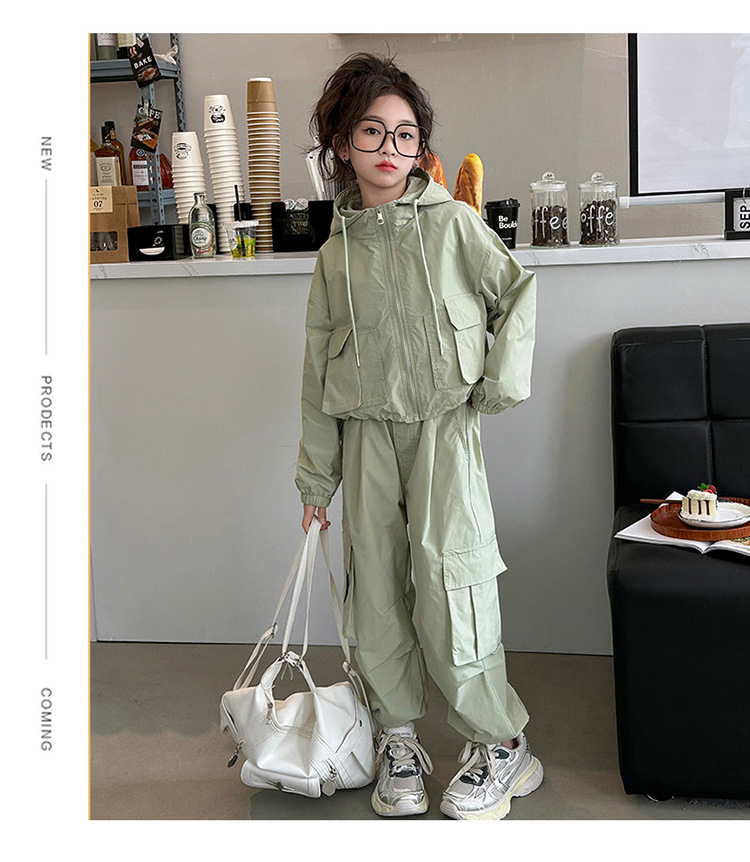새로운 아이들의 세련된 봄 패션 코트 소녀의 봄 옷을 2024 봄과 가을 세트 소녀 바지스토어 가기