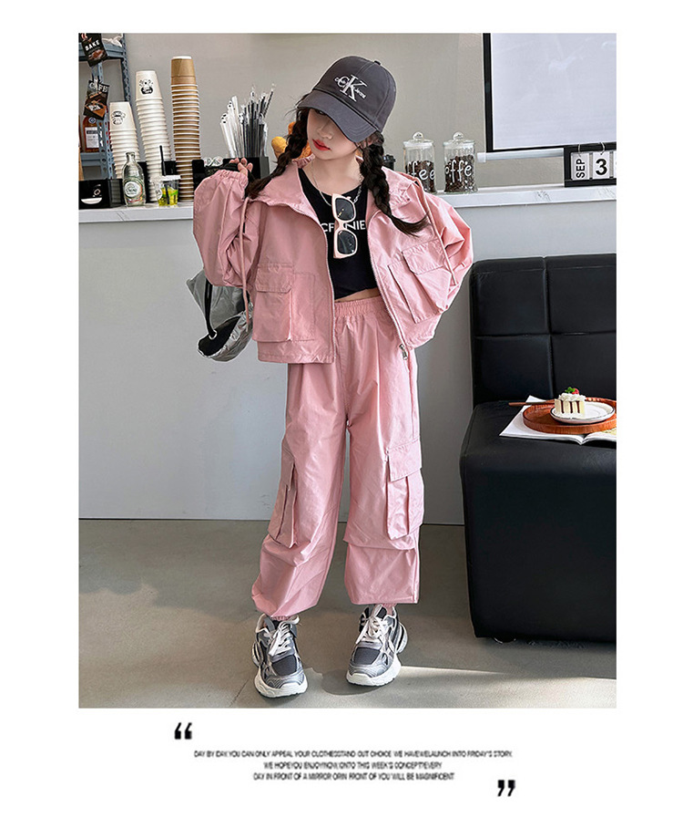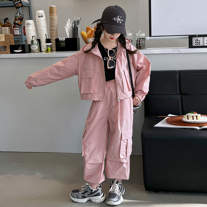 새로운 아이들의 세련된 봄 패션 코트 소녀의 봄 옷을 2024 봄과 가을 세트 소녀 바지
