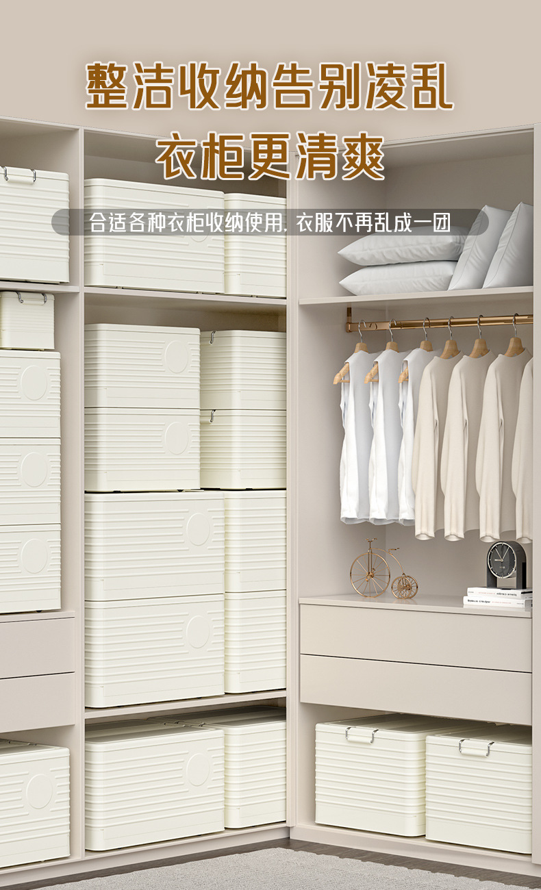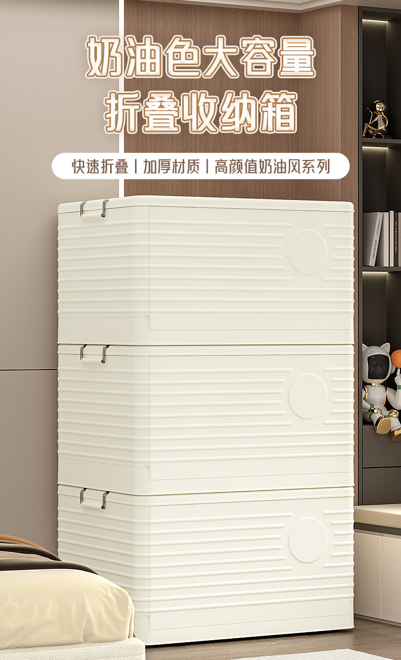 저장 상자 플라스틱 두꺼운 여분의 대형 크림 스타일 저장 상자 옷 장난감 잡화 저장 상자 접이식 보관 캐비닛