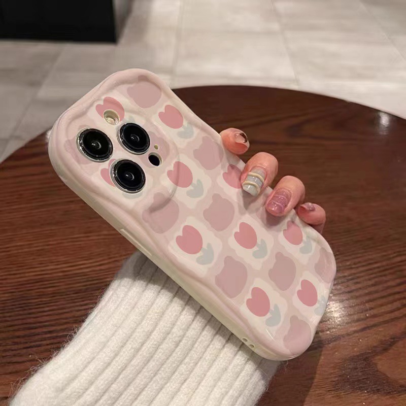 튤립 체크무늬 애플 16플러스 걸리시 17프로맥스 휴대폰 케이스 아이폰15프로 낙하방지 14
