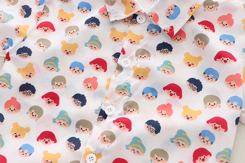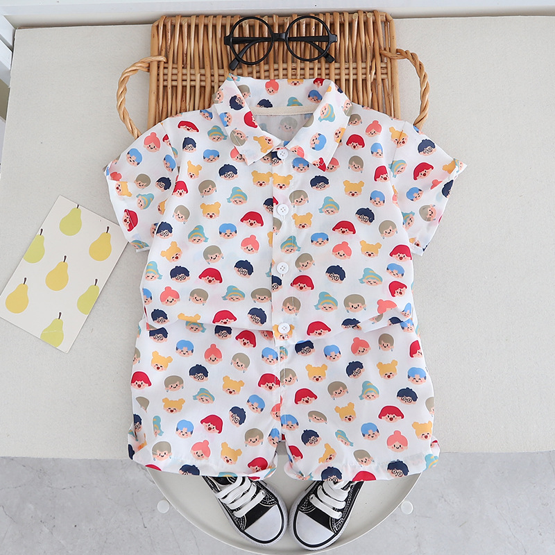 어린이 셔츠 소년의 여름 반팔 인쇄 패션 소년 튀김 거리 꽃 셔츠 서양식 홍콩 스타일 남성 보물 휴일 세트