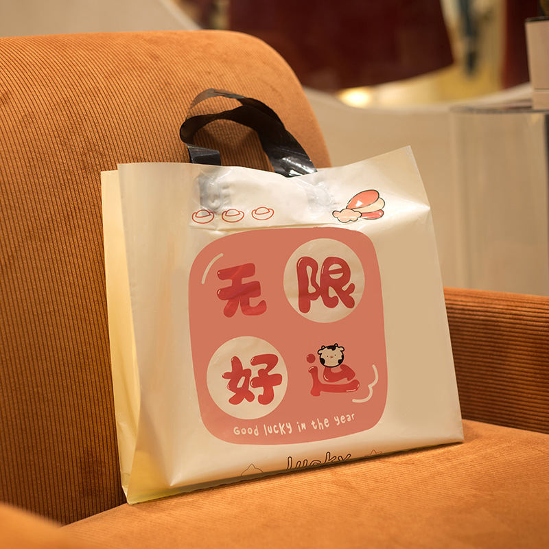 PE 휴대용 플라스틱 쇼핑백, 어린이 장난감 가게 포장백, 로고 인쇄된 손잡이가 있는 가방, 재고 도매스토어 가기