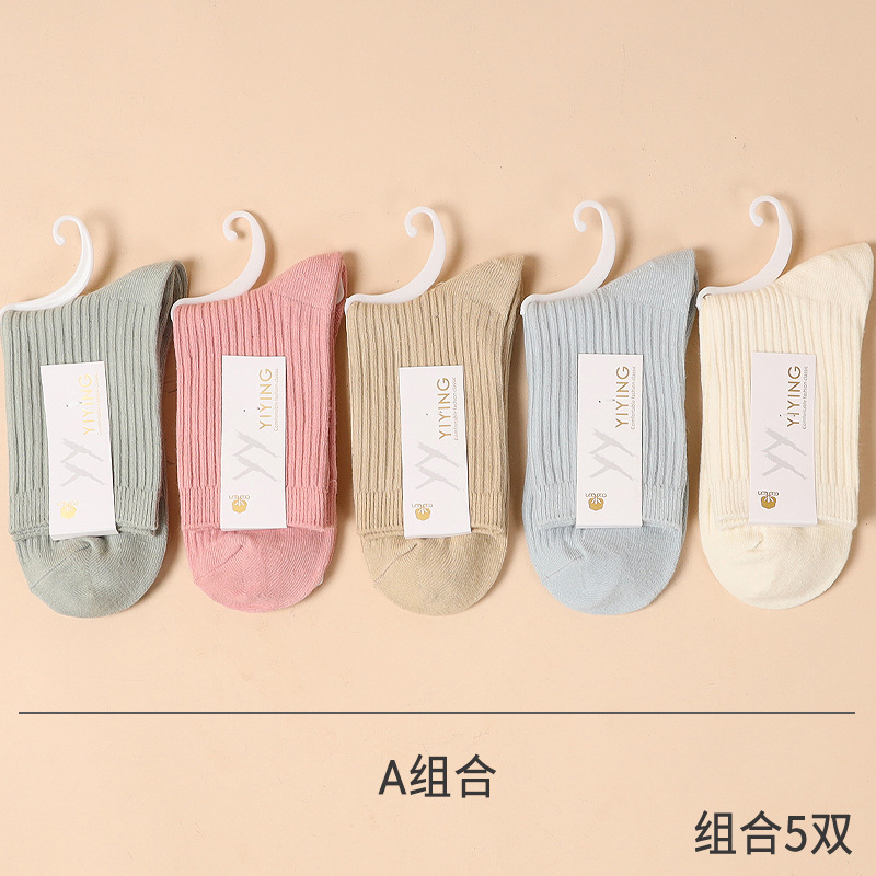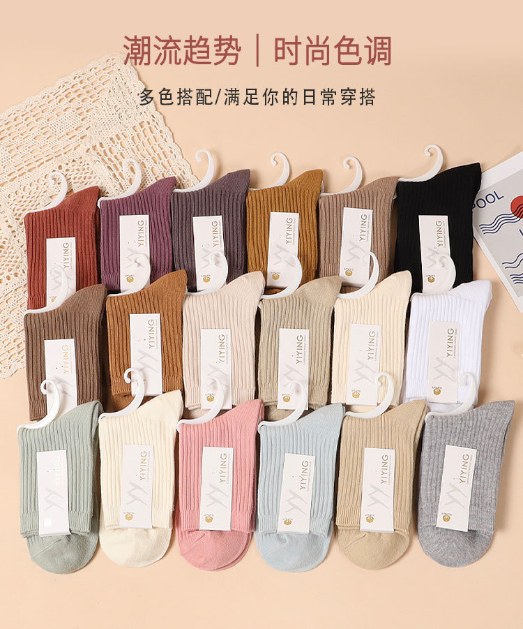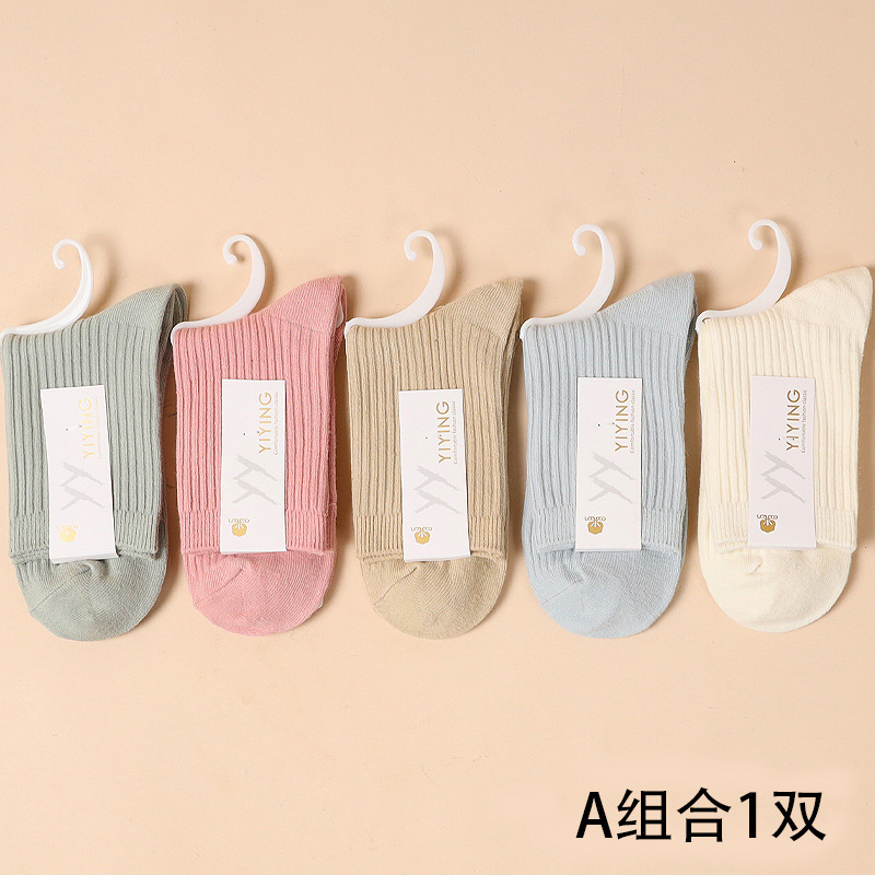 캔디 컬러 양말 여성용 봄 가을 순면 땀 흡수 방취 세로 줄무늬 중목 양말 상점 동일 스타일 가을 겨울스토어 가기