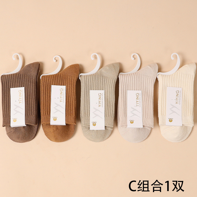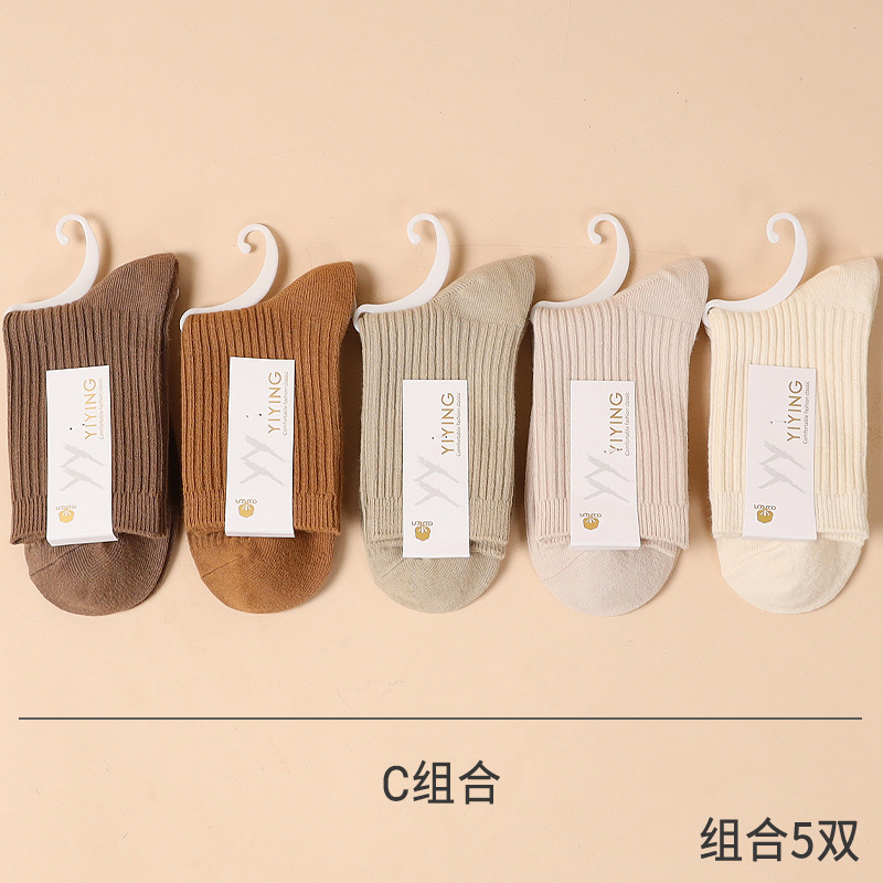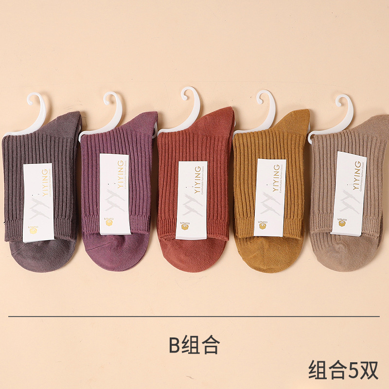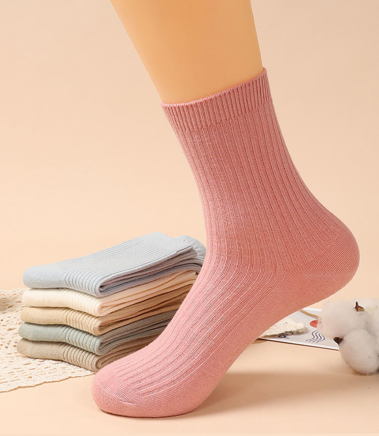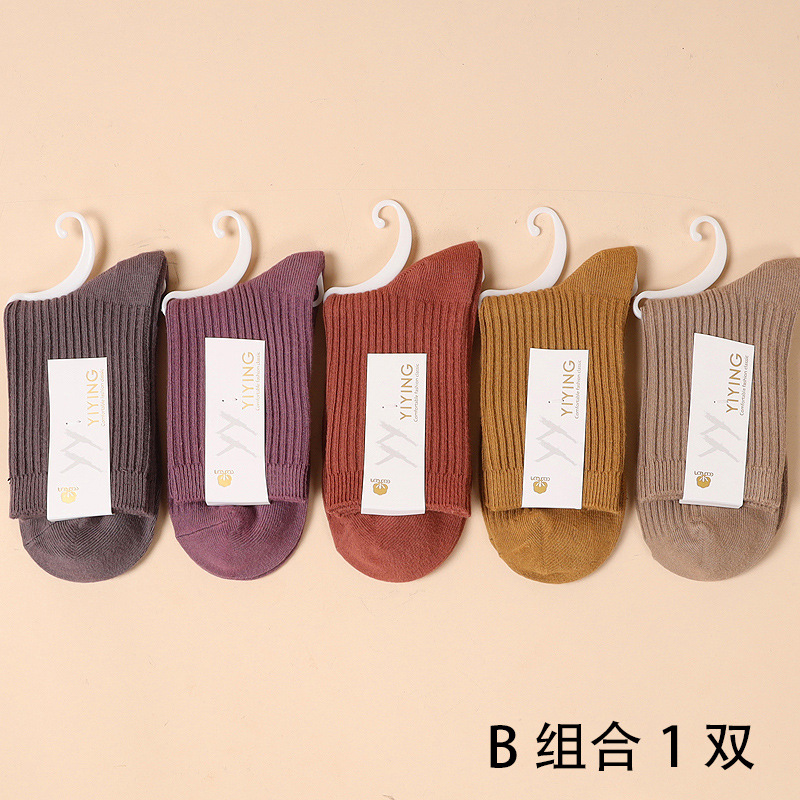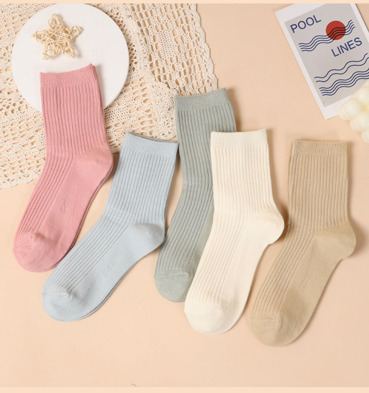 캔디 컬러 양말 여성용 봄 가을 순면 땀 흡수 방취 세로 줄무늬 중목 양말 상점 동일 스타일 가을 겨울