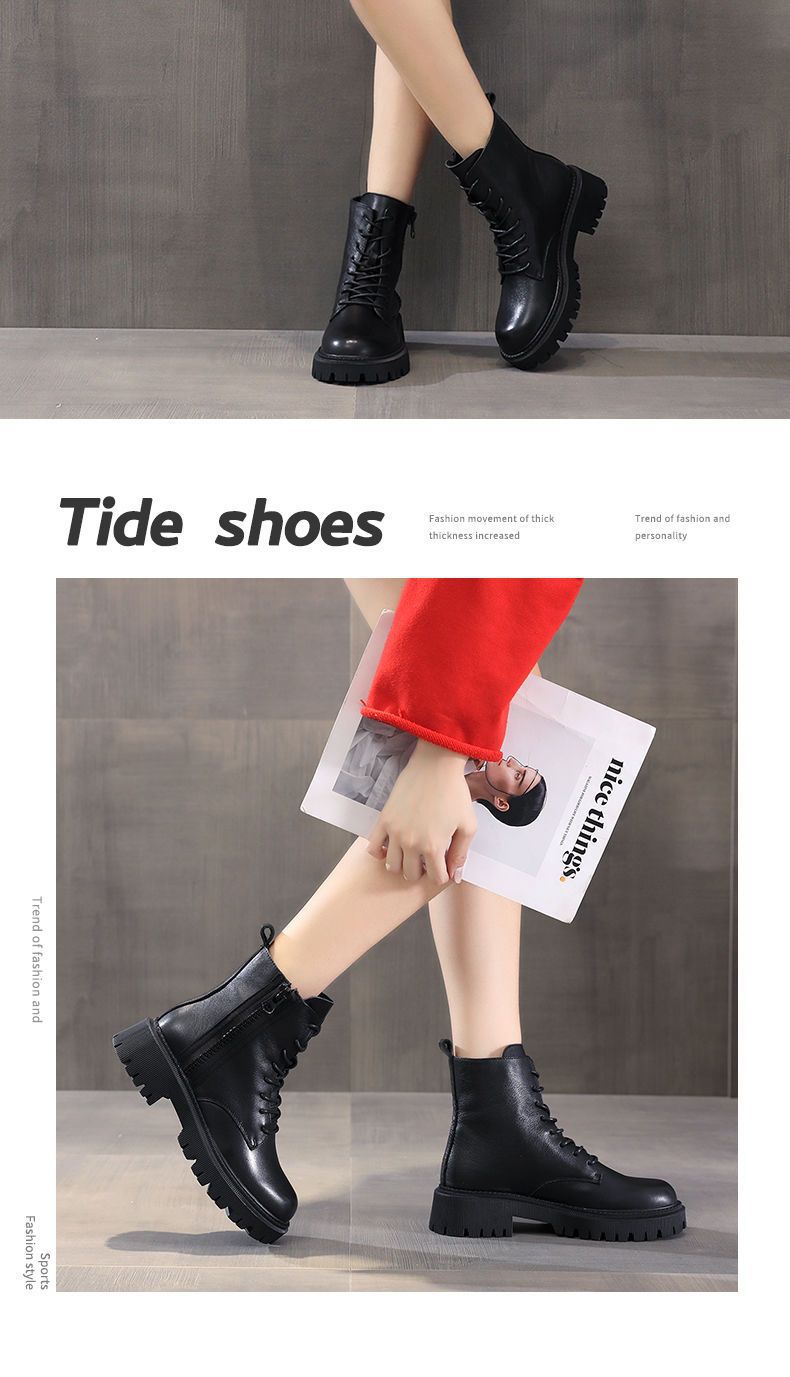 마틴 부츠 여성 영국 스타일 2024 새로운 가을, 겨울 두꺼운 밑창 다목적 짧은 부츠 플러스 벨벳 짧은 부츠 ins 트렌드스토어 가기