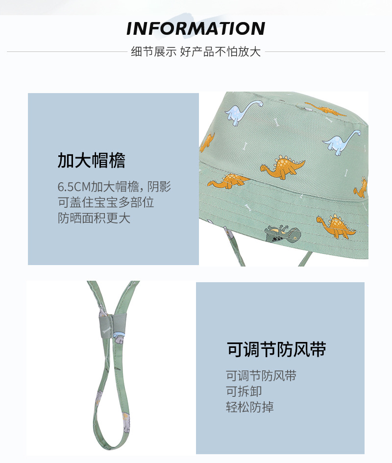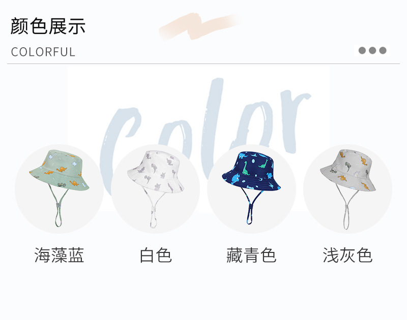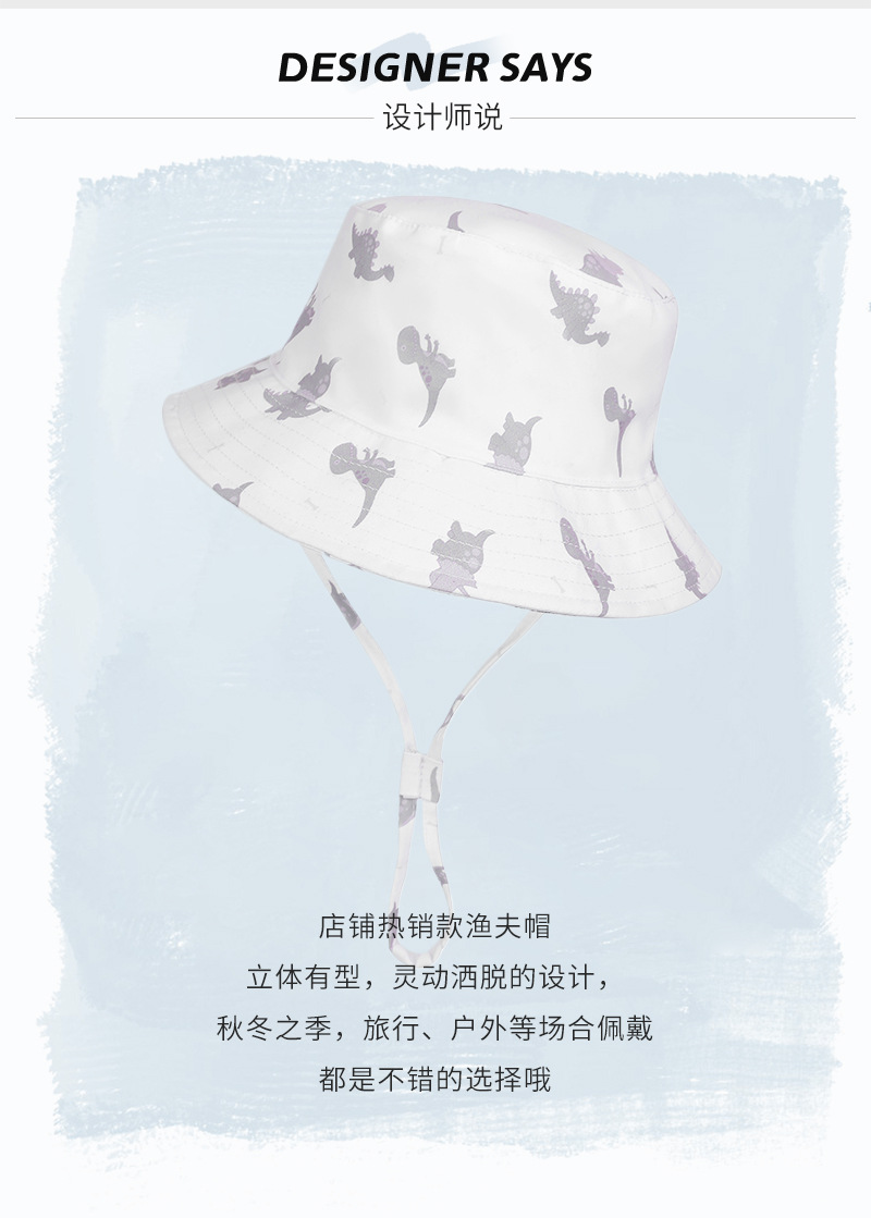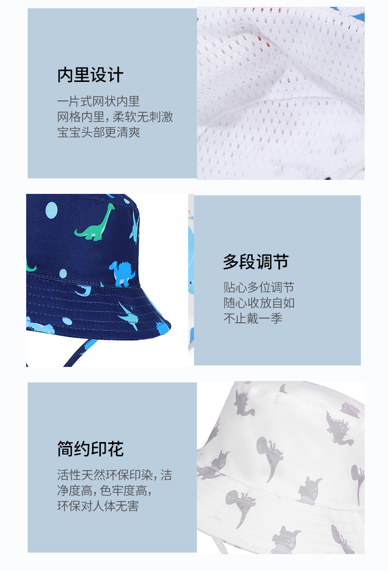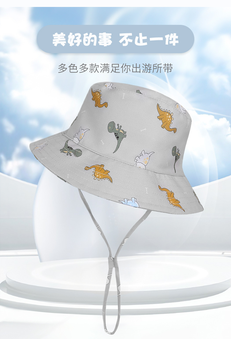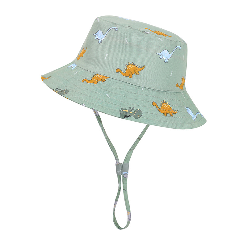 2024 봄과 가을 새로운 어린이 조절 어부 모자 아기 태양 모자 작은 공룡 패턴 방풍 태양 모자
