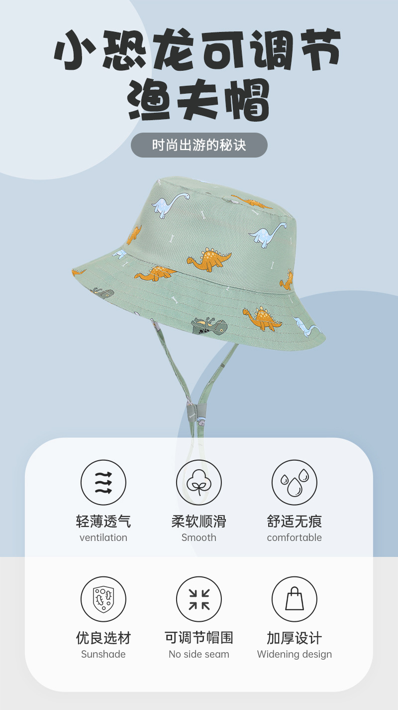 2024 봄과 가을 새로운 어린이 조절 어부 모자 아기 태양 모자 작은 공룡 패턴 방풍 태양 모자스토어 가기
