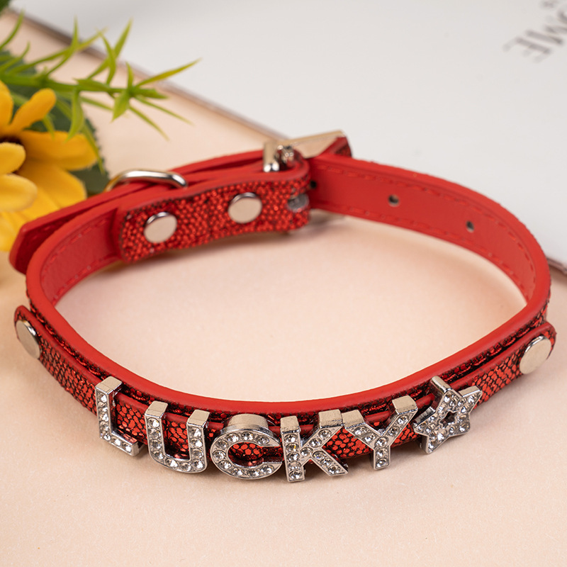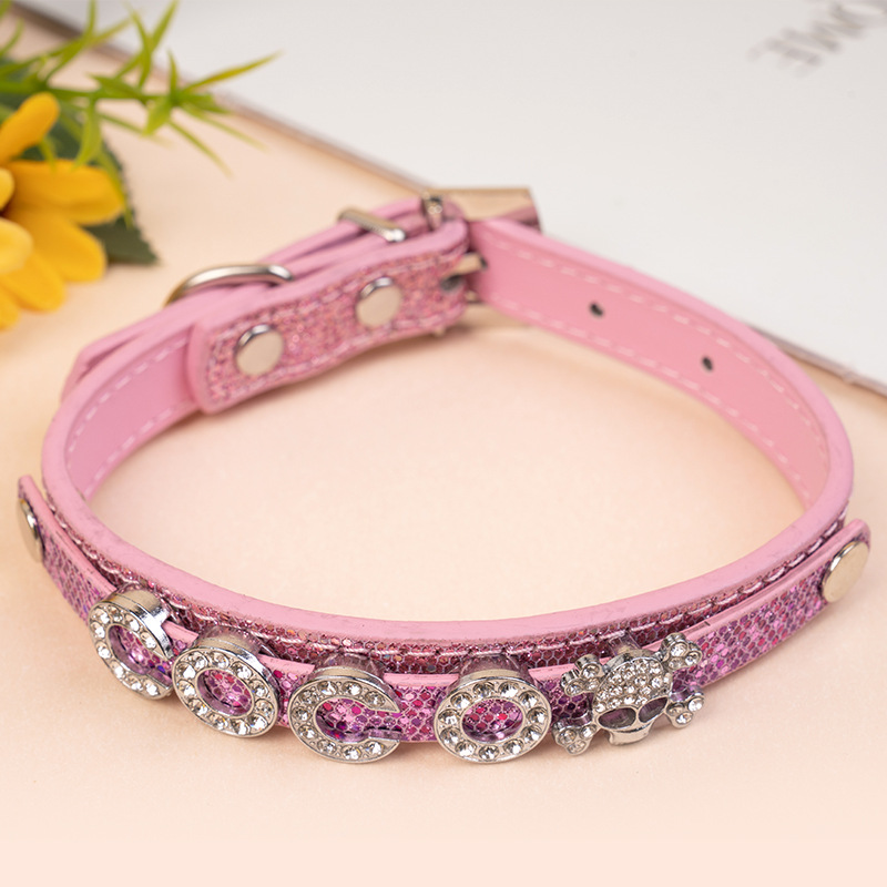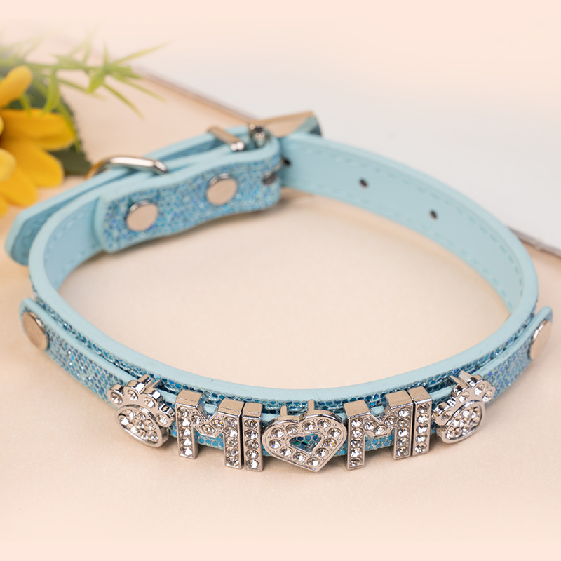 엄선된 애완동물 목걸이 DIY 반짝이 PU 소재 가죽 장식 고양이 목걸이 컬러풀 발광 목걸이 강아지 목걸이스토어 가기