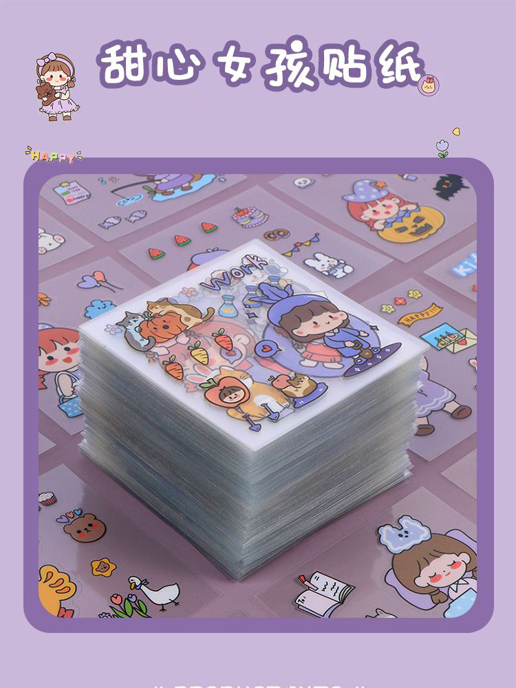 저널 스티커 세트 애완 동물 방수 투명 그물 빨간 어린이 소녀 만화 귀여운 붙여 넣기 물 컵 DIY 작은 스티커스토어 가기