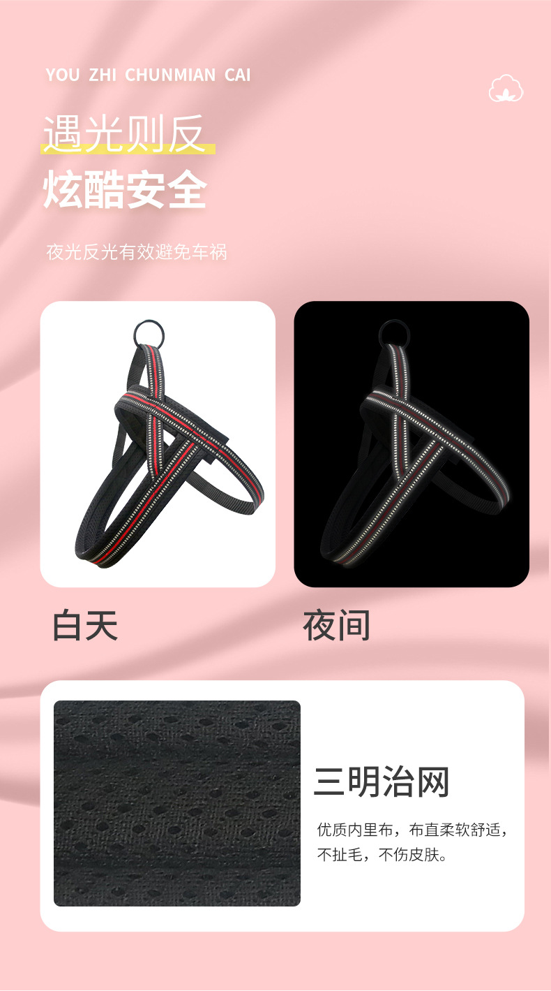 공장 직판 강아지 목줄 가슴끈 안장형 조끼형 반사 통기성 소형 중형 대형견 안전벨트스토어 가기