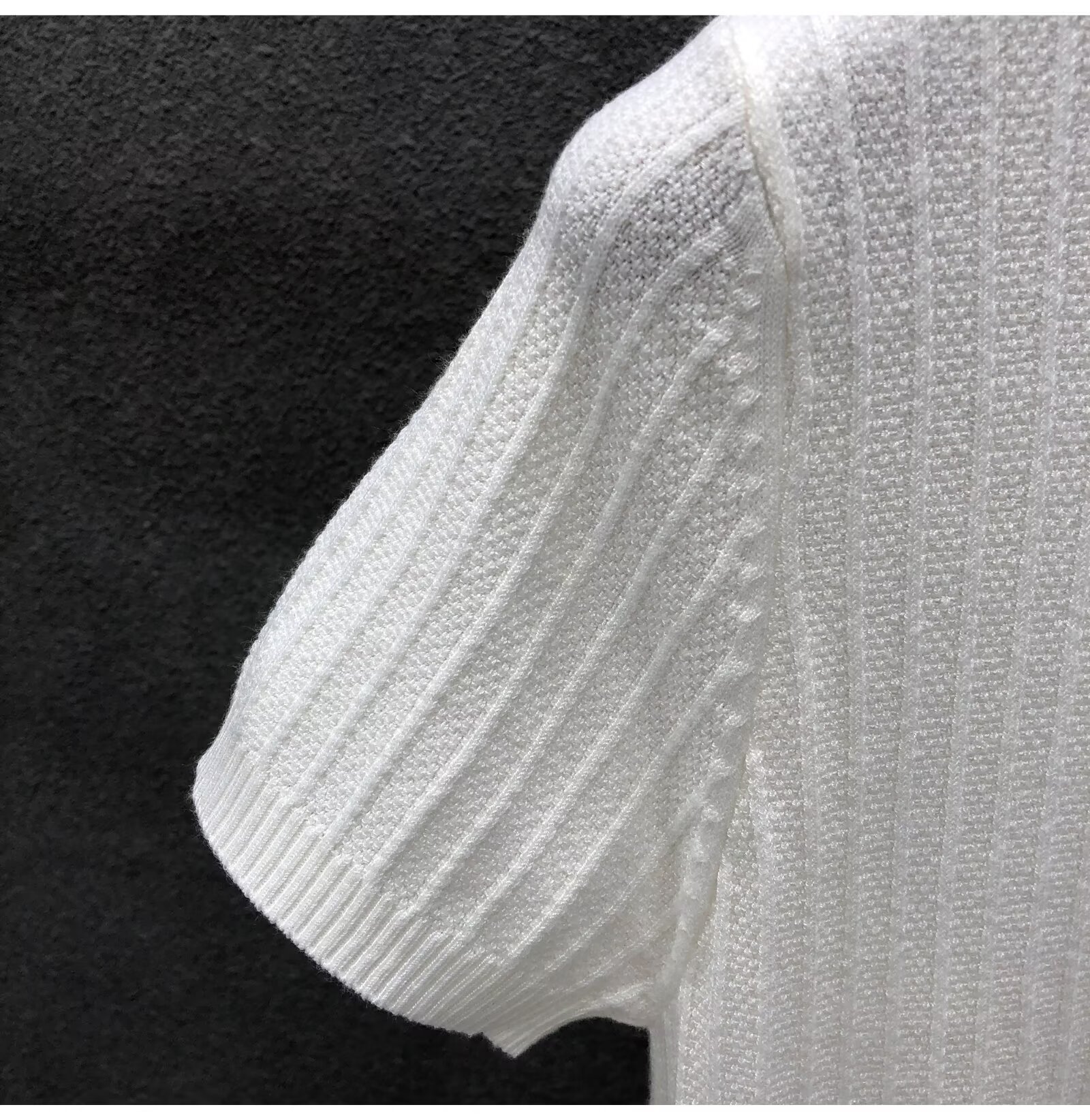 고급 다이아몬드 모양의 격자 무늬 니트 반팔 스웨터 남성용 화이트 이너 티셔츠 패션 브랜드 라운드 넥 반소매 스웨터 남성스토어 가기