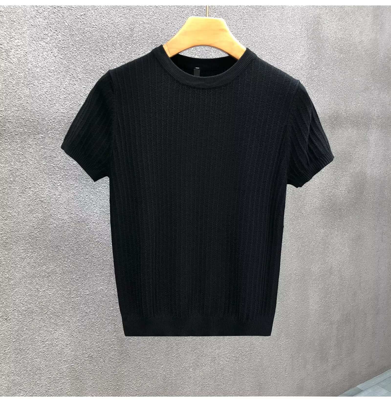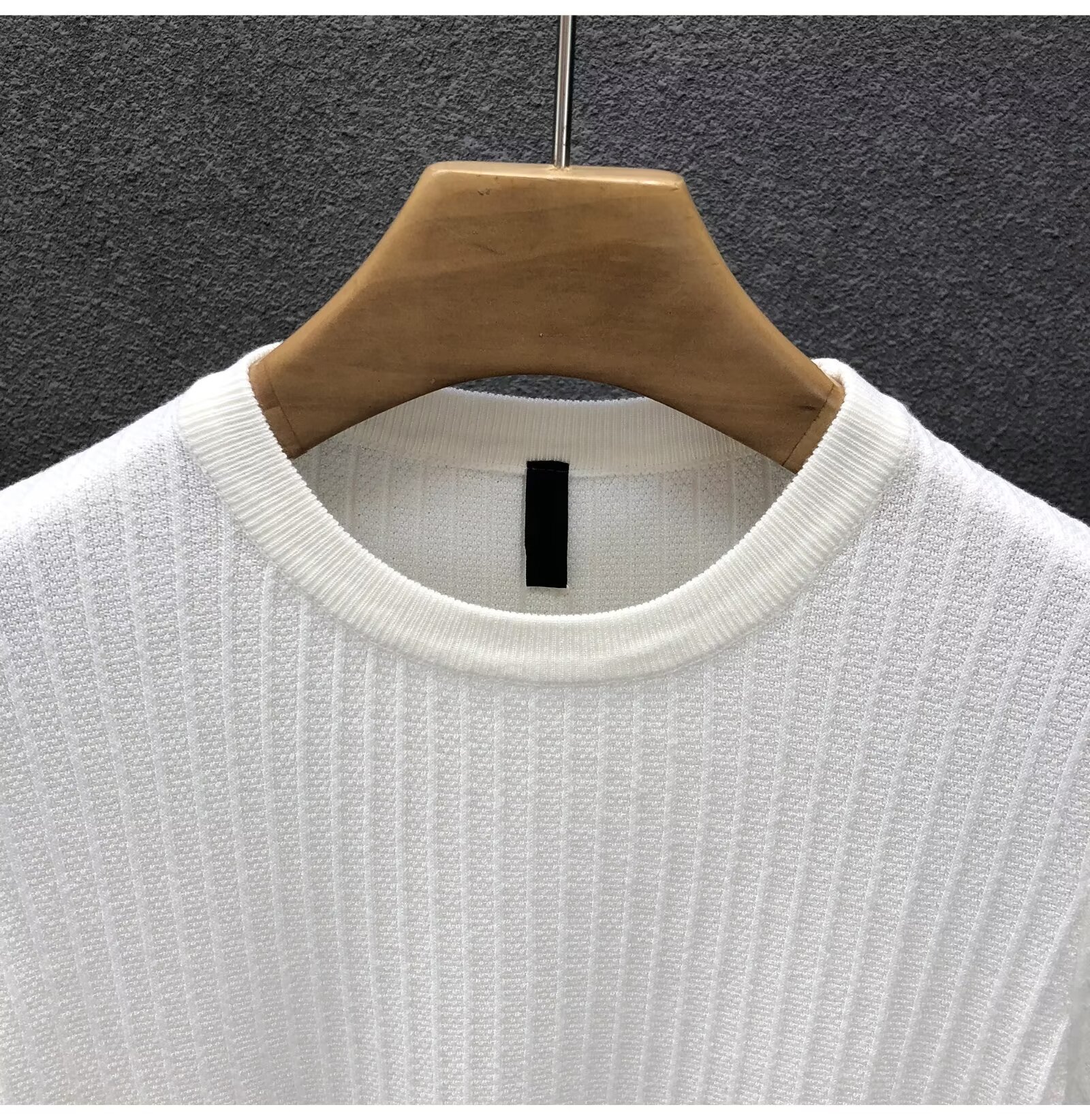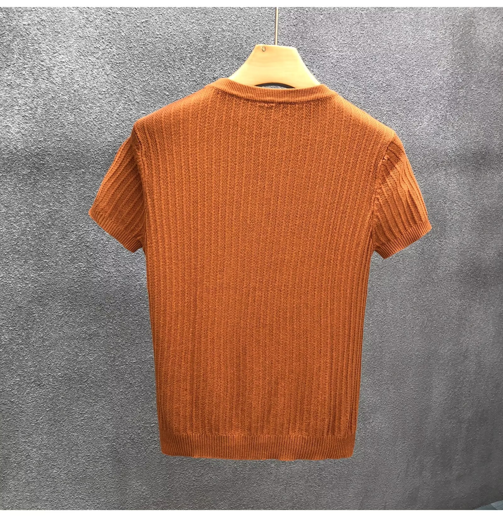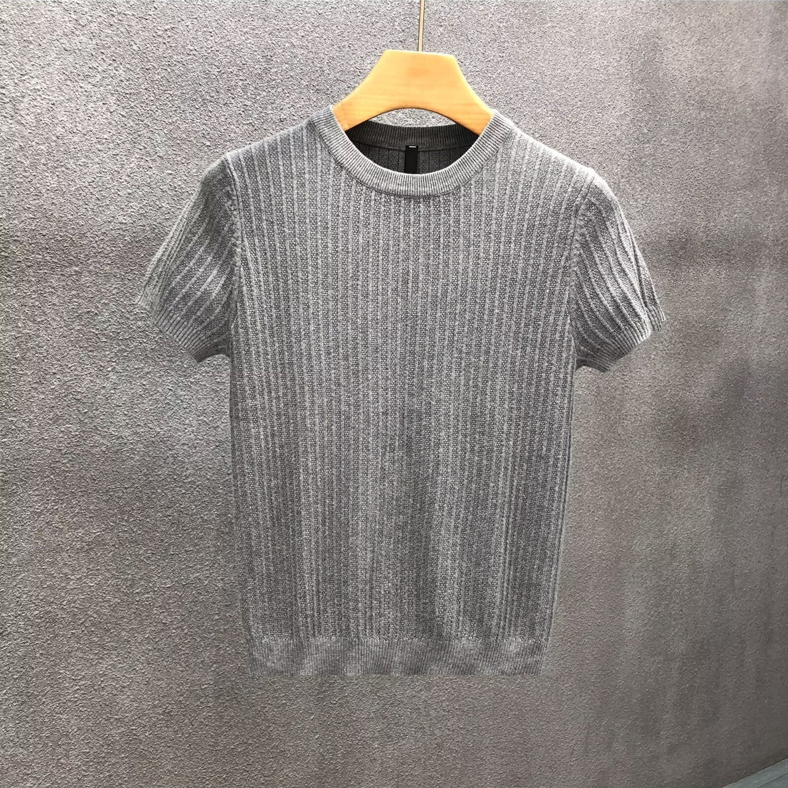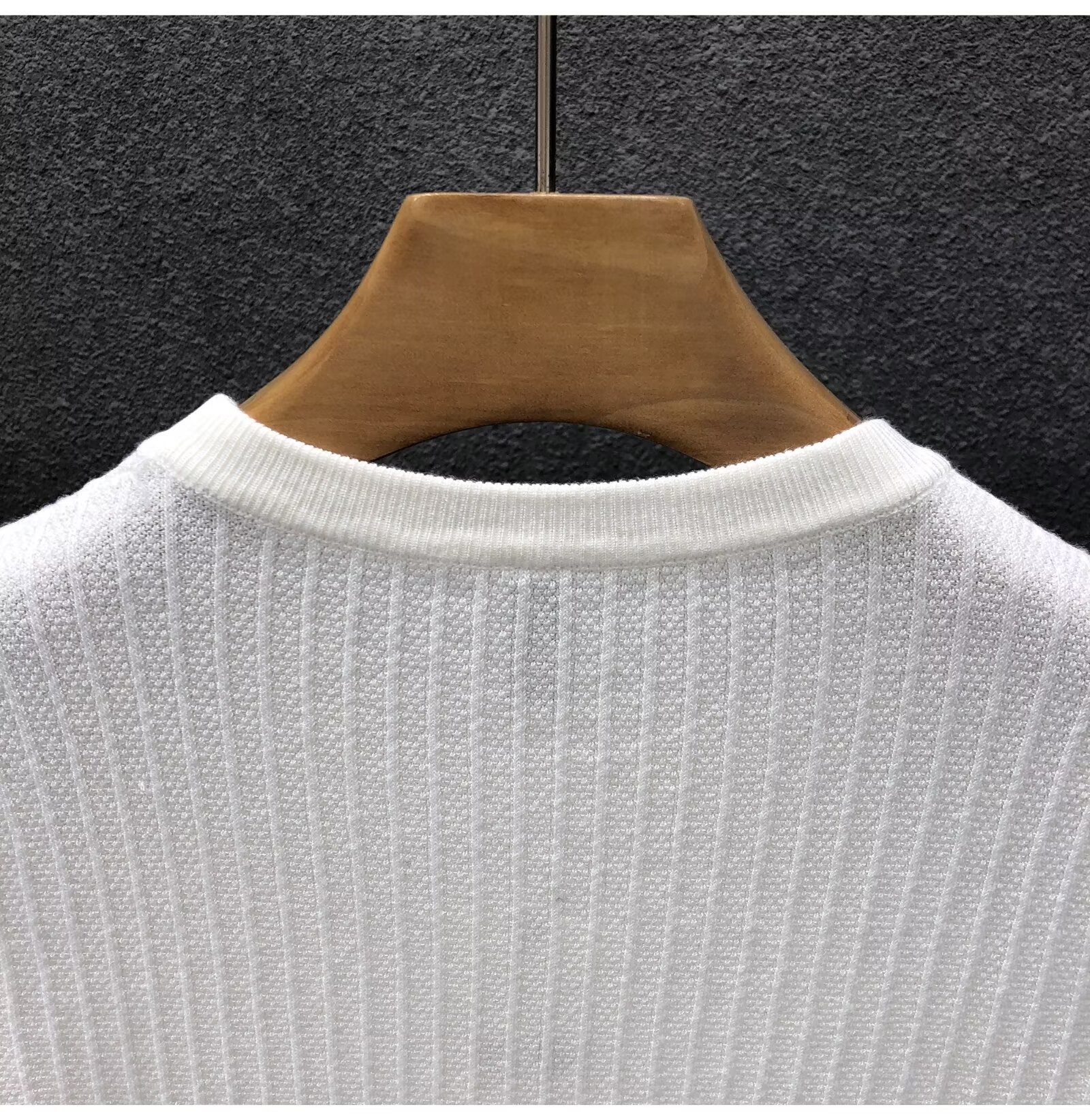 고급 다이아몬드 모양의 격자 무늬 니트 반팔 스웨터 남성용 화이트 이너 티셔츠 패션 브랜드 라운드 넥 반소매 스웨터 남성