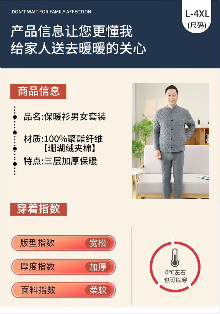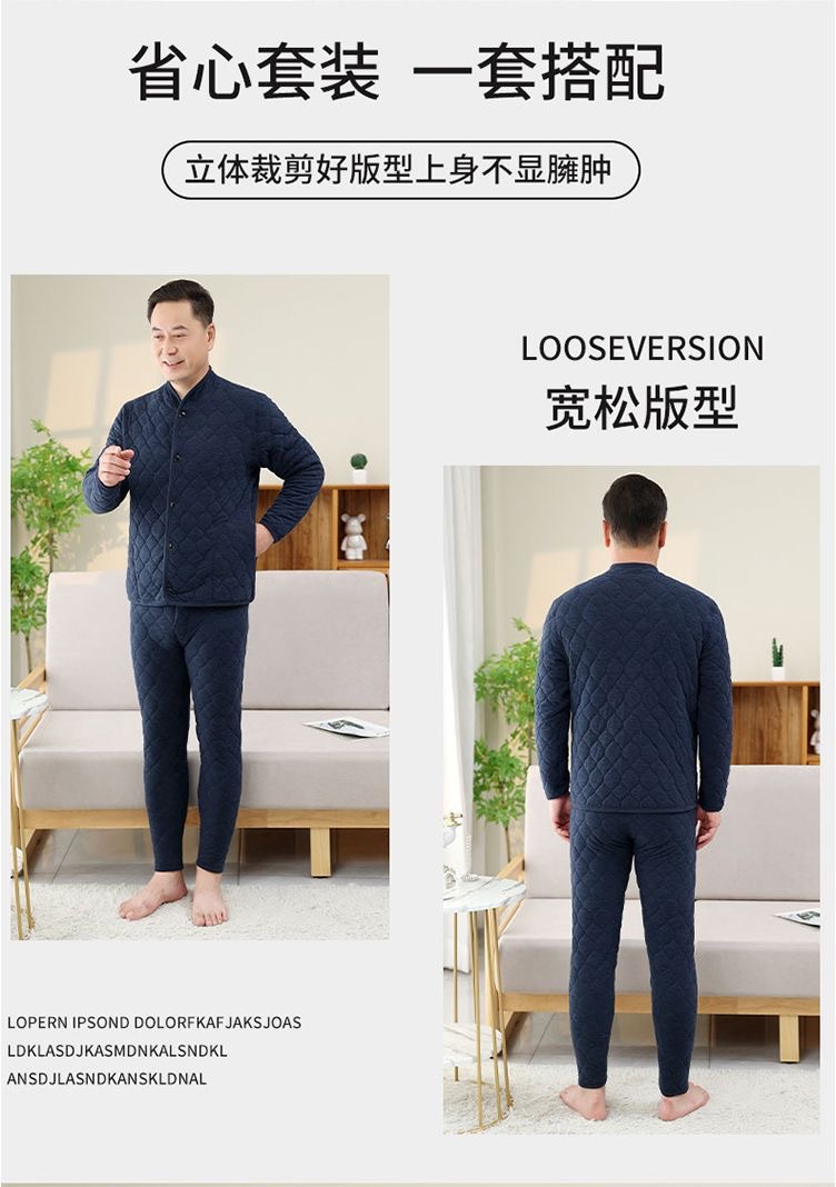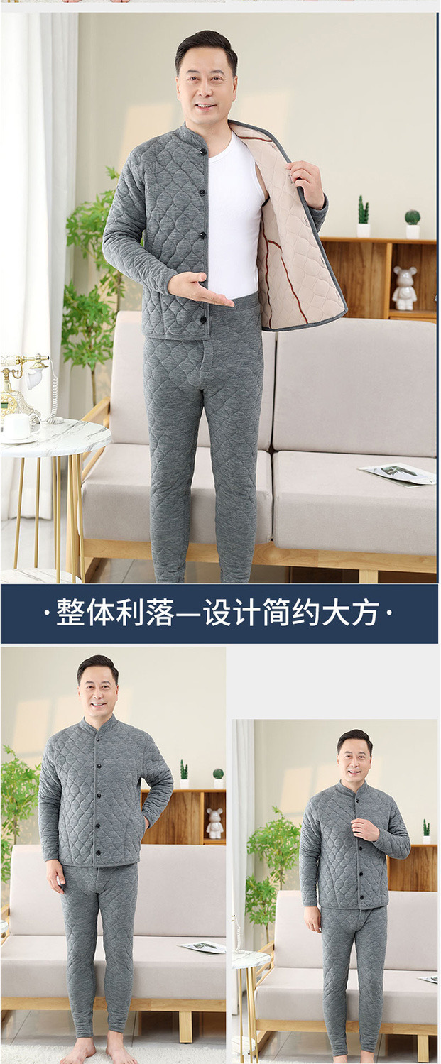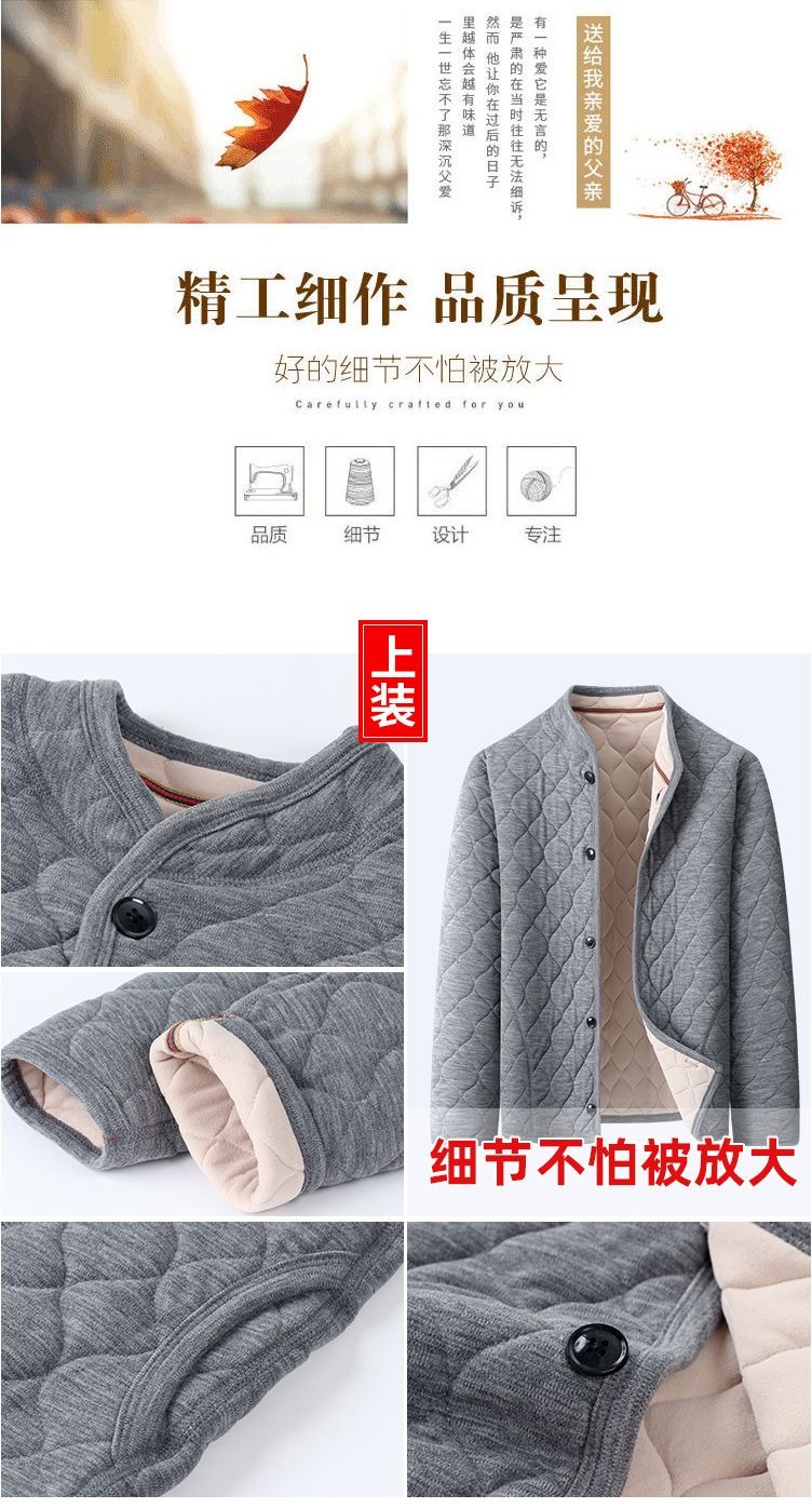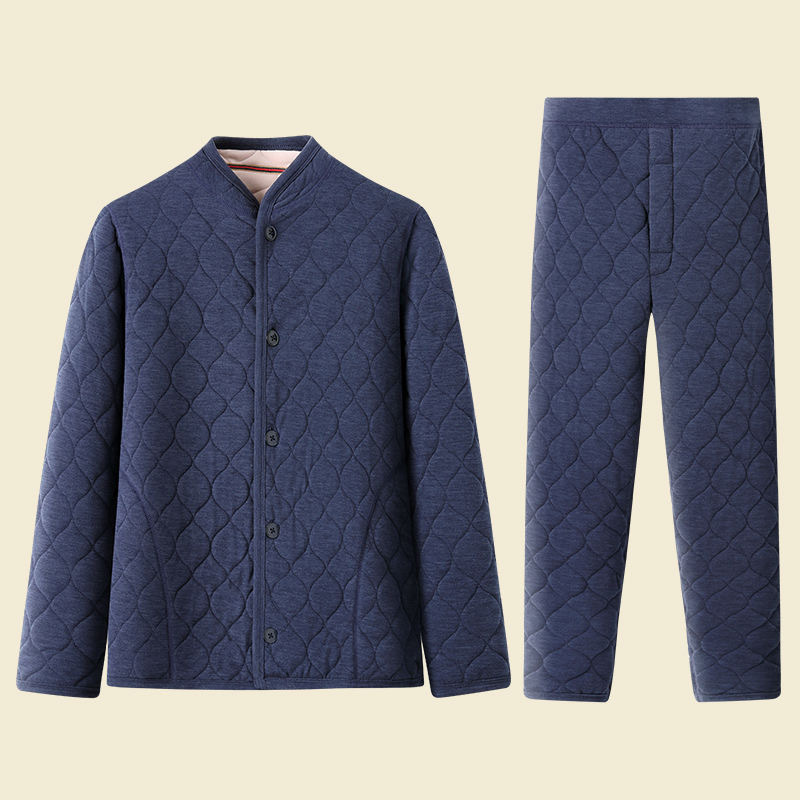 [산호벨벳 3중 누빔] 가을 겨울 남성 홈웨어 중장년층 따뜻한 잠옷 세트, 벨벳으로 두껍게 제작