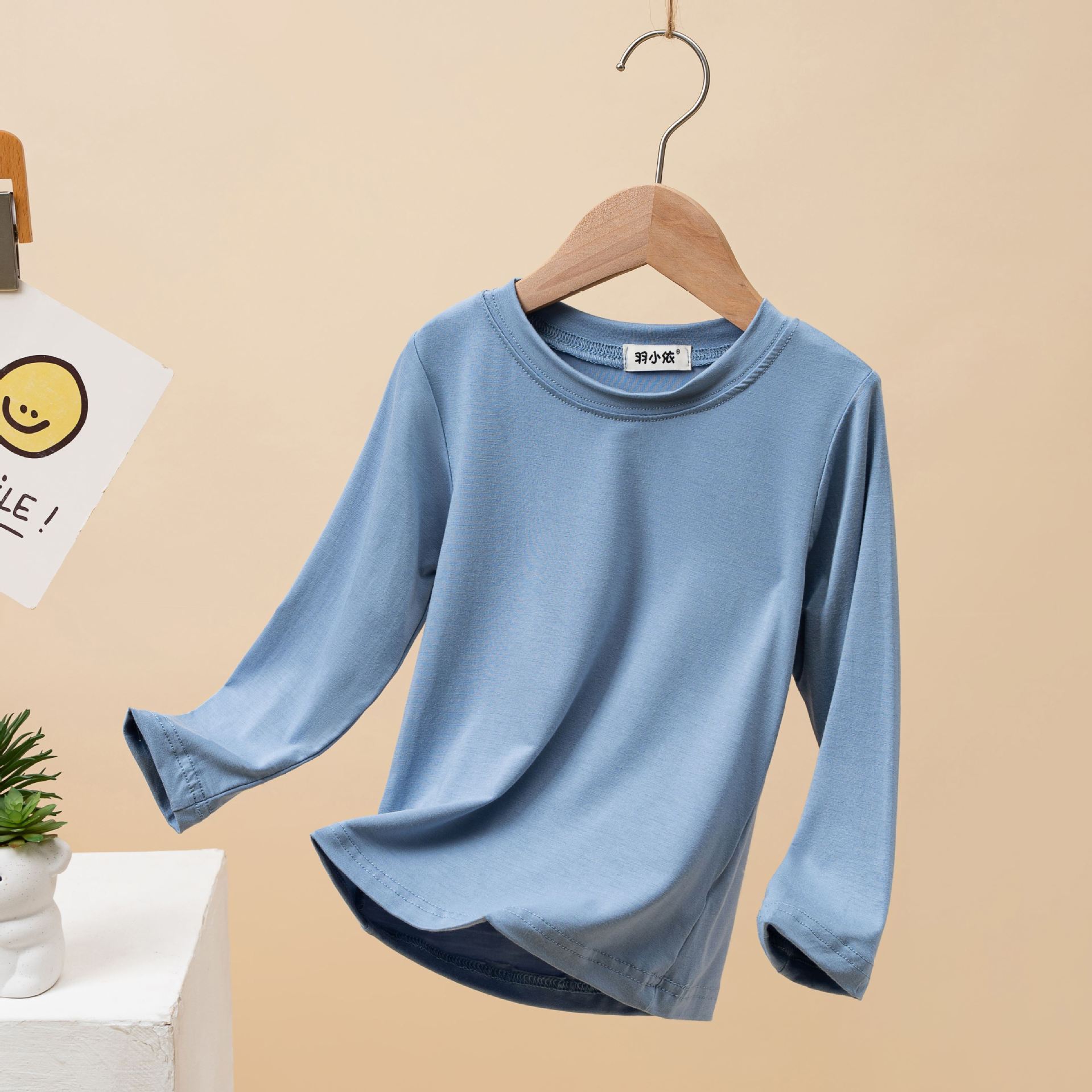 어린이 모달 바닥 셔츠 봄과 가을 소년의 긴팔 가을 옷 소녀 아기 단색 흰색 내부 티셔츠 탑스토어 가기