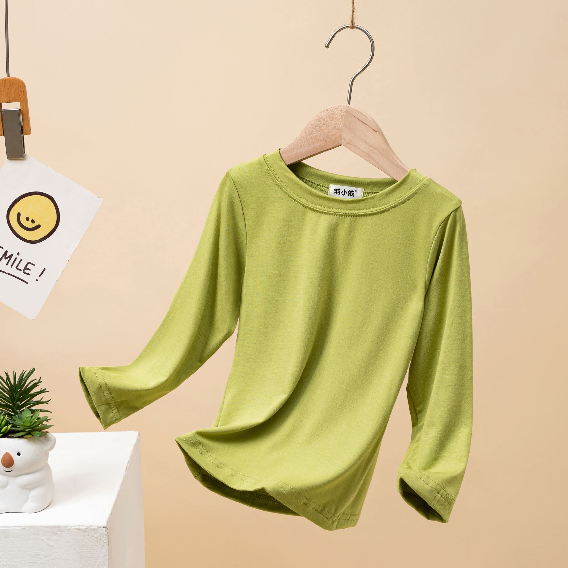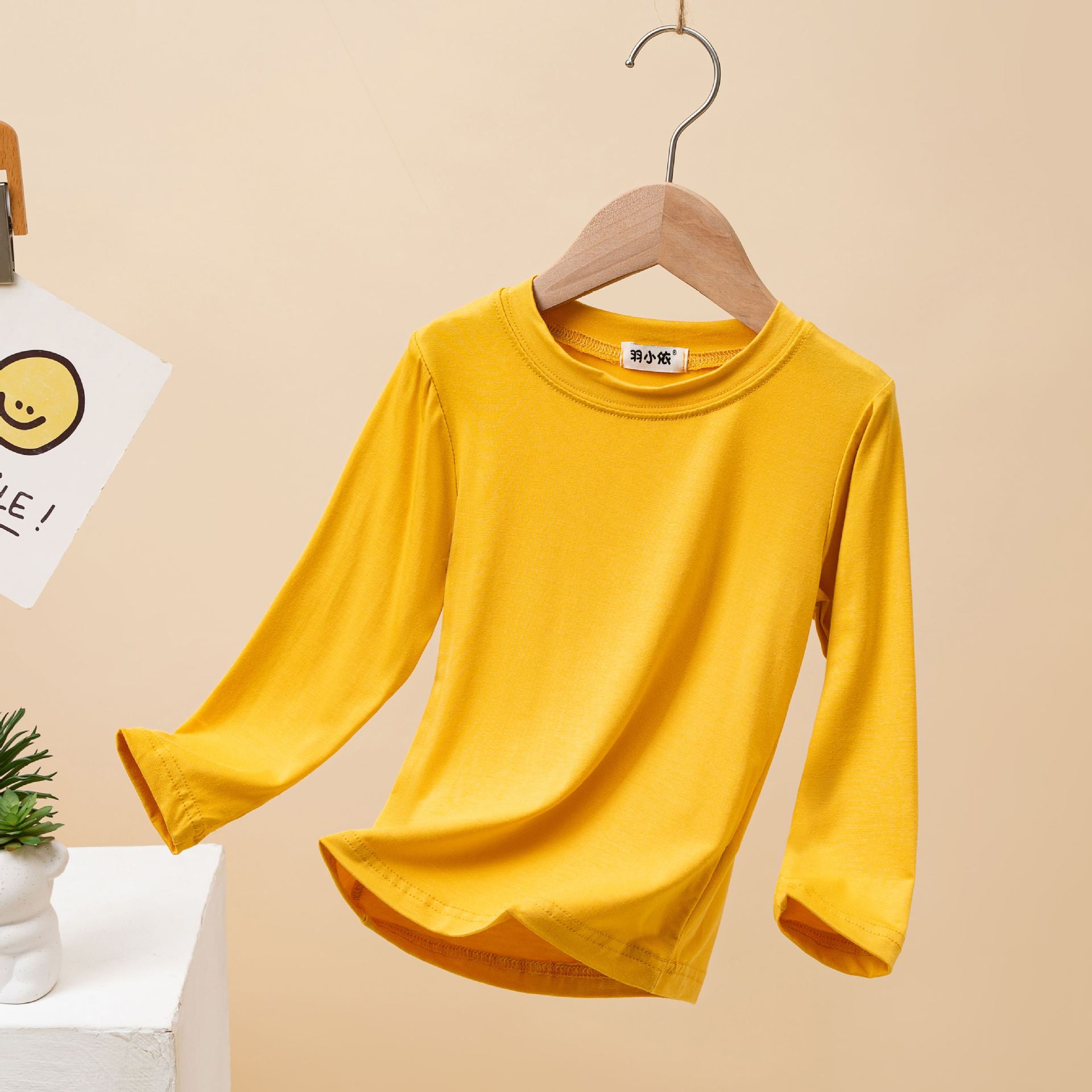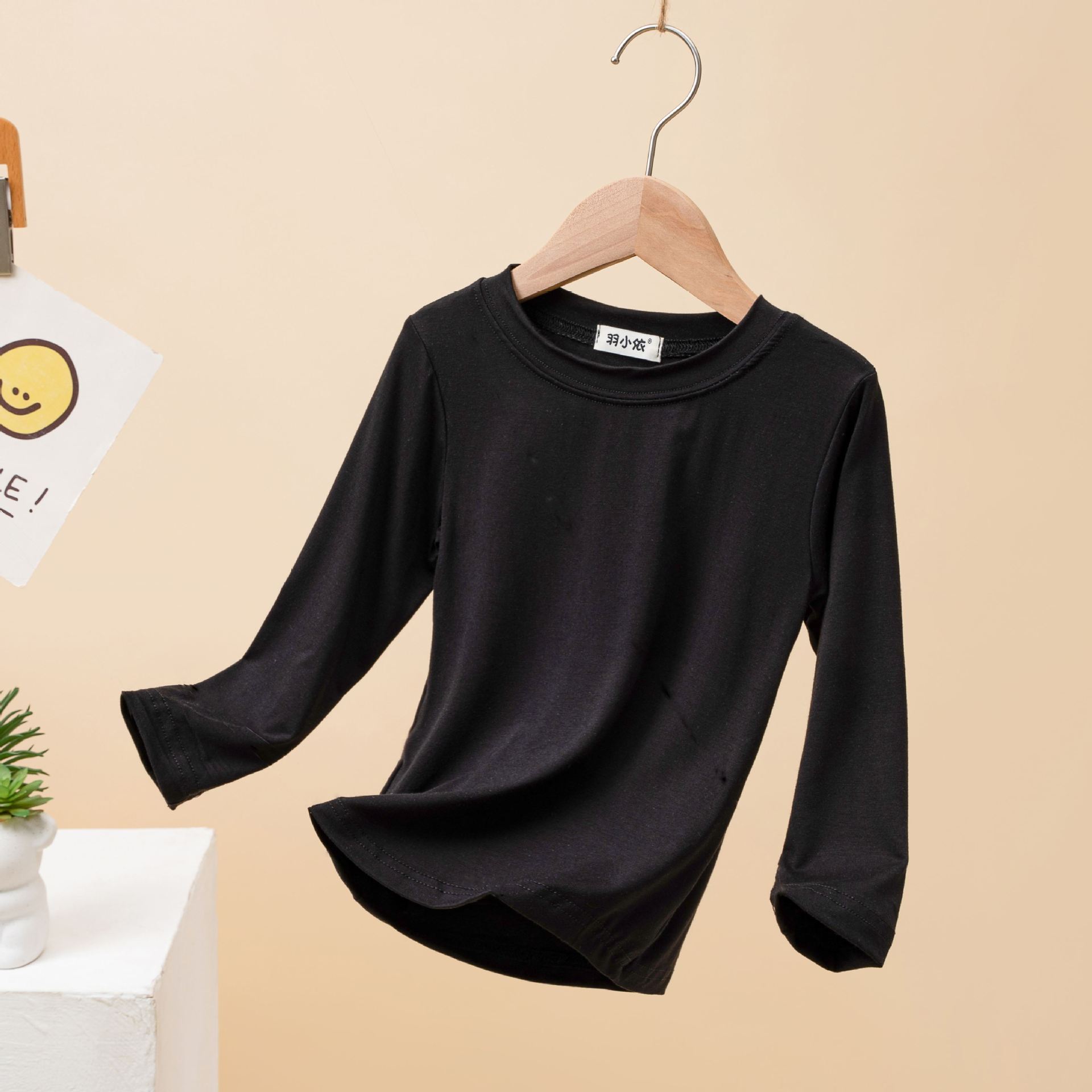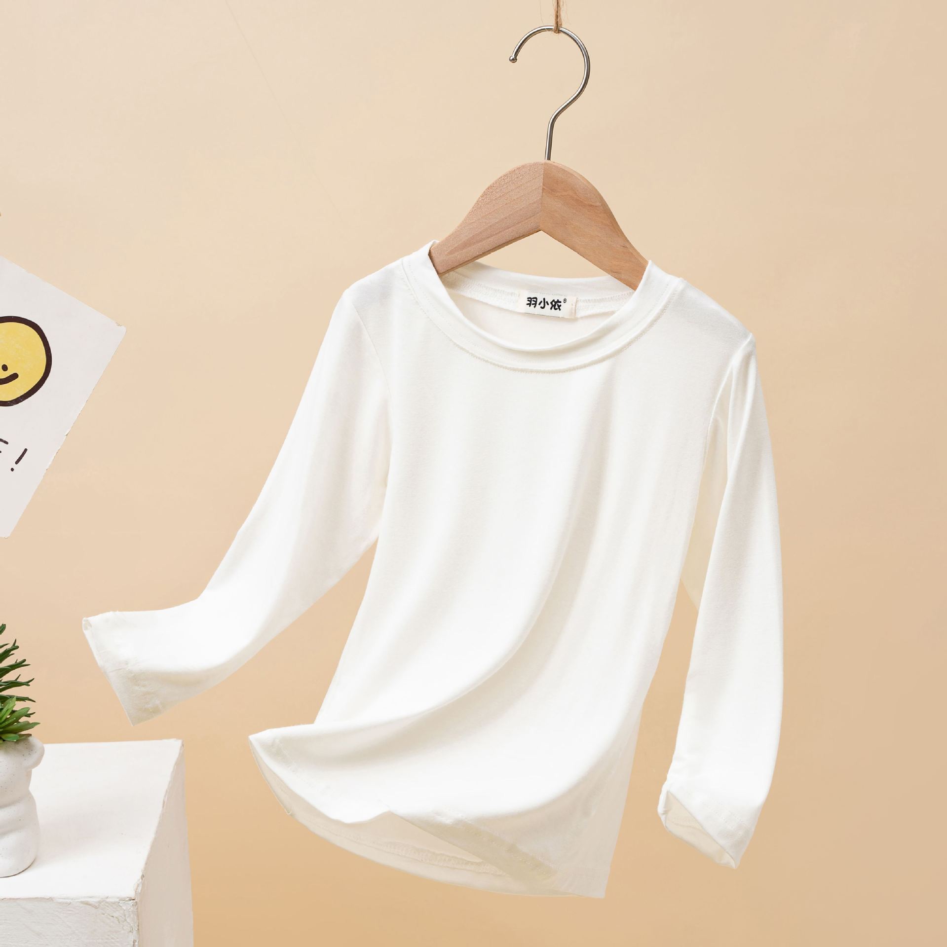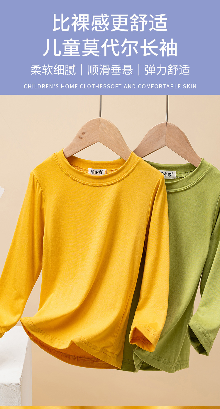 어린이 모달 바닥 셔츠 봄과 가을 소년의 긴팔 가을 옷 소녀 아기 단색 흰색 내부 티셔츠 탑