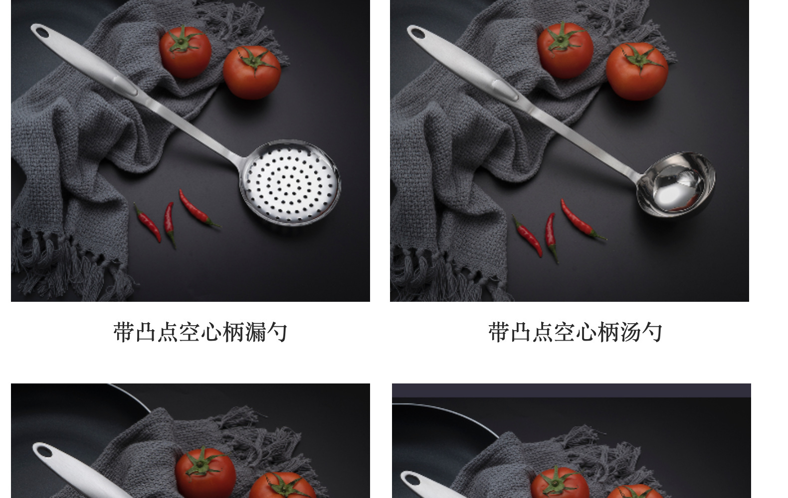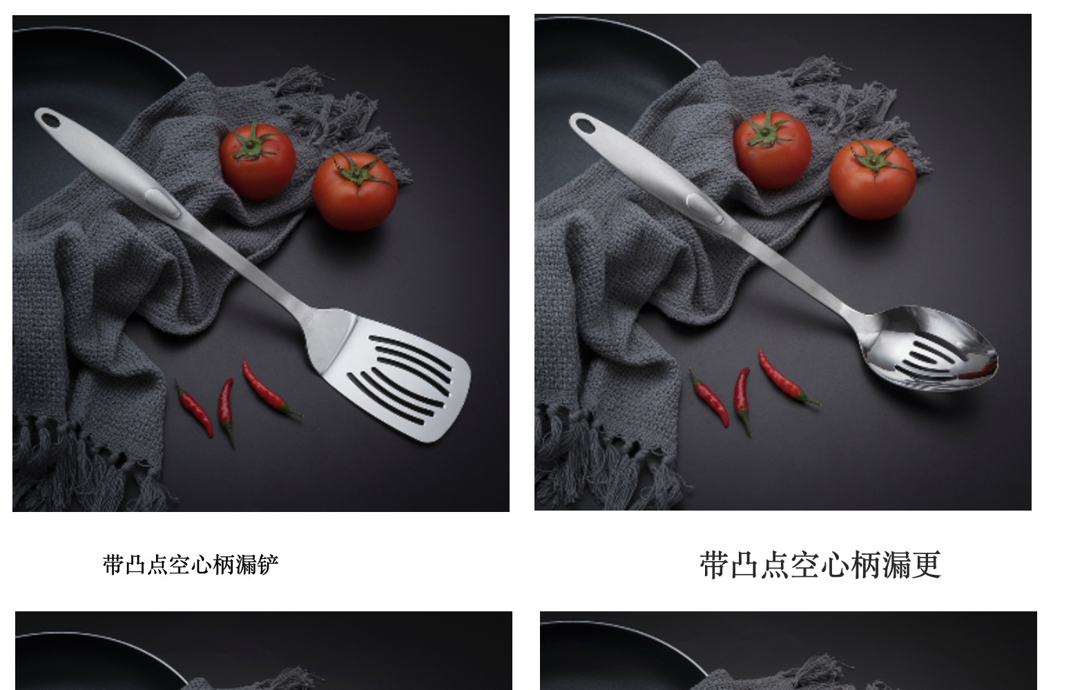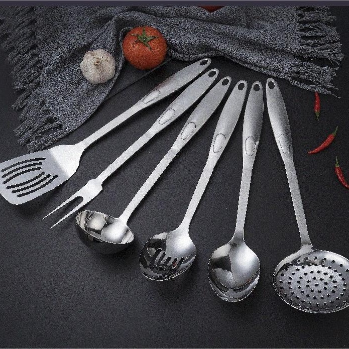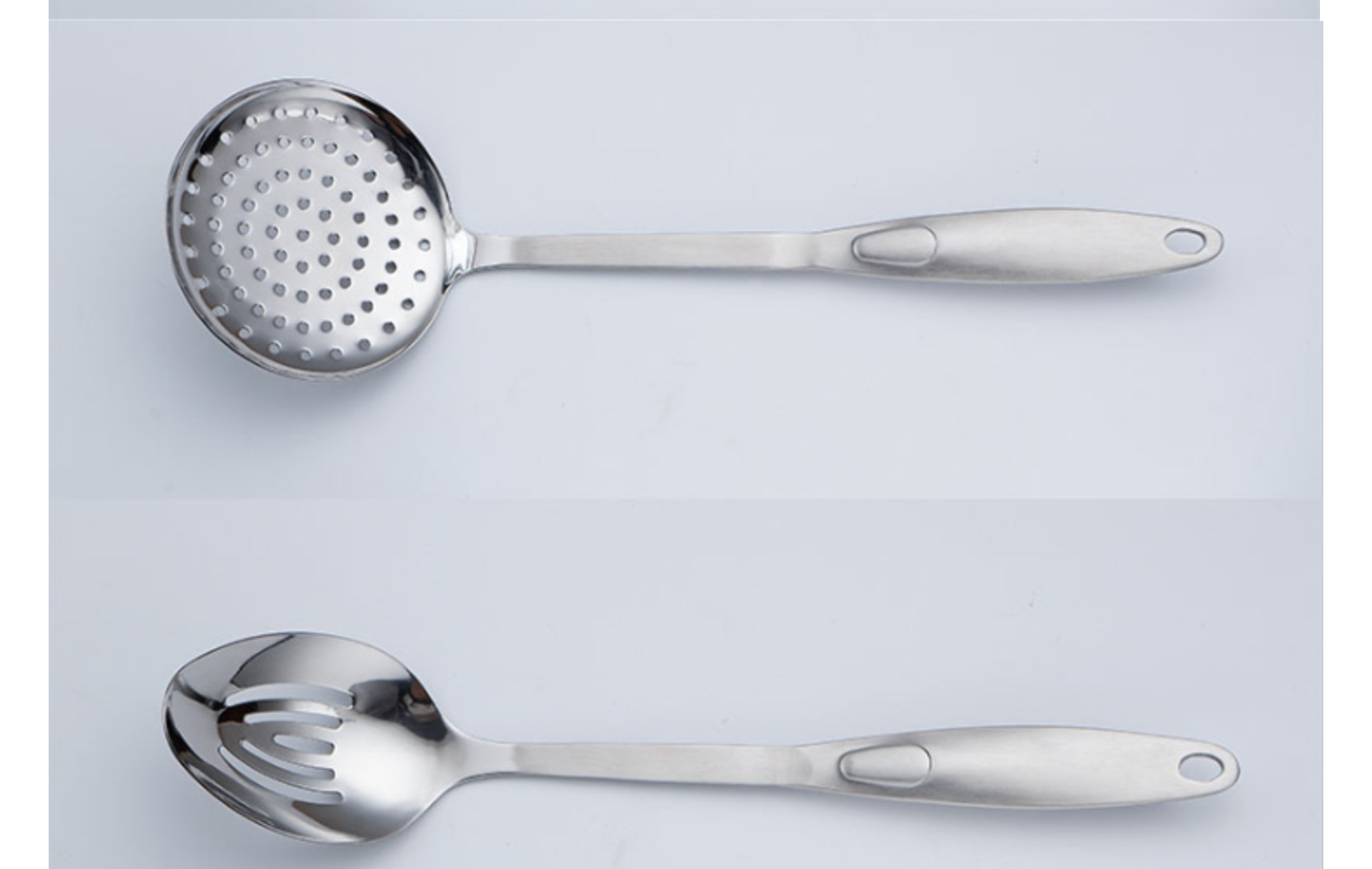 공장 직접 스테인레스 스틸 주방 요리 도구 중공 핸들 팬케이크 주걱 쌀 숟가락 수프 숟가락 배수