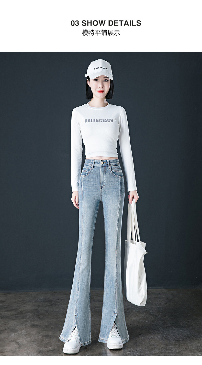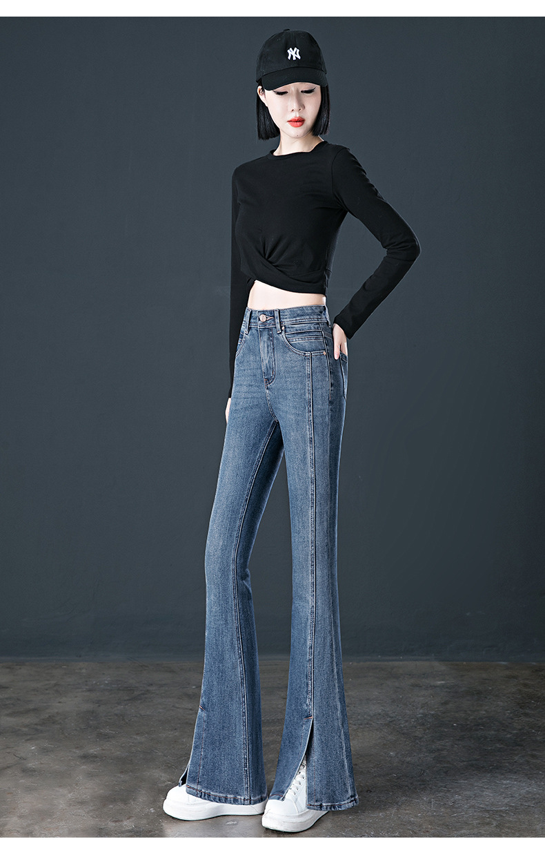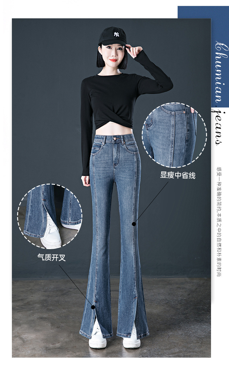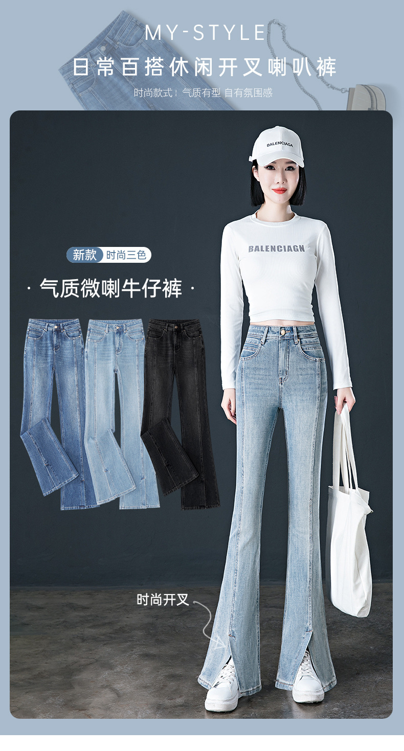 여성용 하이웨이스트 부츠컷 청바지 2026 봄 신상 다용도 슬림핏 다리길이 연장 탄력있는 슬릿 플레어 팬츠스토어 가기