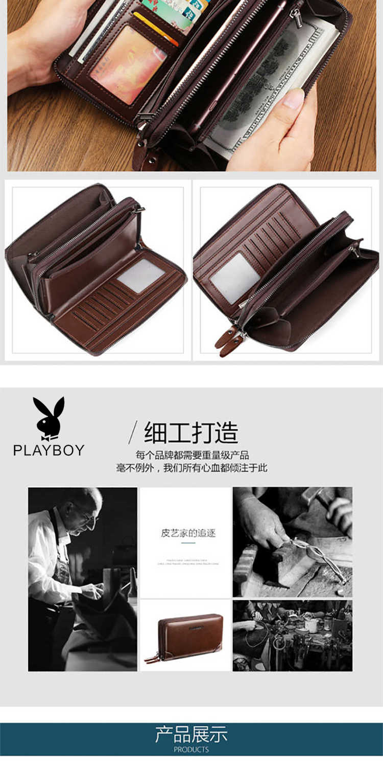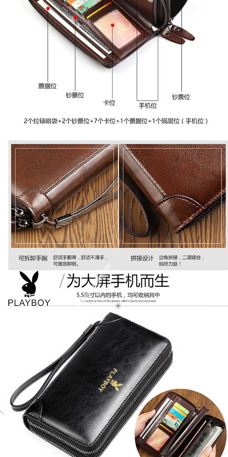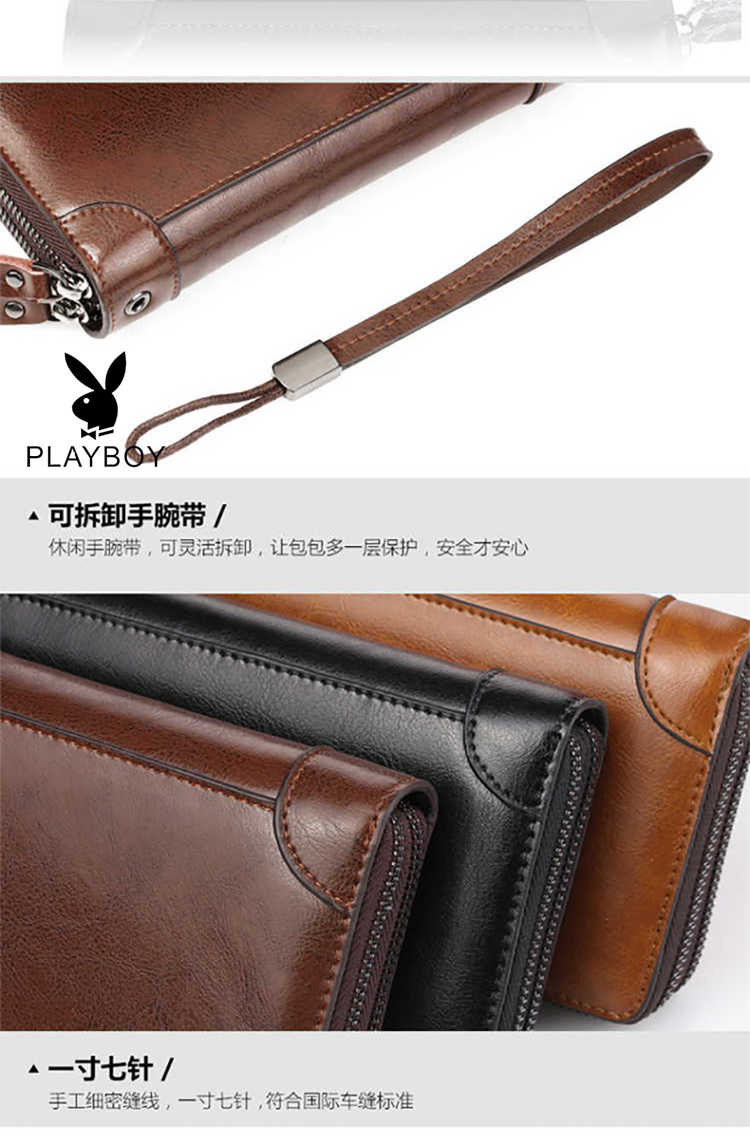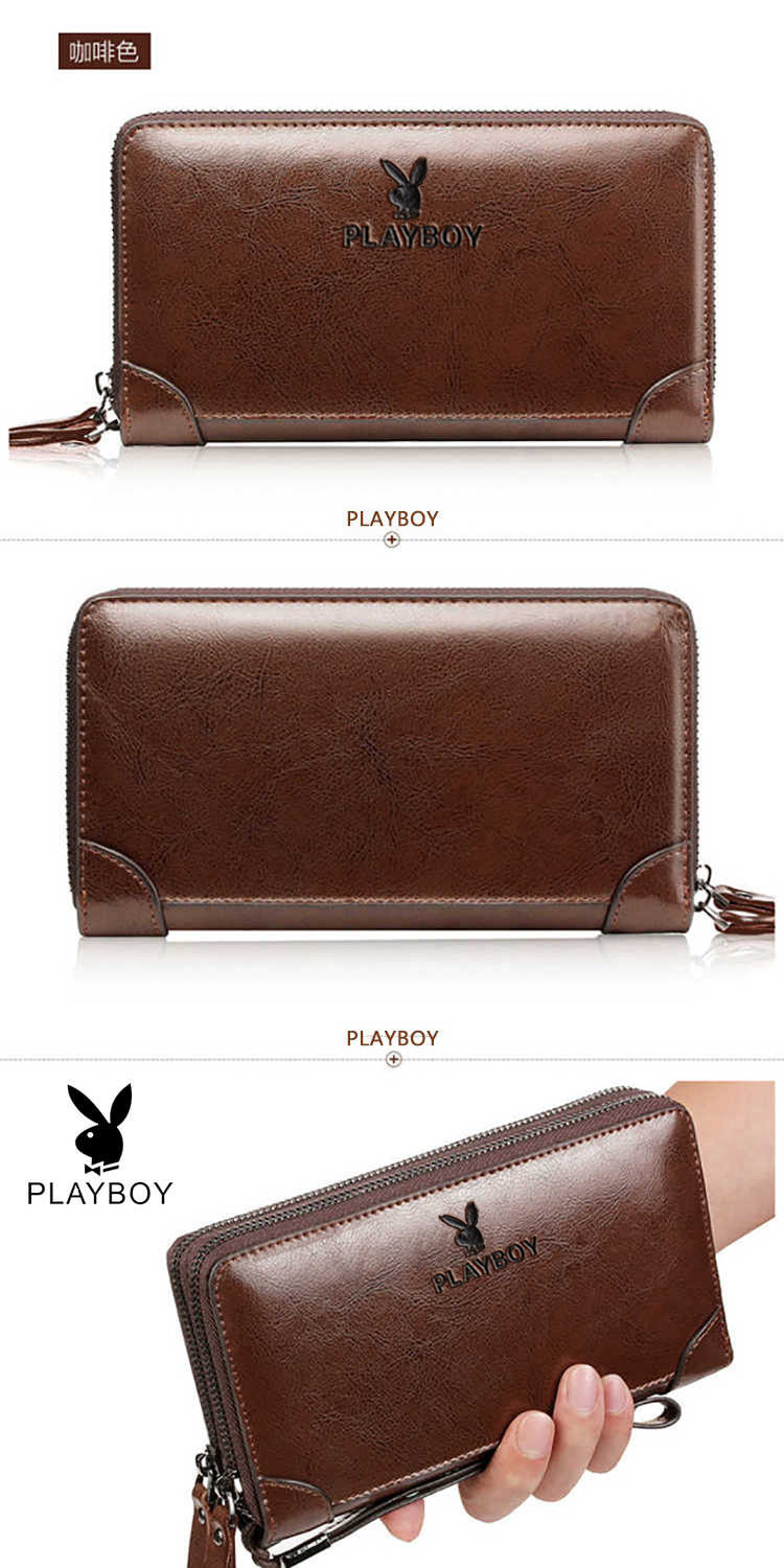 플레이 보이 공식 정품 남성 더블 지퍼 클러치 가죽 섬유 남성 지갑 휴대 전화 가방 남성 대용량스토어 가기