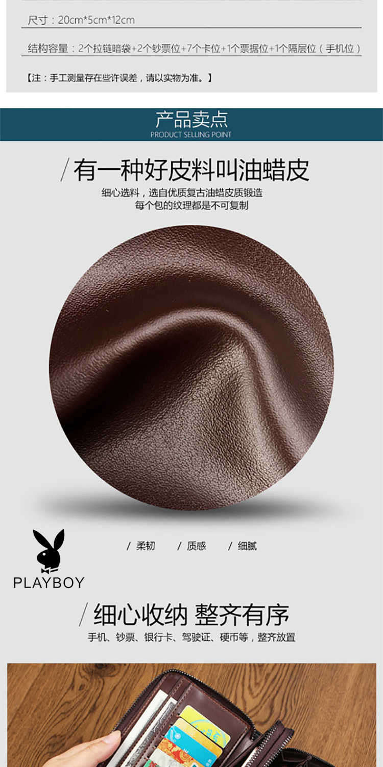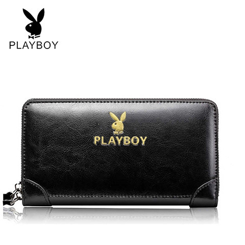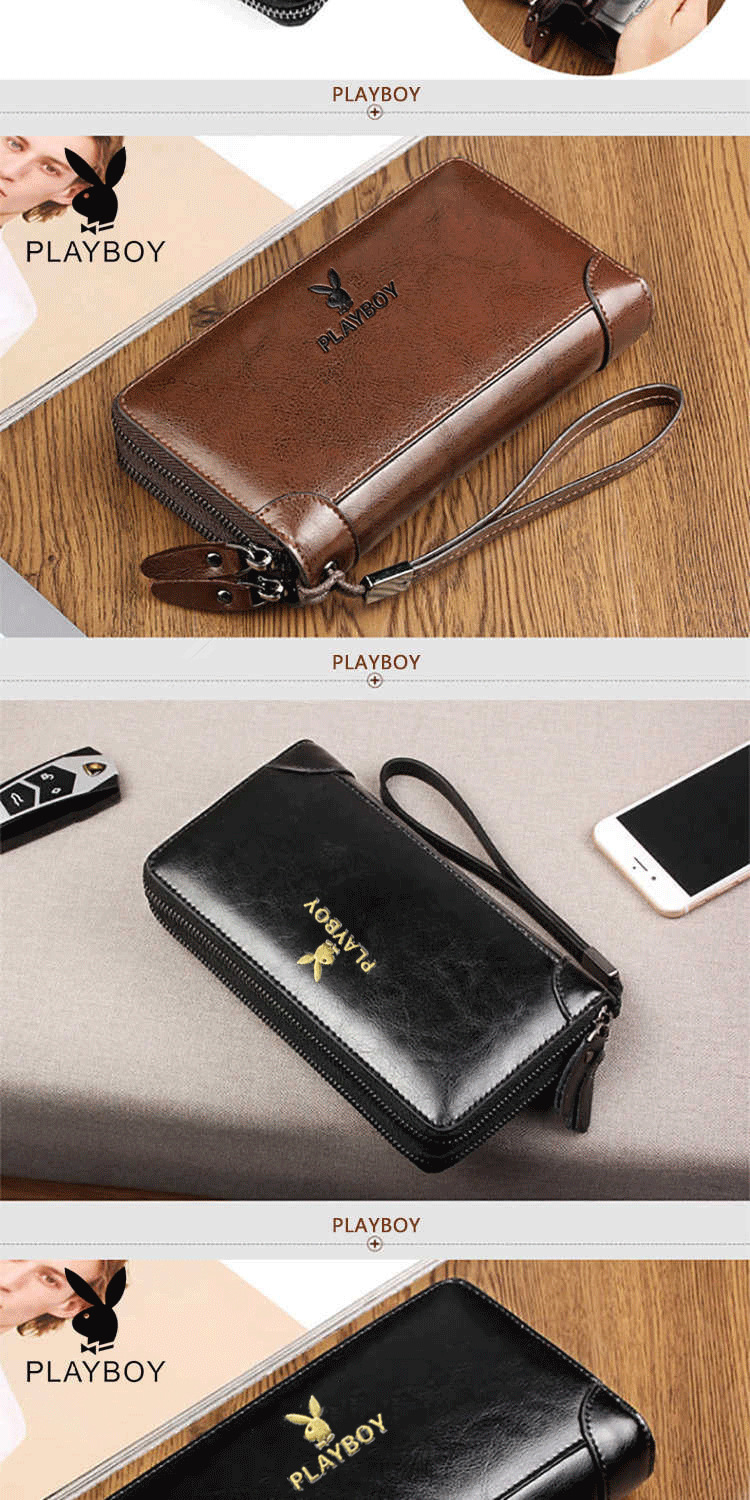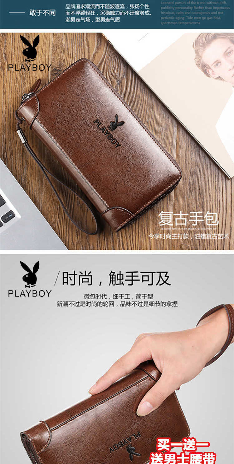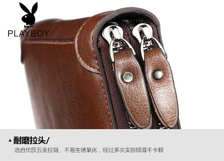 플레이 보이 공식 정품 남성 더블 지퍼 클러치 가죽 섬유 남성 지갑 휴대 전화 가방 남성 대용량스토어 가기