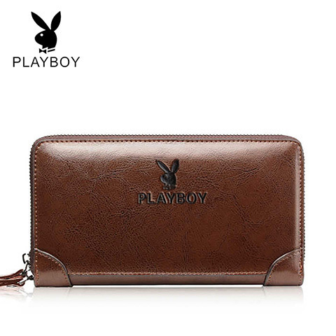 플레이 보이 공식 정품 남성 더블 지퍼 클러치 가죽 섬유 남성 지갑 휴대 전화 가방 남성 대용량
