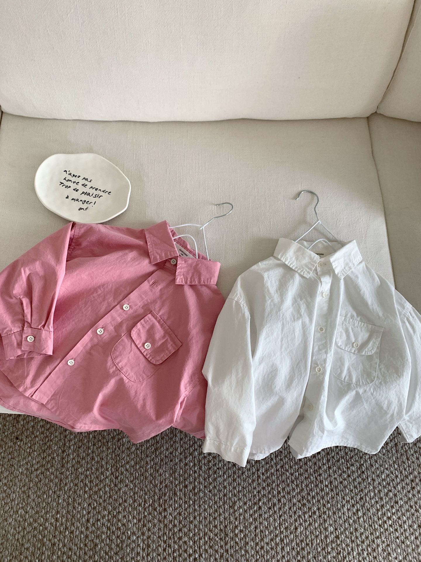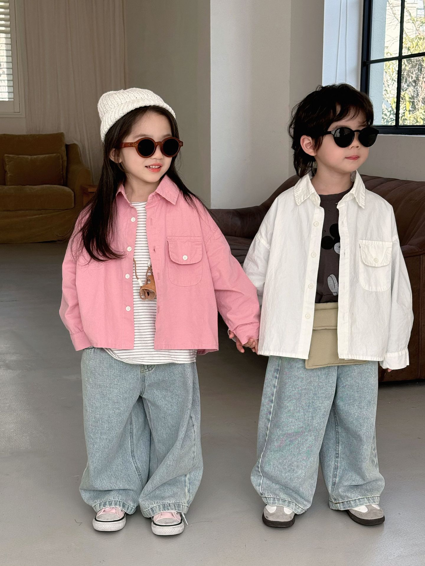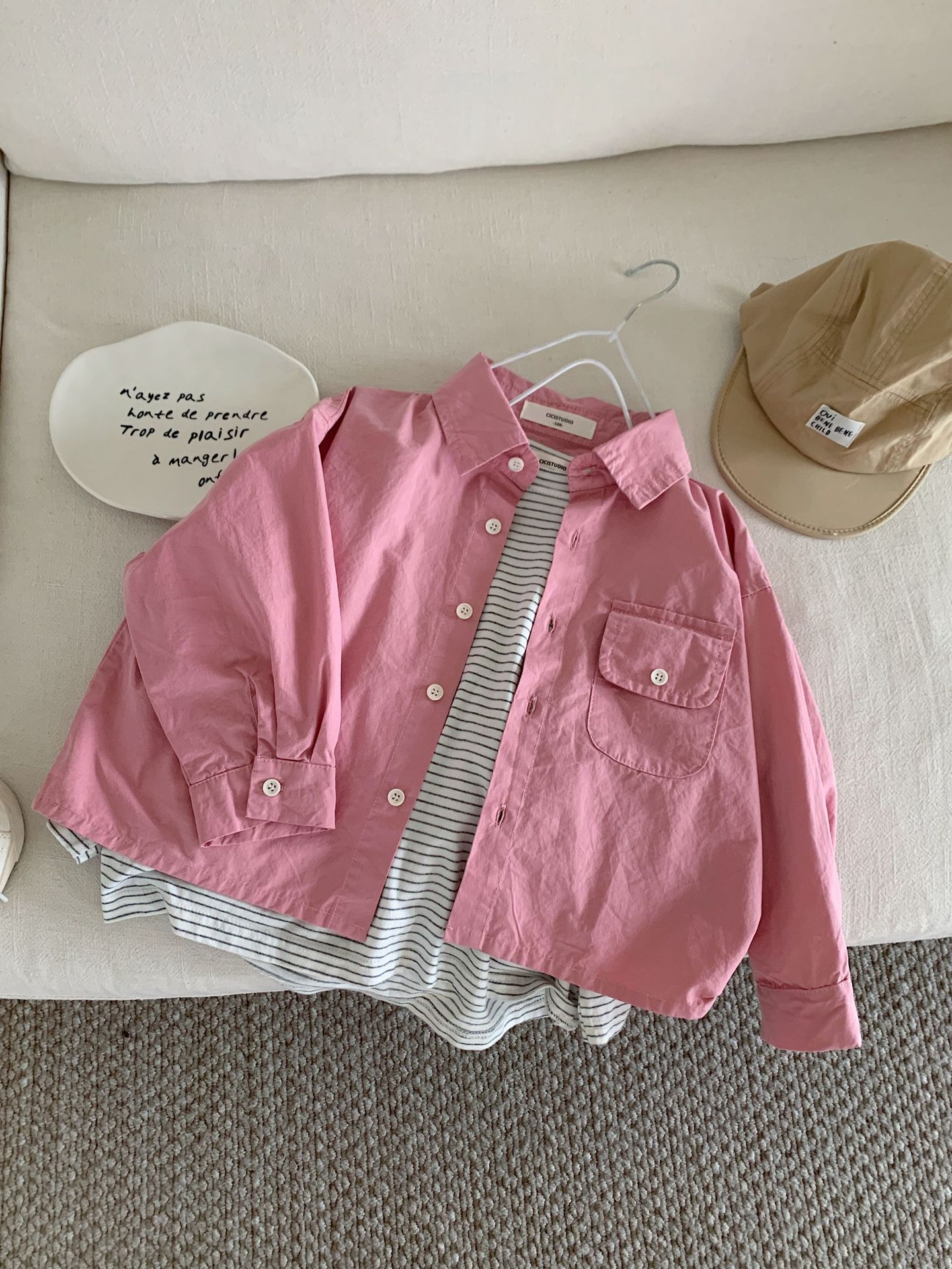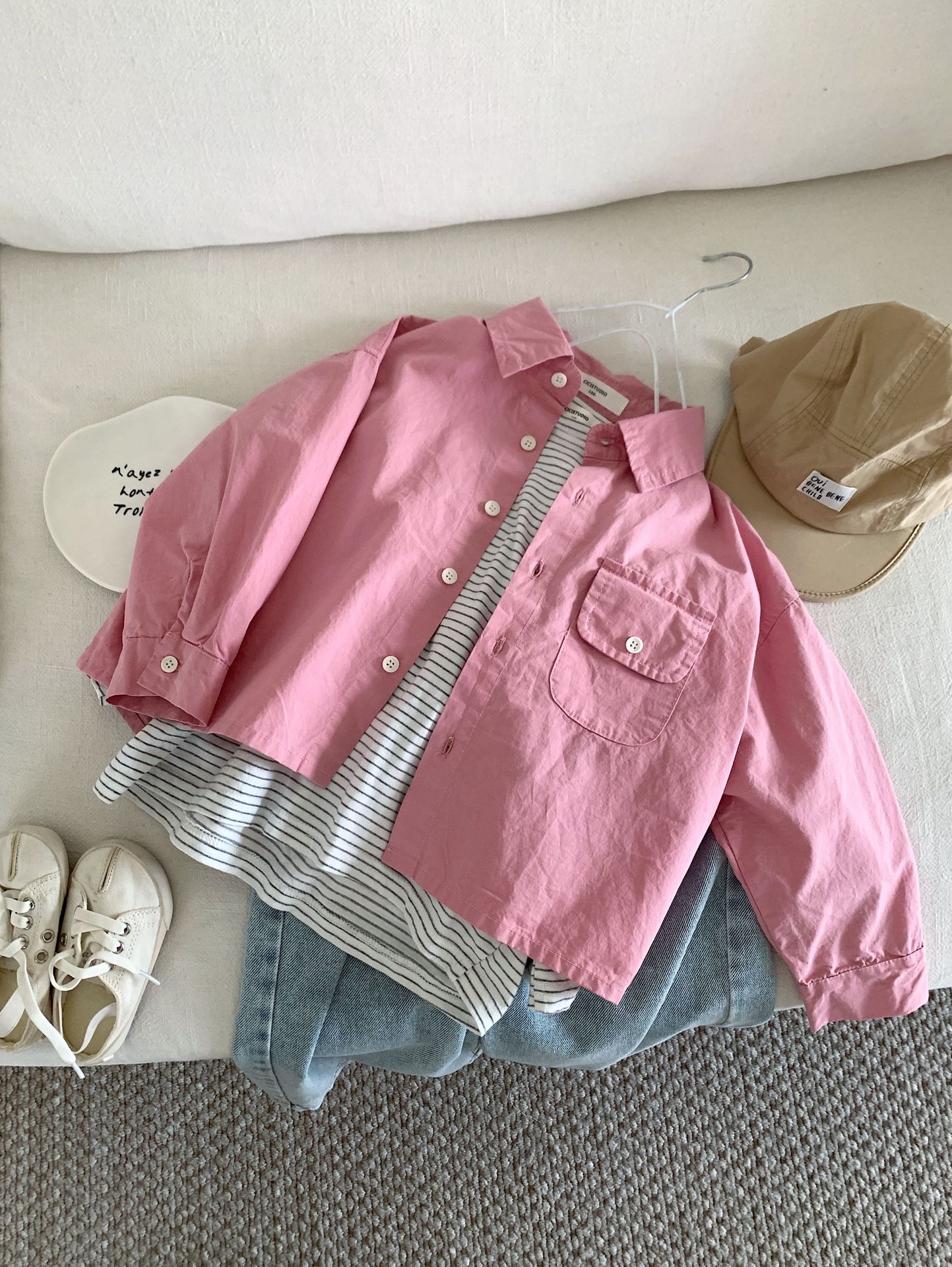 봄 새로운 한국 스타일 아동면 셔츠 재킷 어린이 캐주얼 단색 올 매치 느슨한 긴팔 셔츠 트렌디스토어 가기