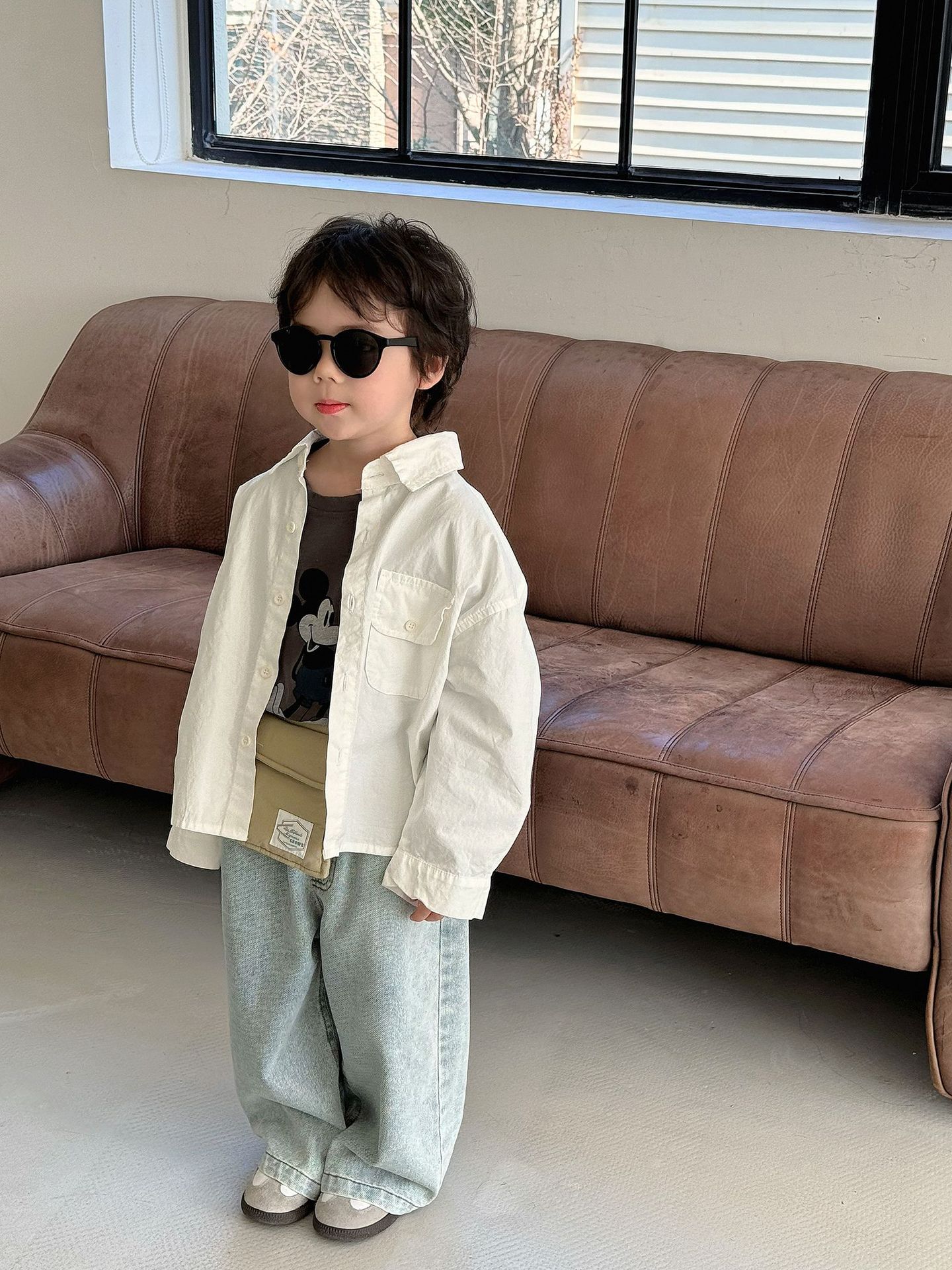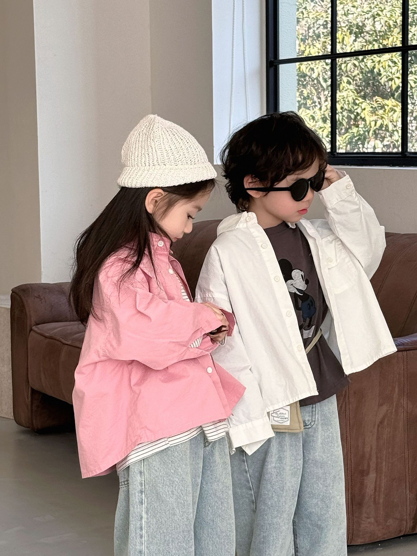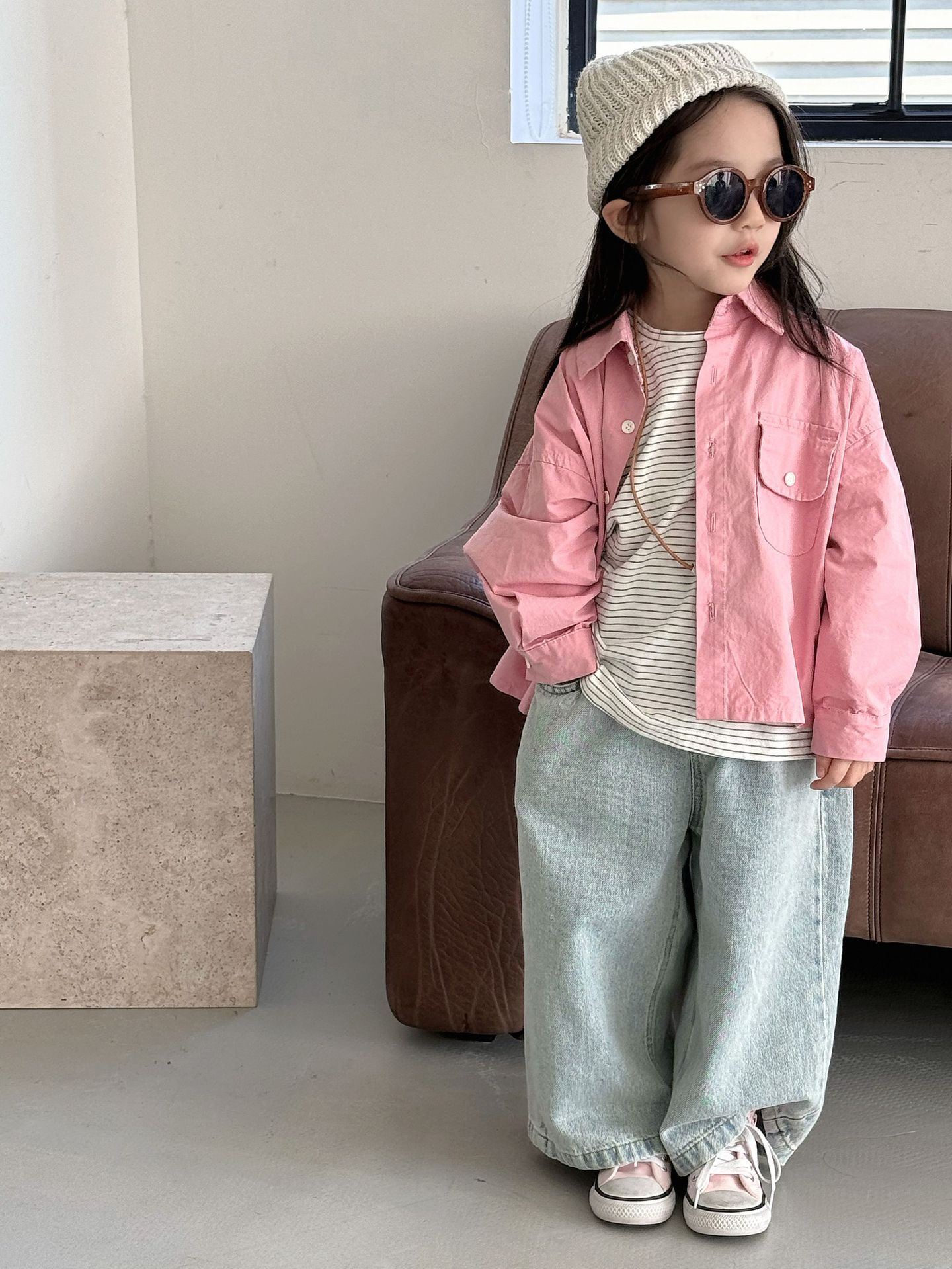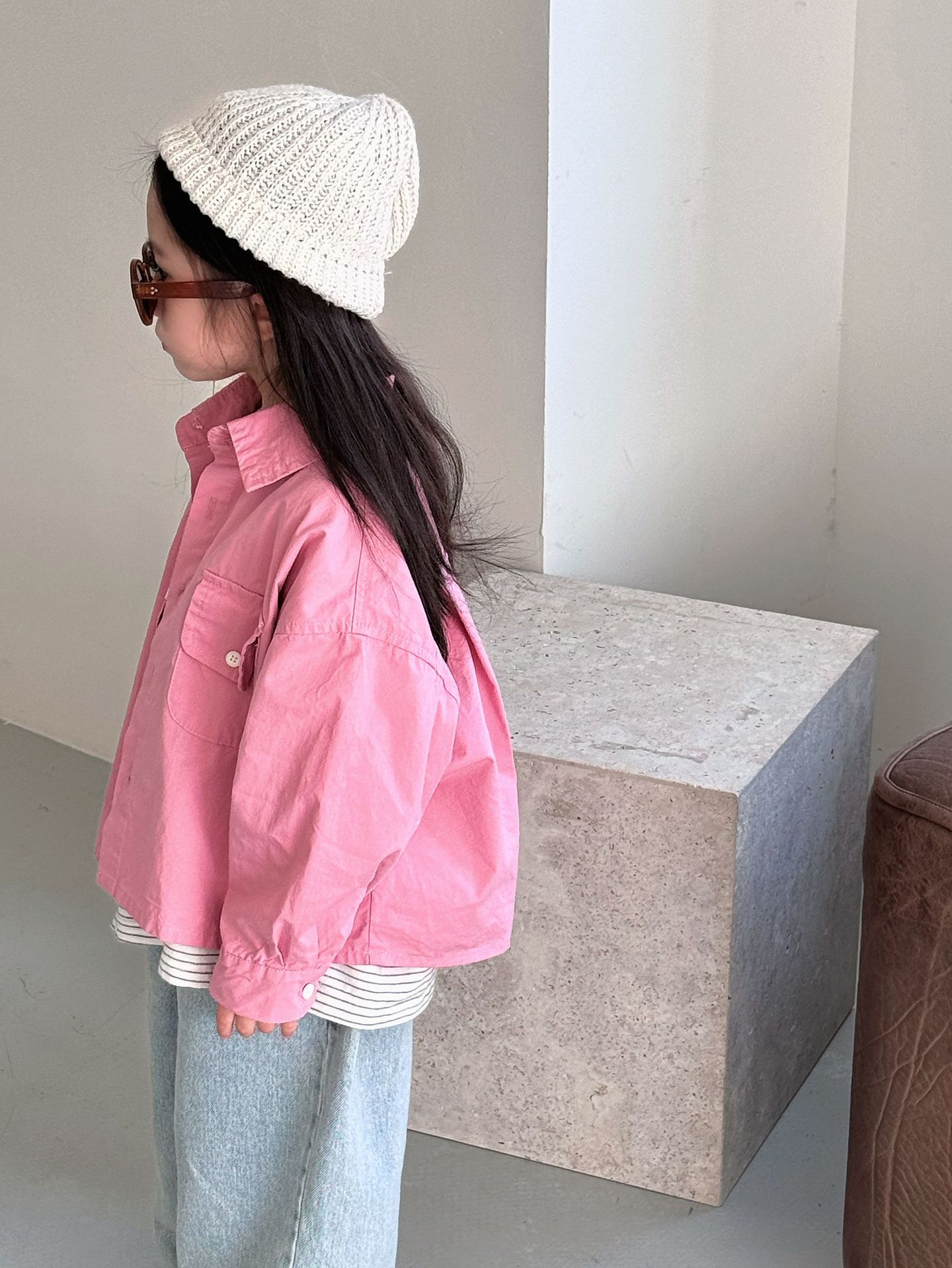 봄 새로운 한국 스타일 아동면 셔츠 재킷 어린이 캐주얼 단색 올 매치 느슨한 긴팔 셔츠 트렌디스토어 가기