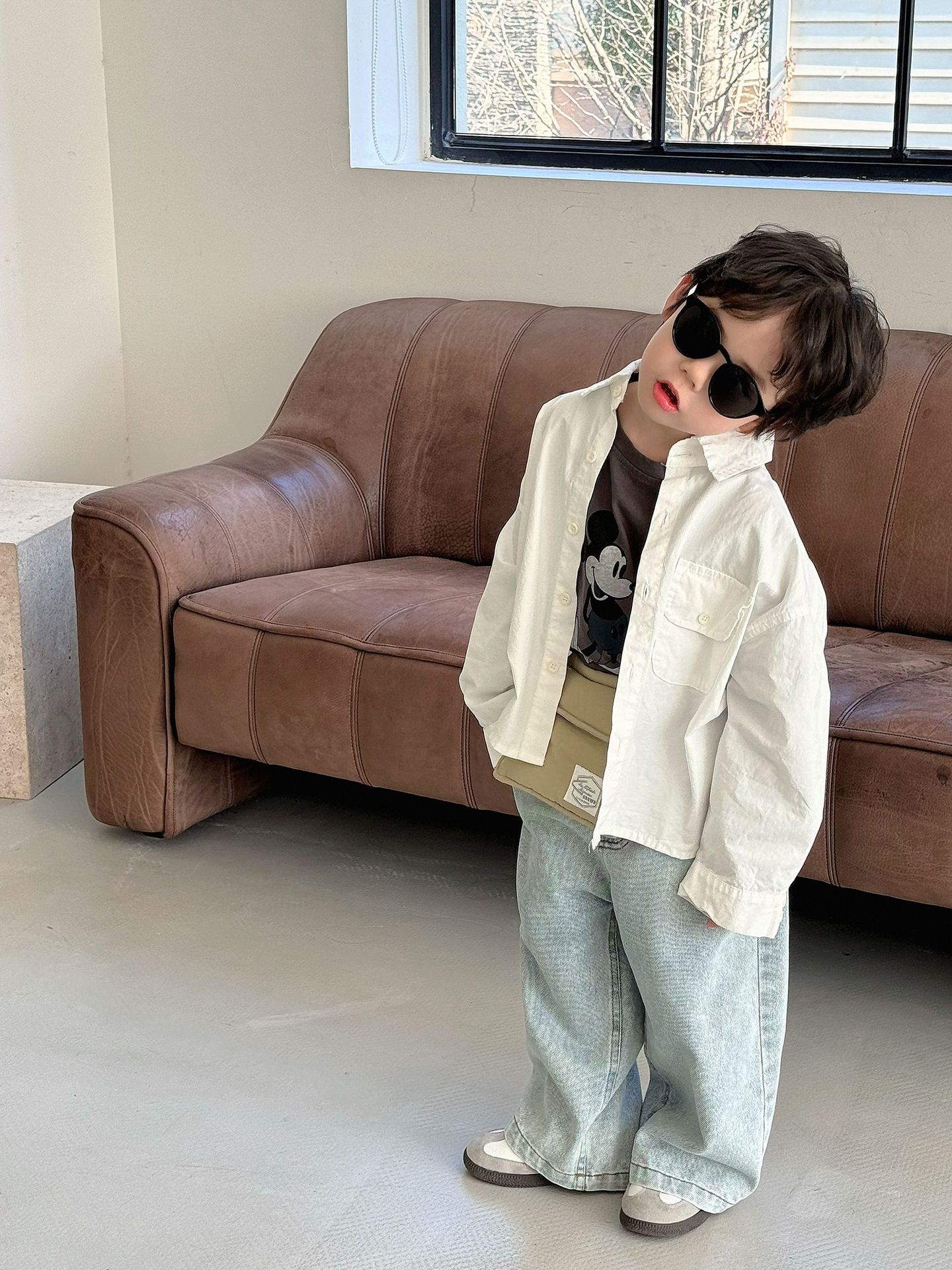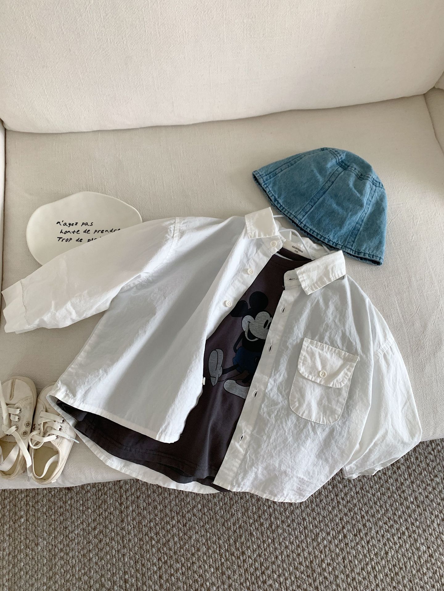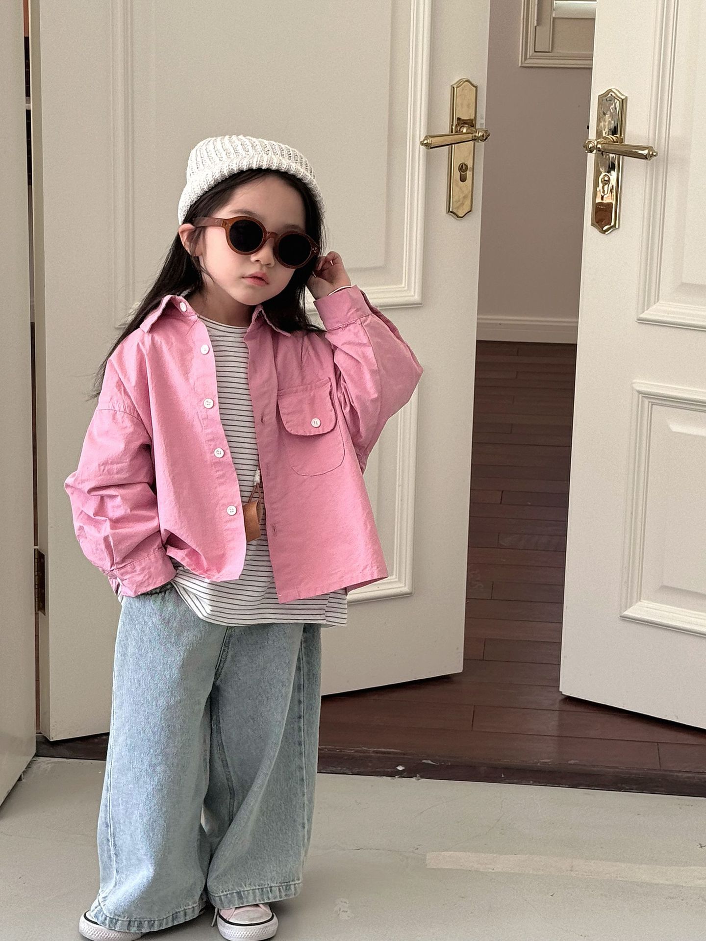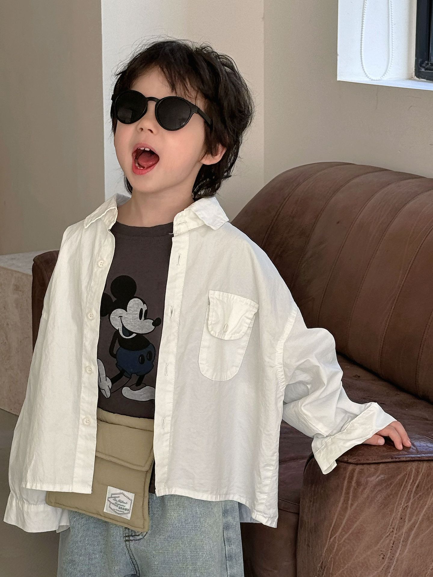 봄 새로운 한국 스타일 아동면 셔츠 재킷 어린이 캐주얼 단색 올 매치 느슨한 긴팔 셔츠 트렌디스토어 가기
