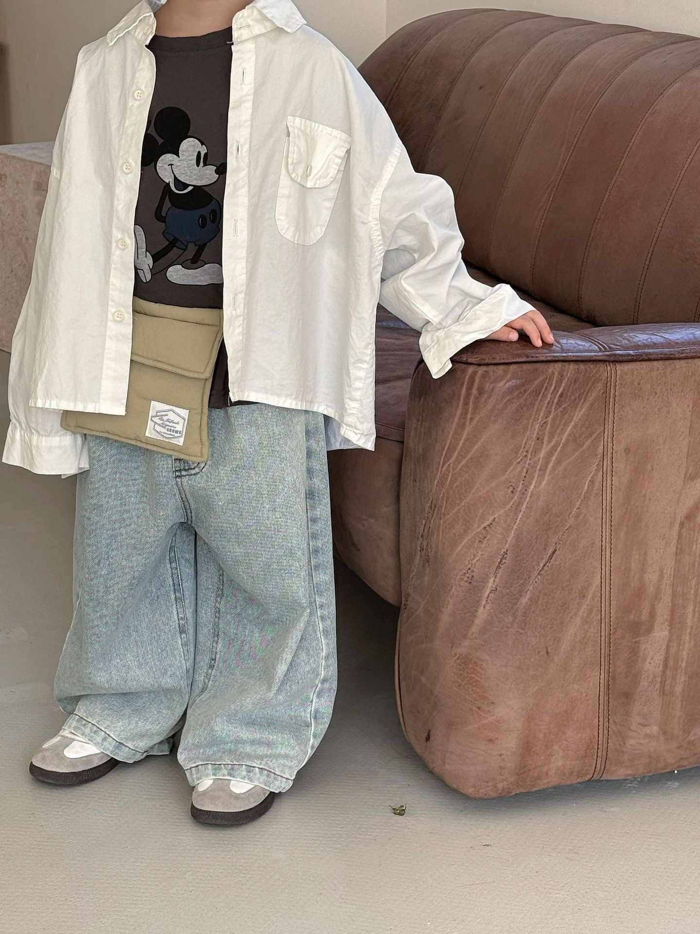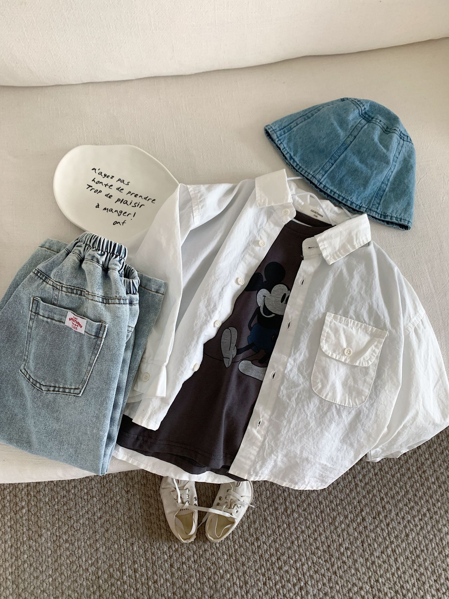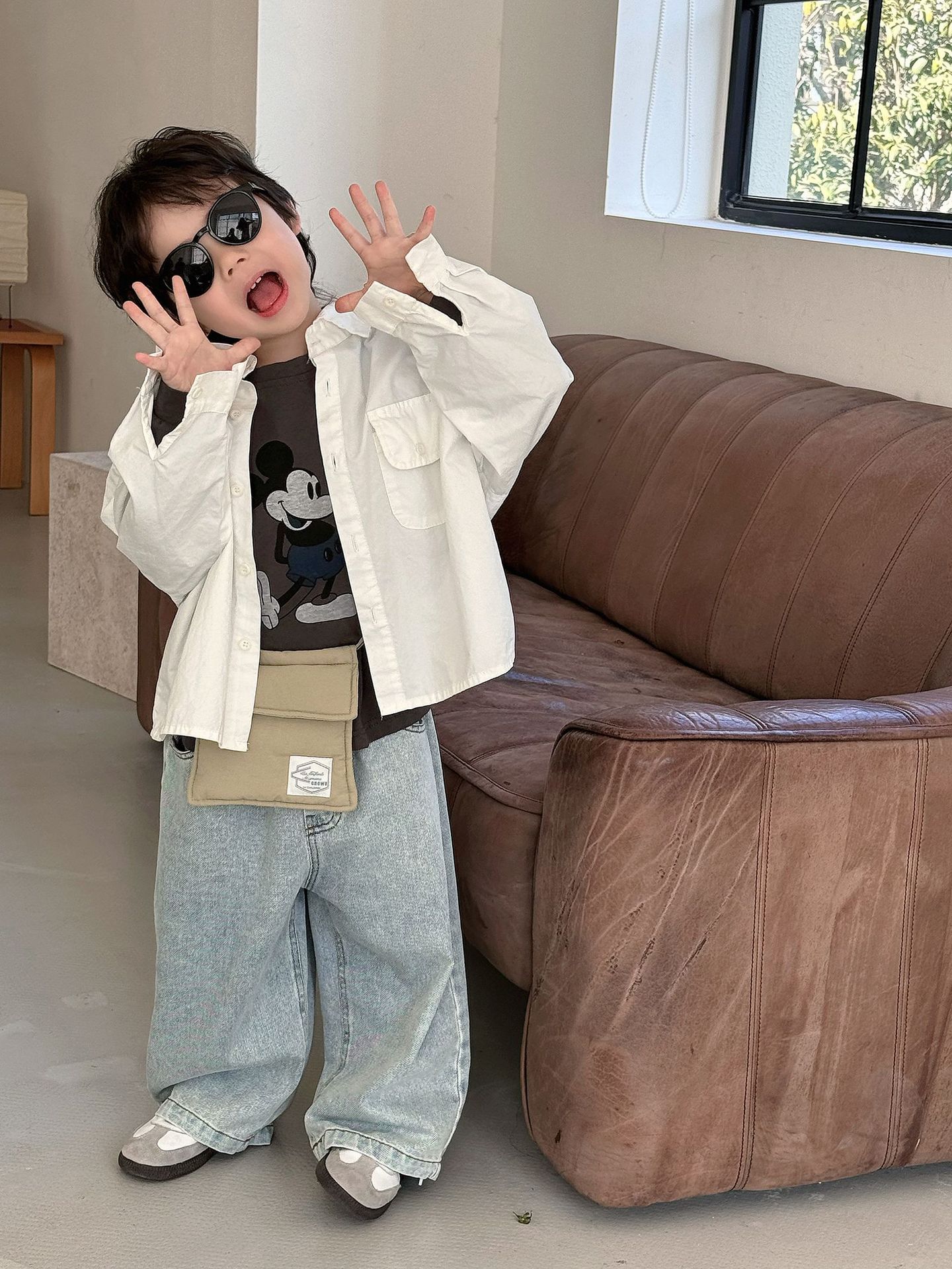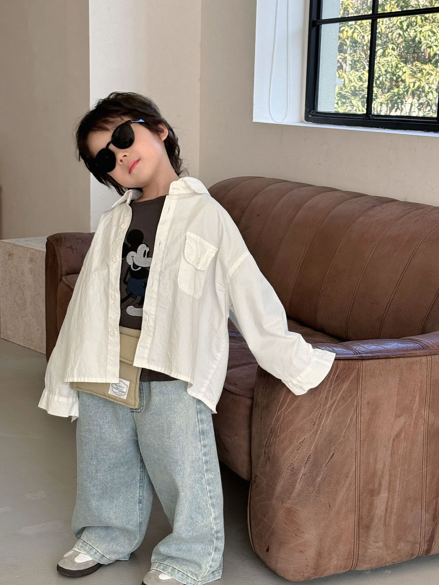 봄 새로운 한국 스타일 아동면 셔츠 재킷 어린이 캐주얼 단색 올 매치 느슨한 긴팔 셔츠 트렌디스토어 가기