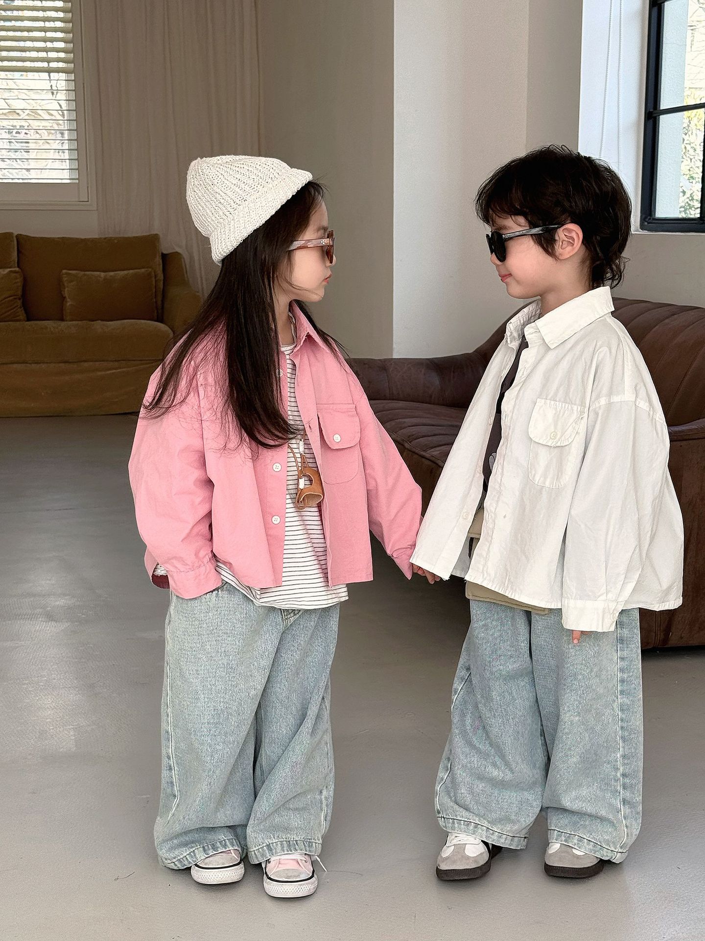 봄 새로운 한국 스타일 아동면 셔츠 재킷 어린이 캐주얼 단색 올 매치 느슨한 긴팔 셔츠 트렌디