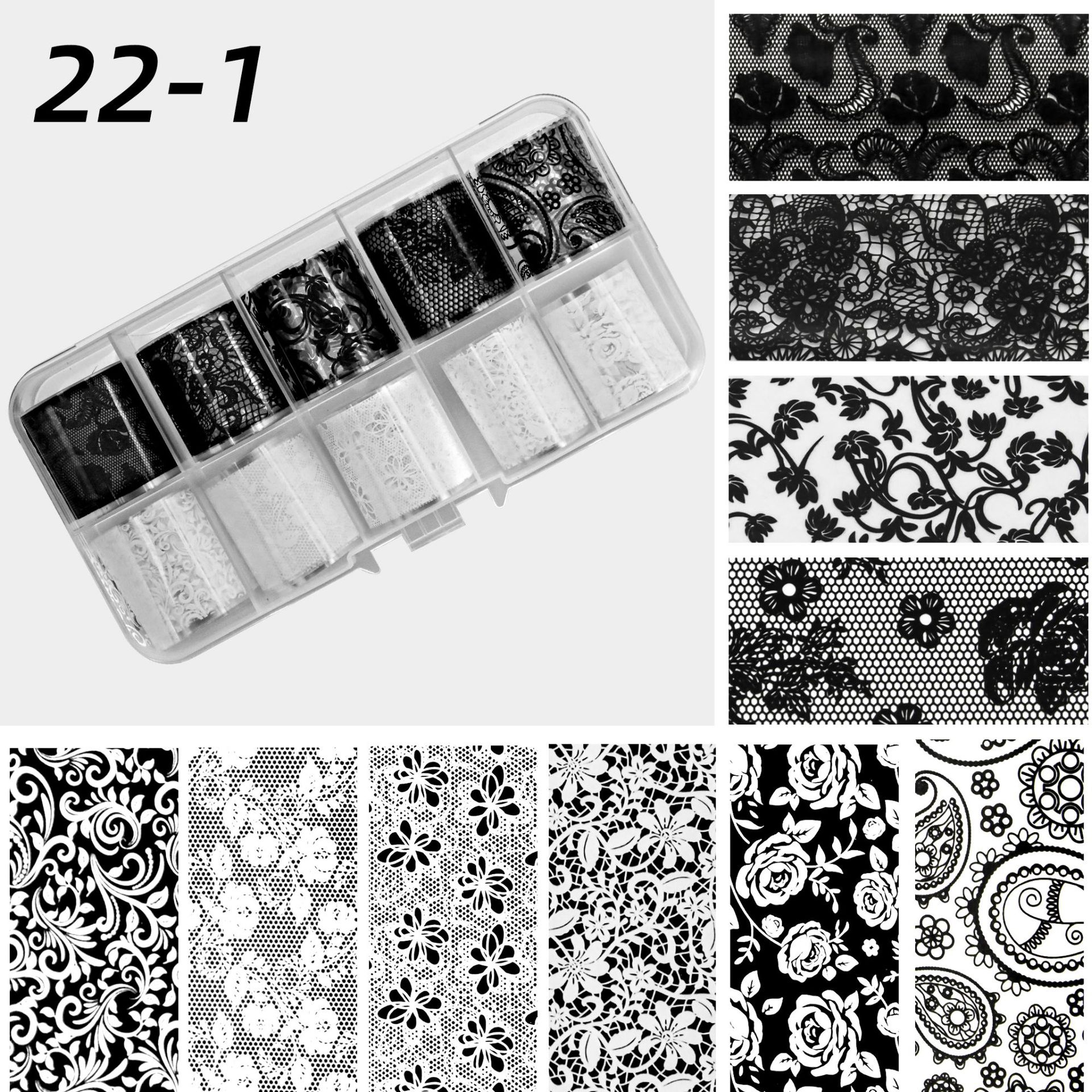 국경 간 일본 네일 전송 스티커 10 그리드 별이 빛나는 하늘 흑백 섹시한 레이스 작은 꽃 레이스 네일 스티커스토어 가기