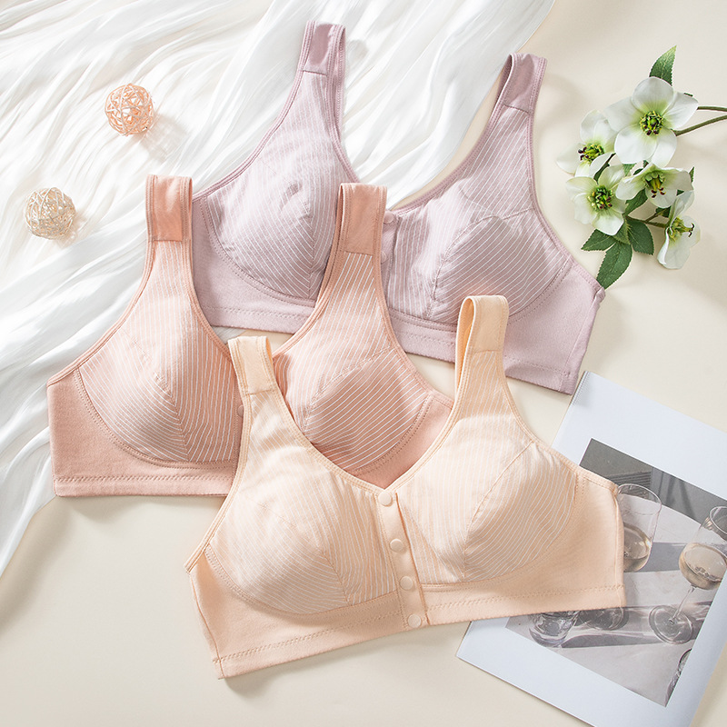 스틸 링이없는 중년 및 노인을위한 새로운 프론트 버클 스트라이프 퓨어 코튼 브라 대형 컵 얇은 조끼 스타일 모유 수유 속옷스토어 가기