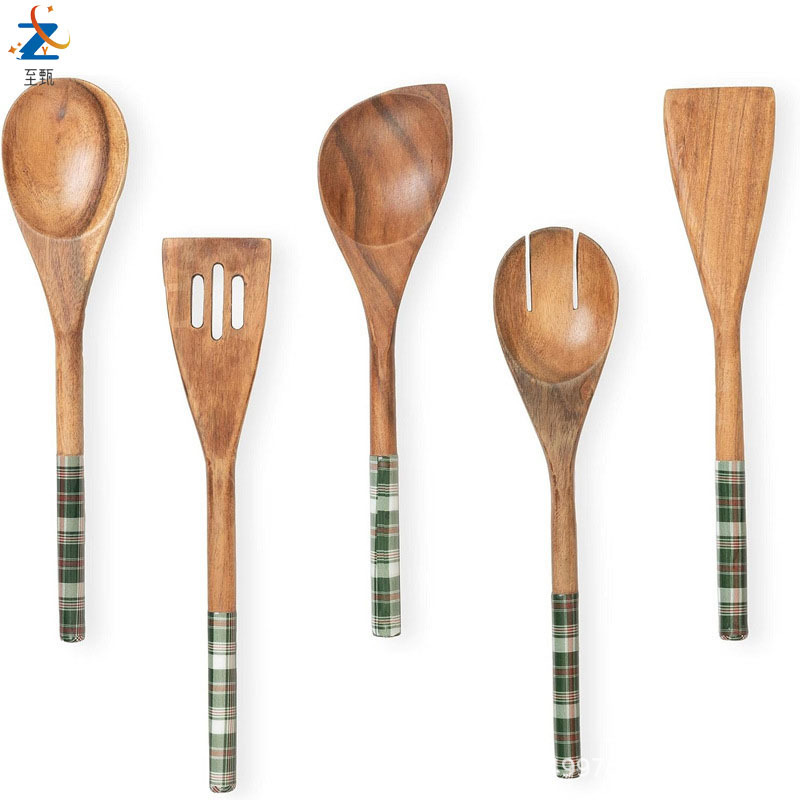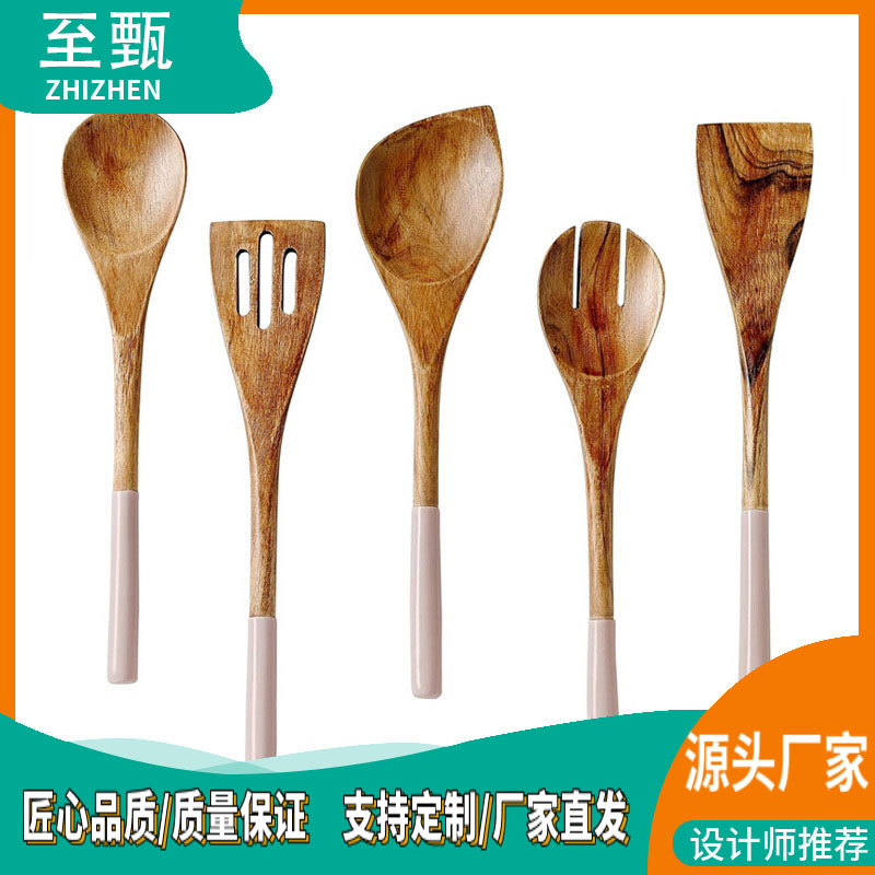 다채로운 나무 숟가락 요리 세트 부엌 아카시아 나무 현대 간단한 붙지 않는 조리기구 다섯 삽 도구 색상 선택스토어 가기