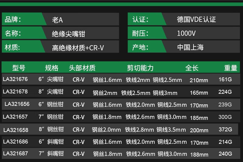 LAOA VDE vise 절연 와이어 펜치 펜치 수동 펜치 1000V 독일 인증 8스토어 가기
