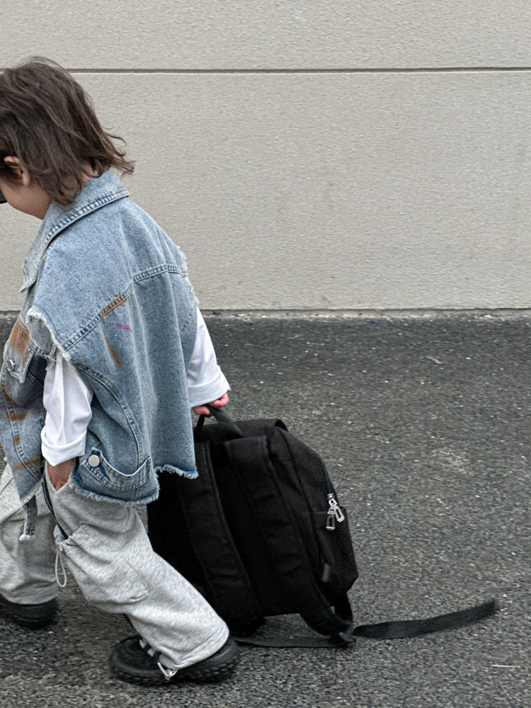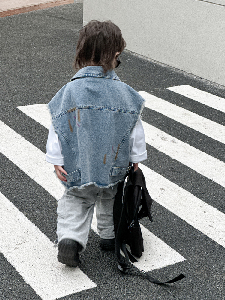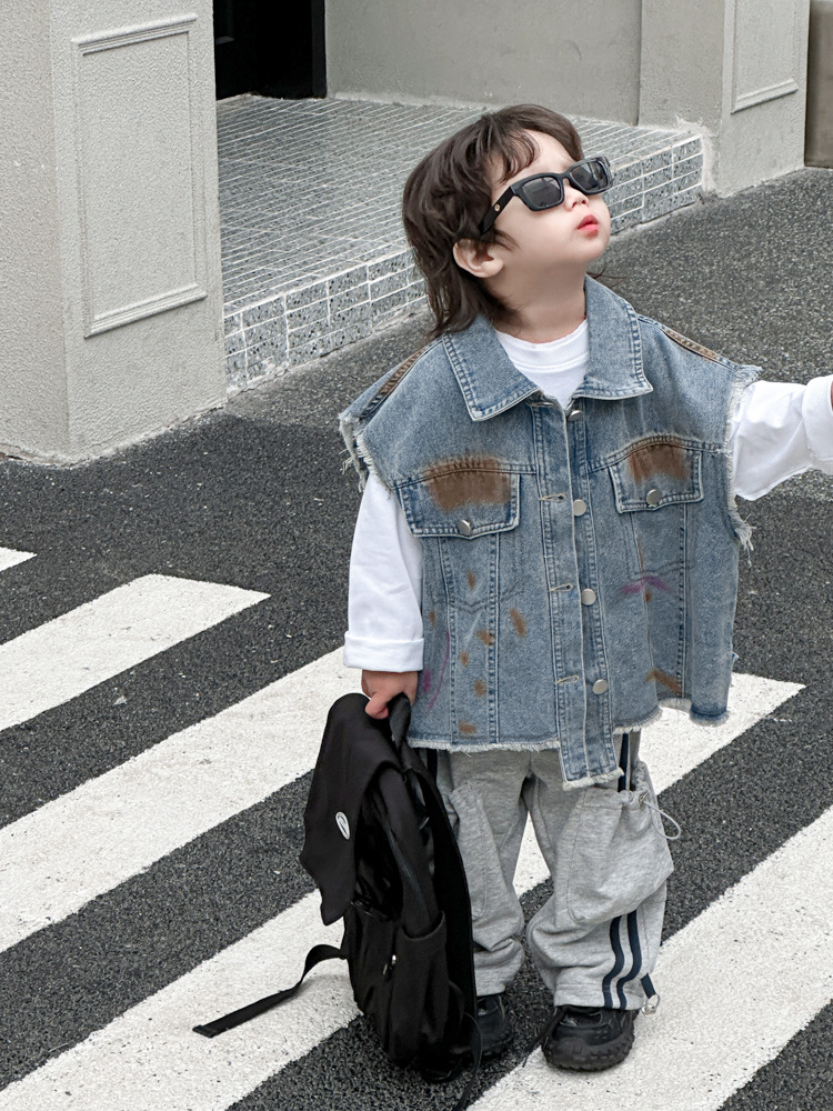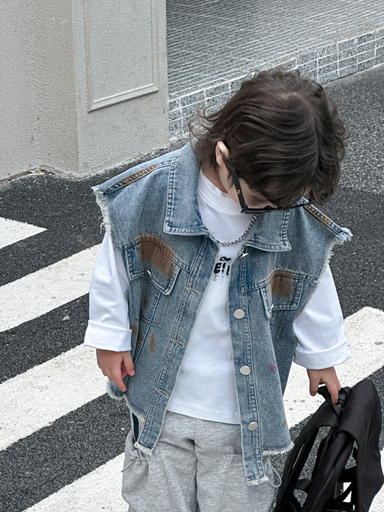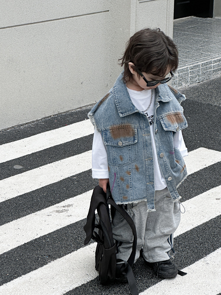아동 조끼 2025년 신상 남아 가을옷 아기 한국 스타일 데님 아동복 중소형 아동용 컬러 페인트 조끼 트렌디스토어 가기