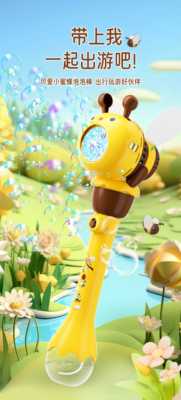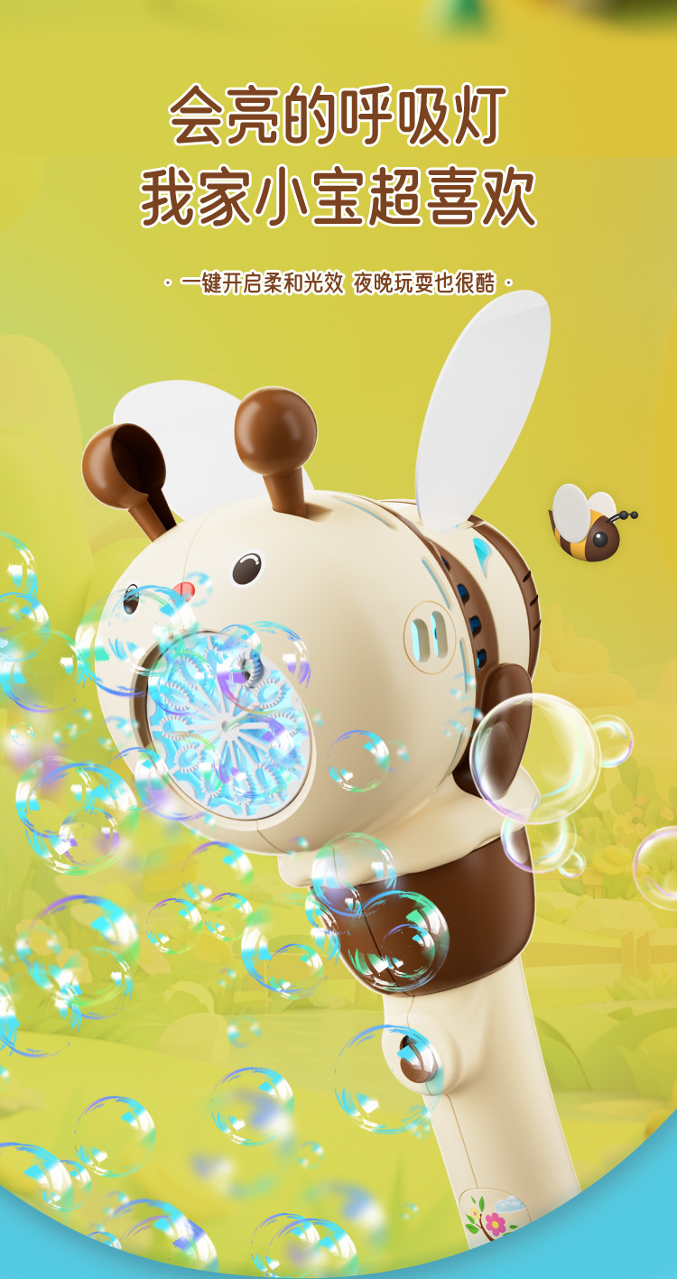 국경 간 새로운 꿀벌 버블 스틱 어린이 휴대용 버블 머신 올인원 전기 조명 누출 야외 장난감스토어 가기