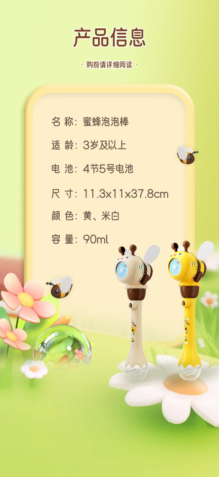 • Meng 재미있는 꿀벌 버블 스틱 옐로우 4 배터리