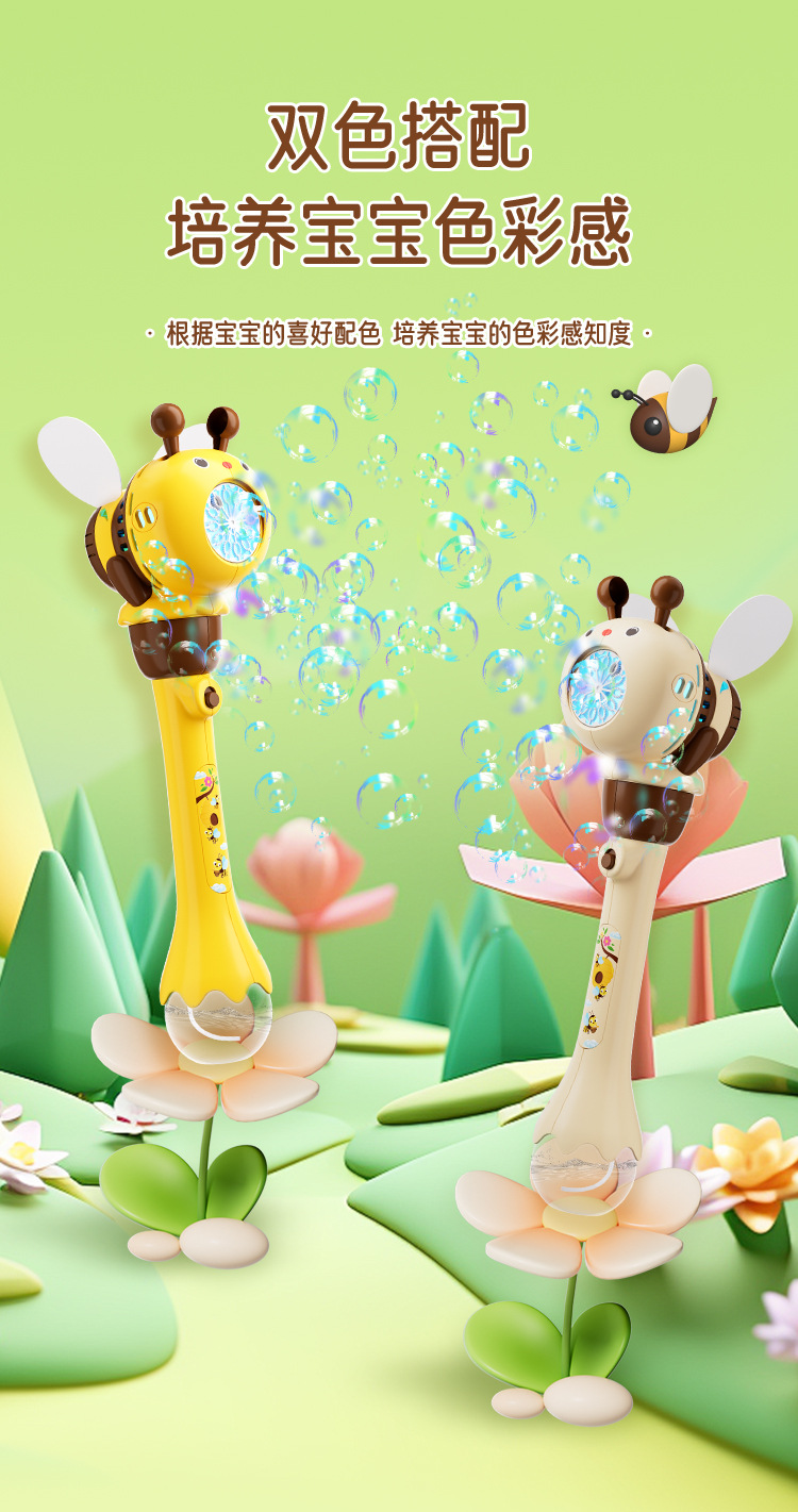 국경 간 새로운 꿀벌 버블 스틱 어린이 휴대용 버블 머신 올인원 전기 조명 누출 야외 장난감