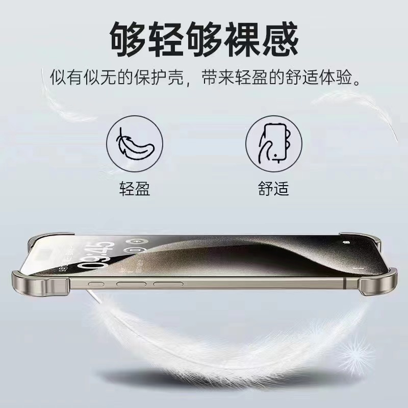 아이폰15PRO 휴대폰 케이스에 적합, 특수형 금속 프레임, 백플레이트 없음, 금색 렌즈 필름 포함, 애플 16p 신제품스토어 가기