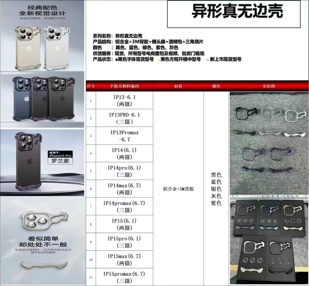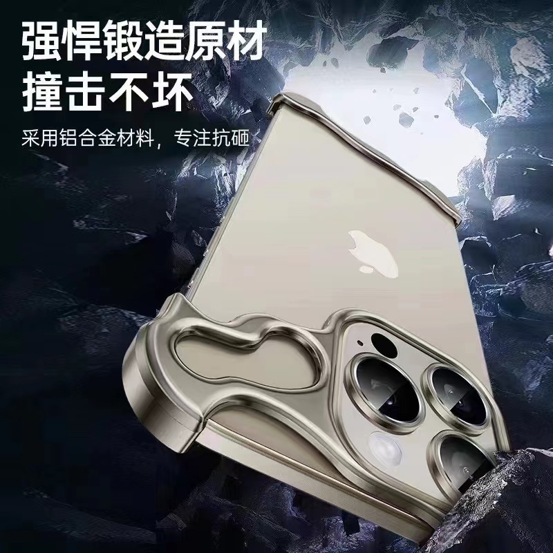 아이폰15PRO 휴대폰 케이스에 적합, 특수형 금속 프레임, 백플레이트 없음, 금색 렌즈 필름 포함, 애플 16p 신제품