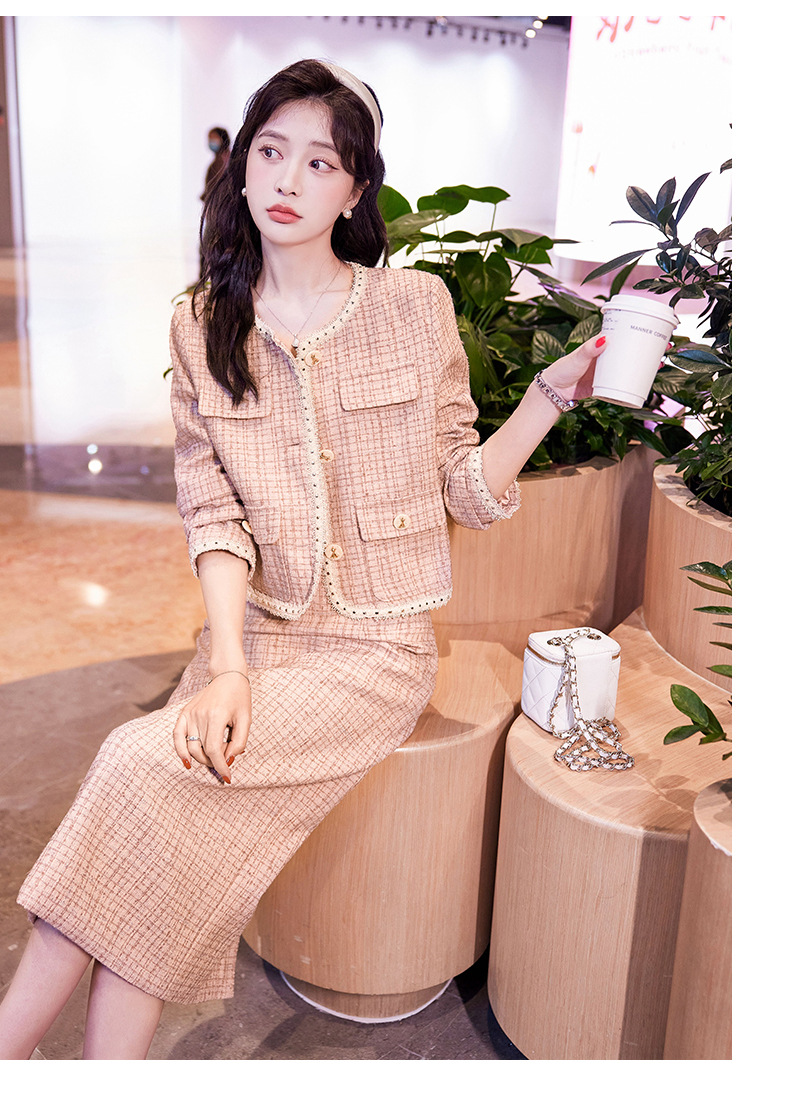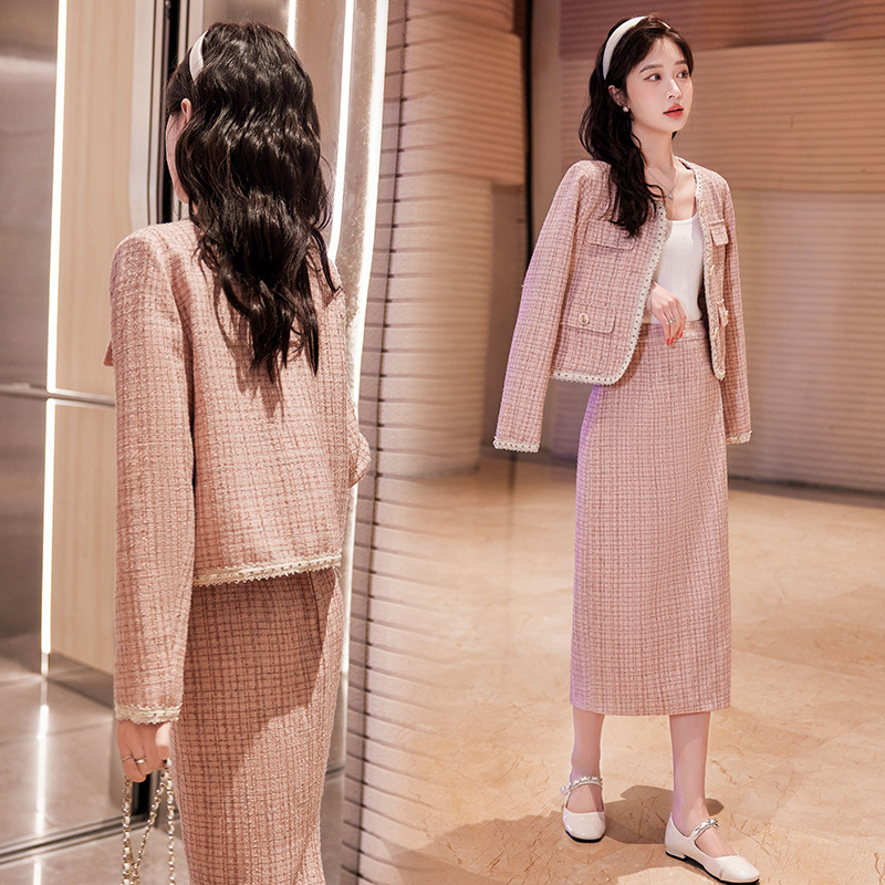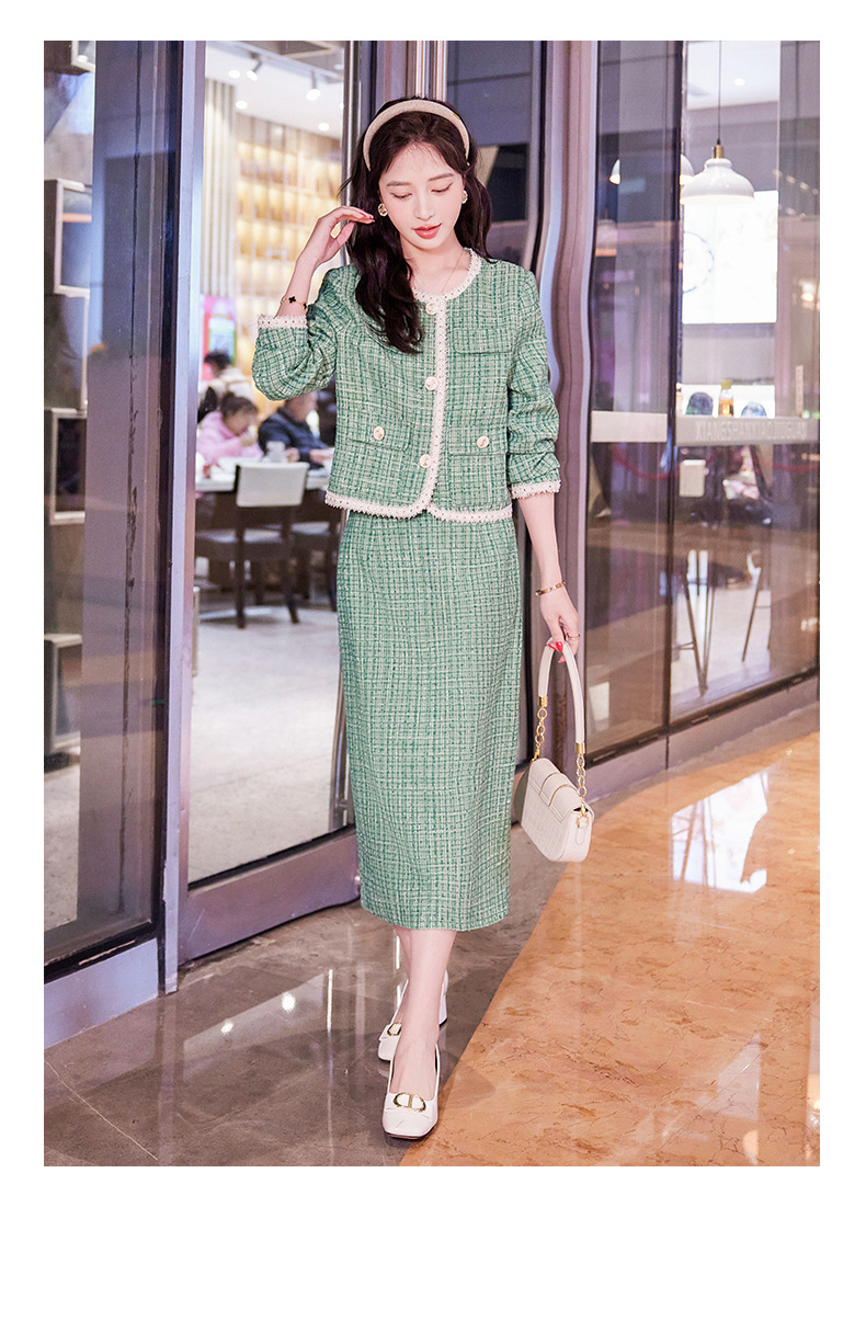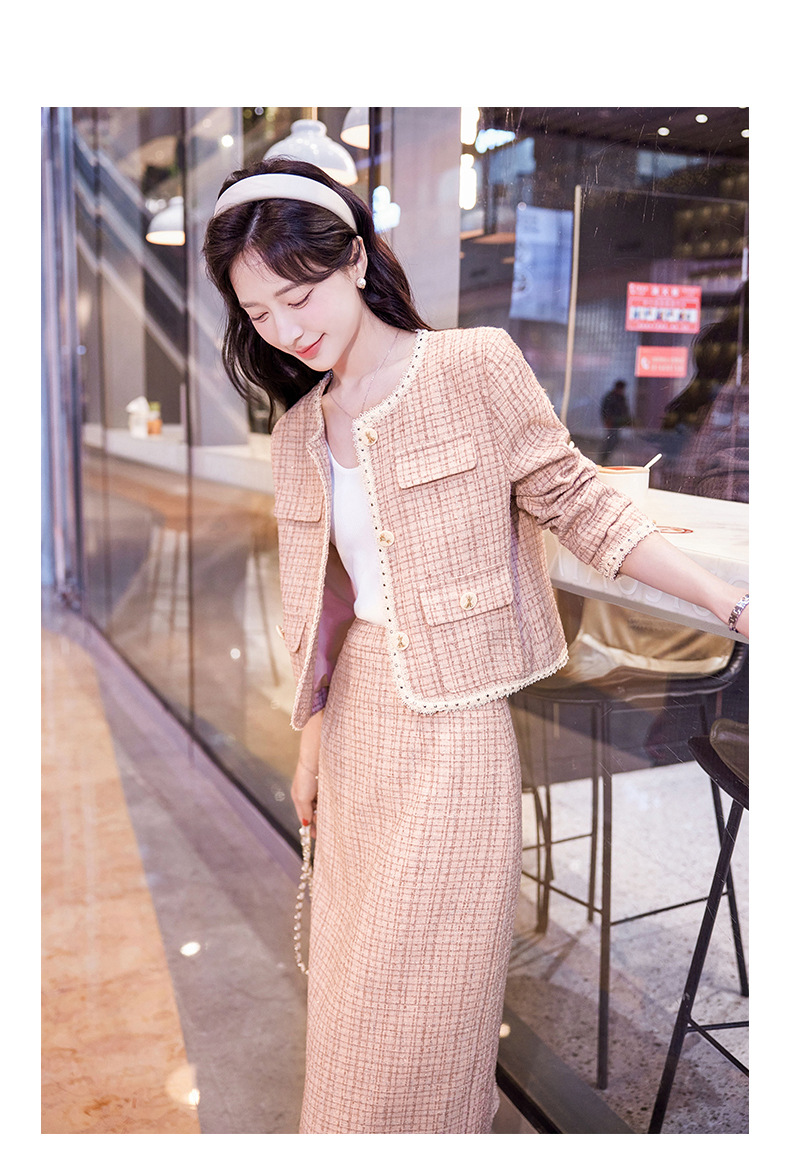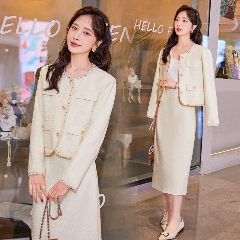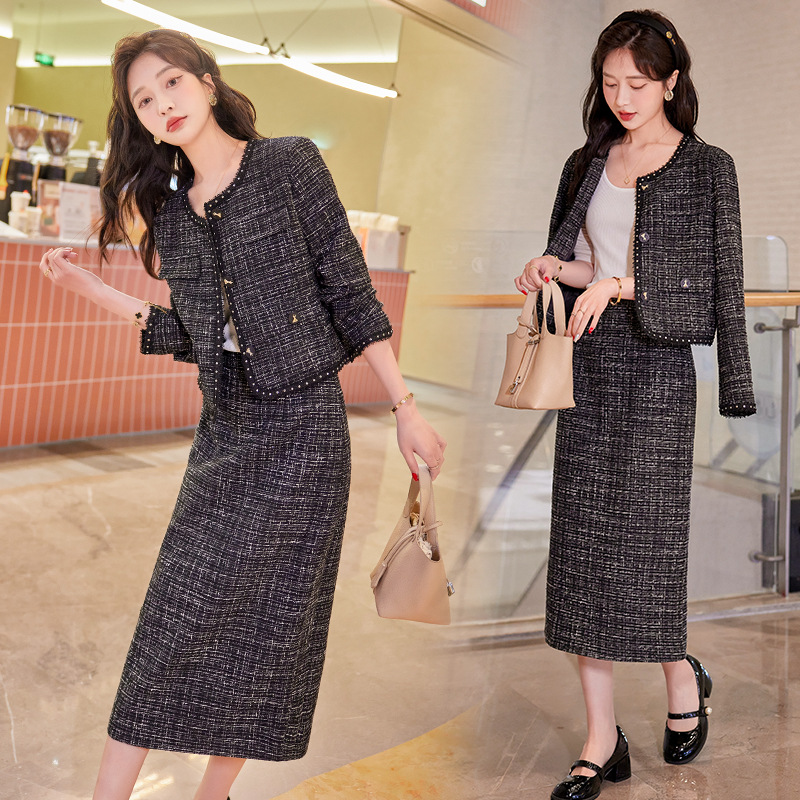 여성 패션 캐주얼 슈트 봄 가을 신상품 한국 스타일 여성 자켓+롱스커트 투피스 세트 Y24006