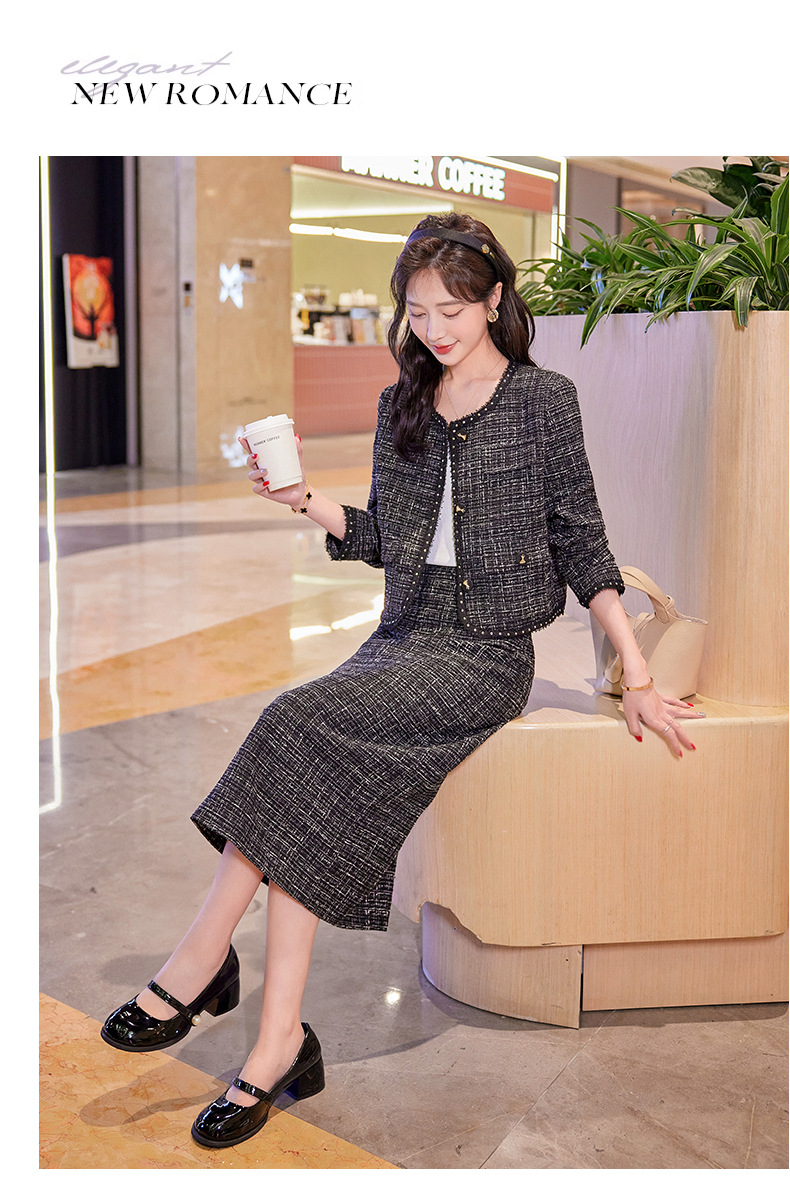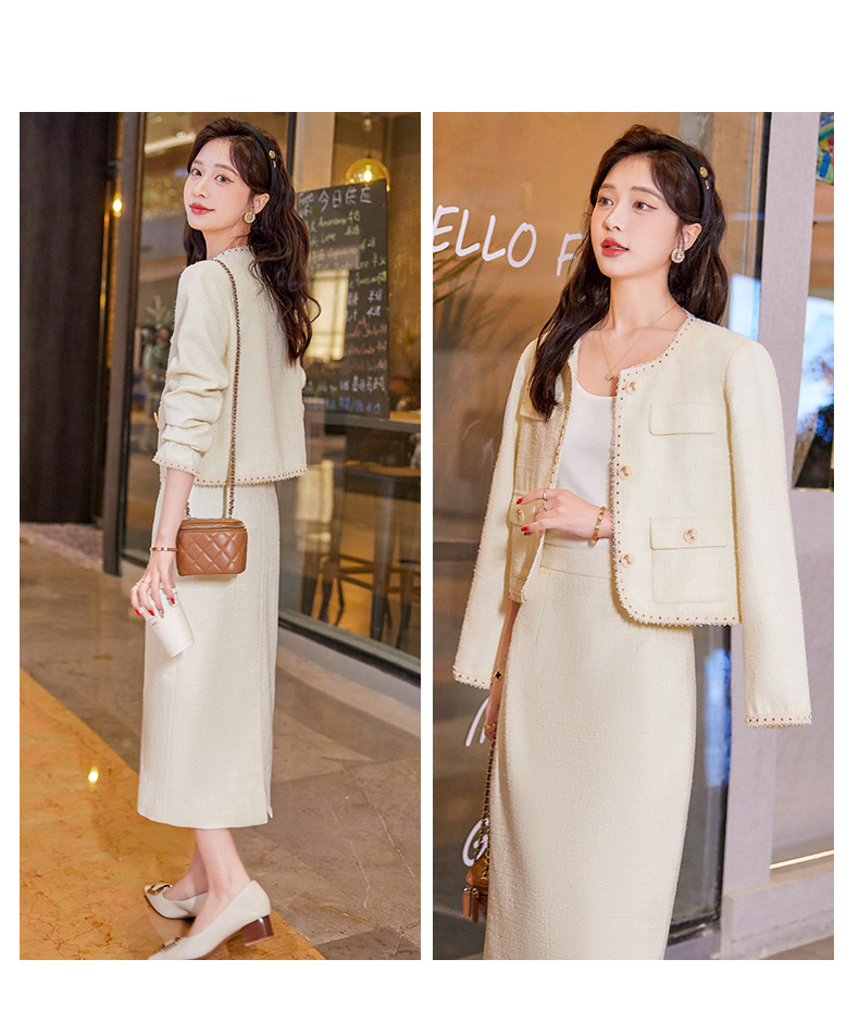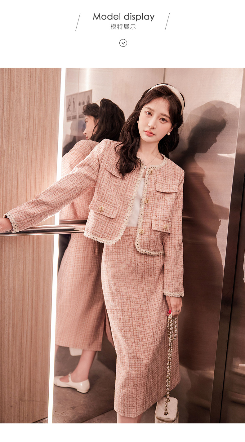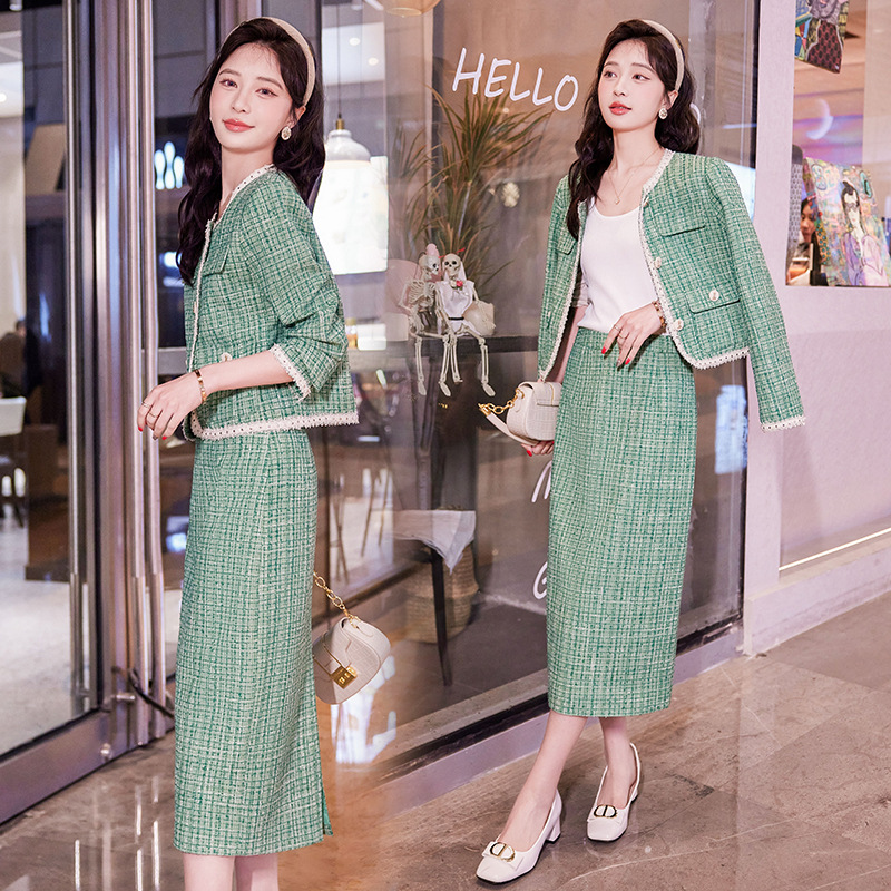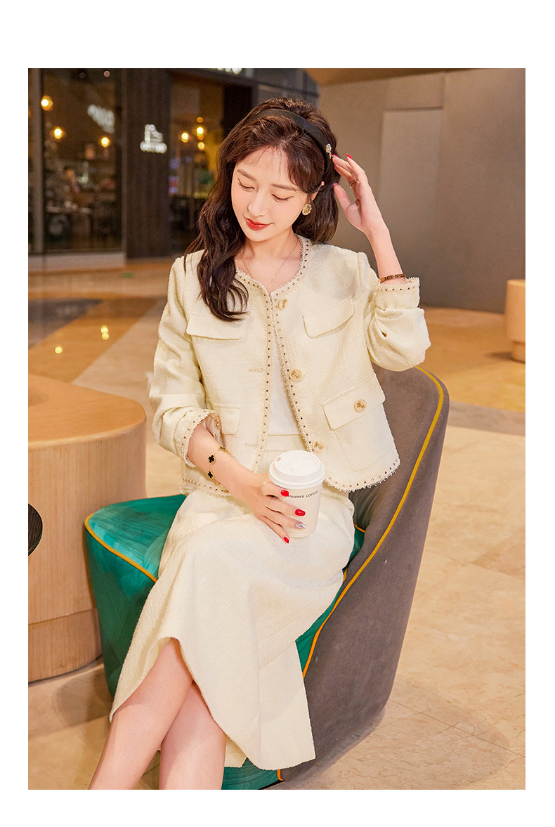 여성 패션 캐주얼 슈트 봄 가을 신상품 한국 스타일 여성 자켓+롱스커트 투피스 세트 Y24006