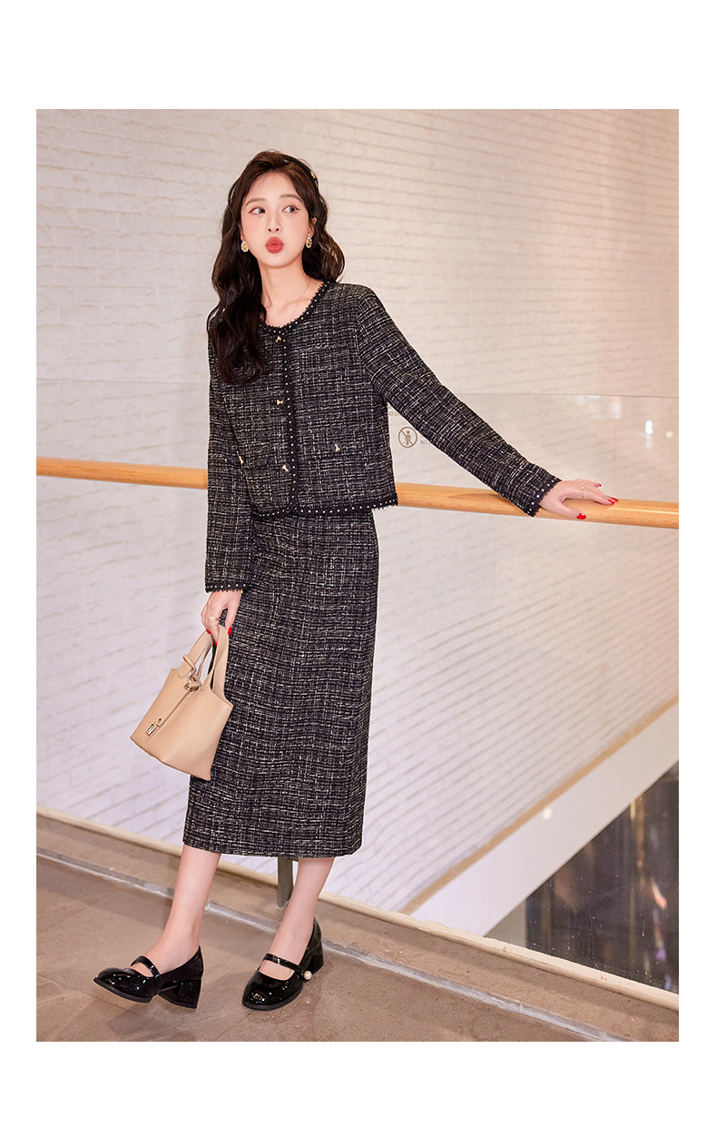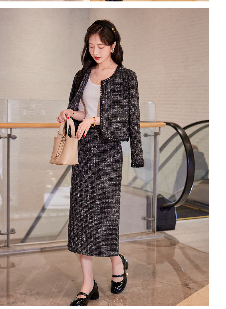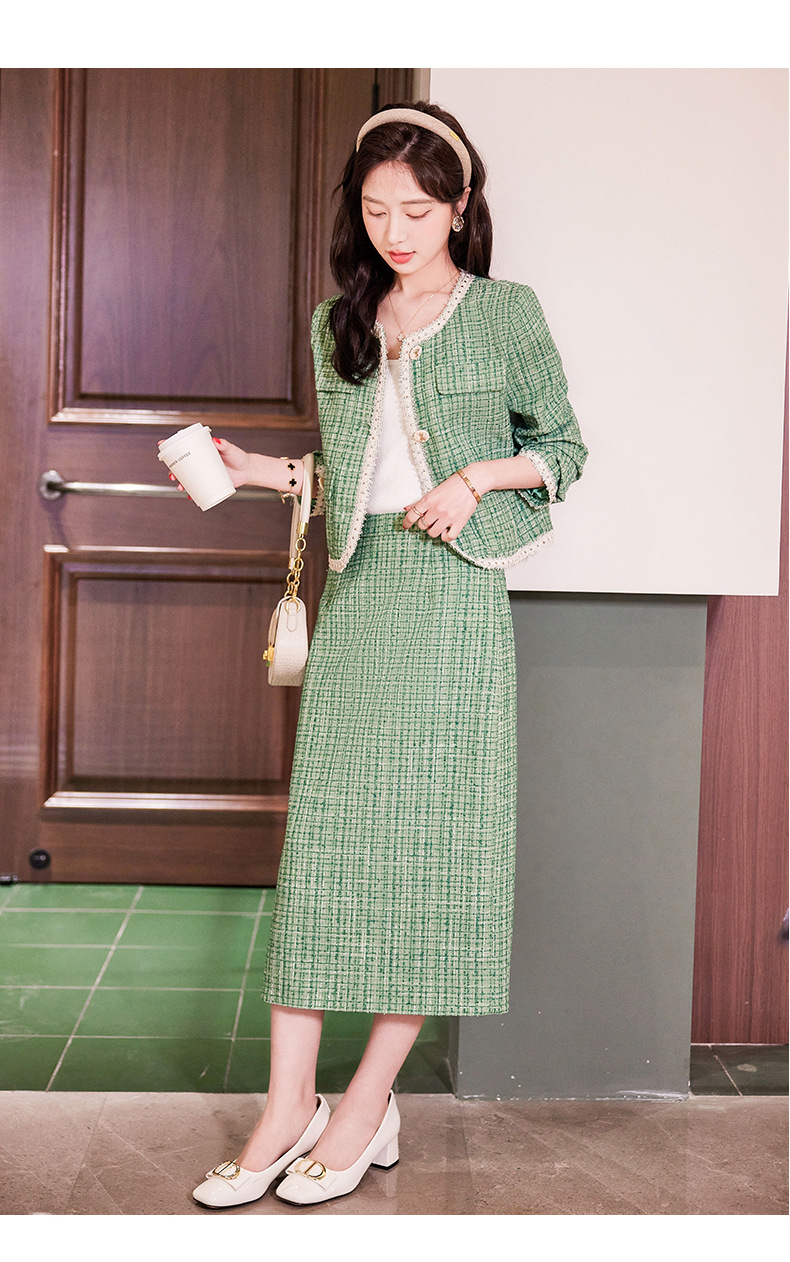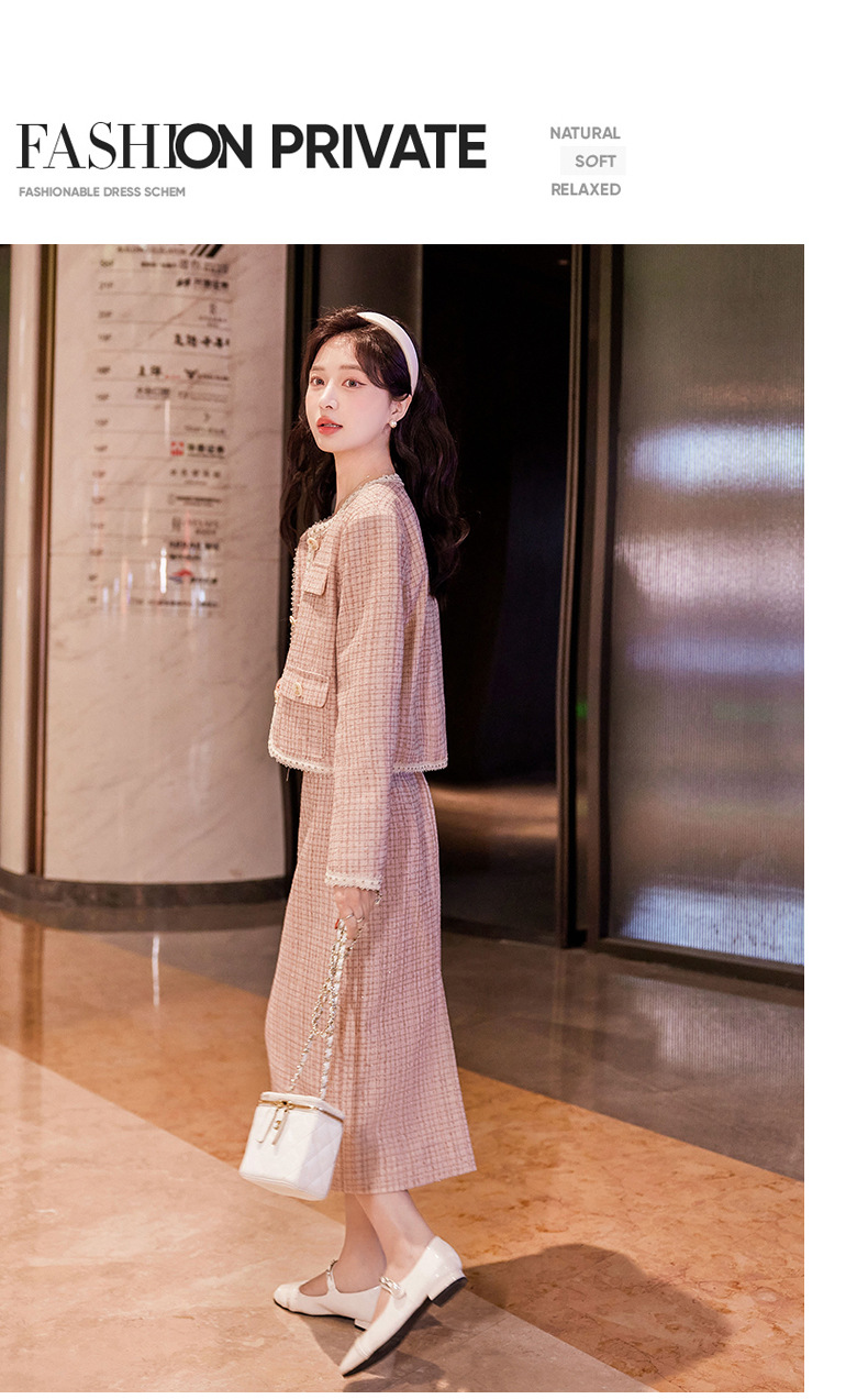 여성 패션 캐주얼 슈트 봄 가을 신상품 한국 스타일 여성 자켓+롱스커트 투피스 세트 Y24006