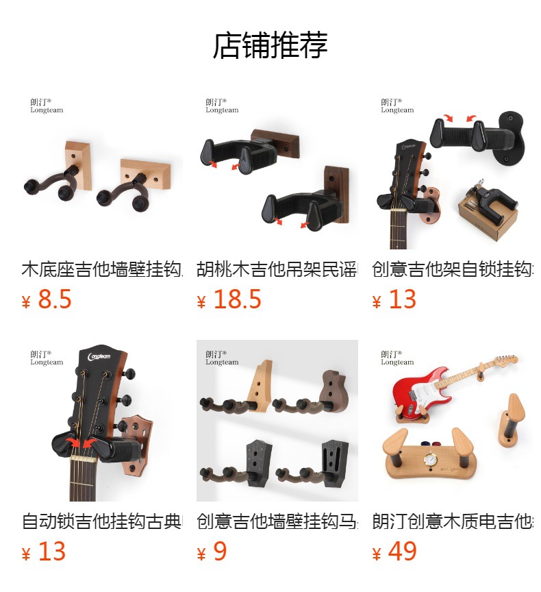 너도밤 나무 기타 걸이 민속 전기 기타 벽 중력 자동 잠금 훅 만돌린 악기 벽 브래킷스토어 가기